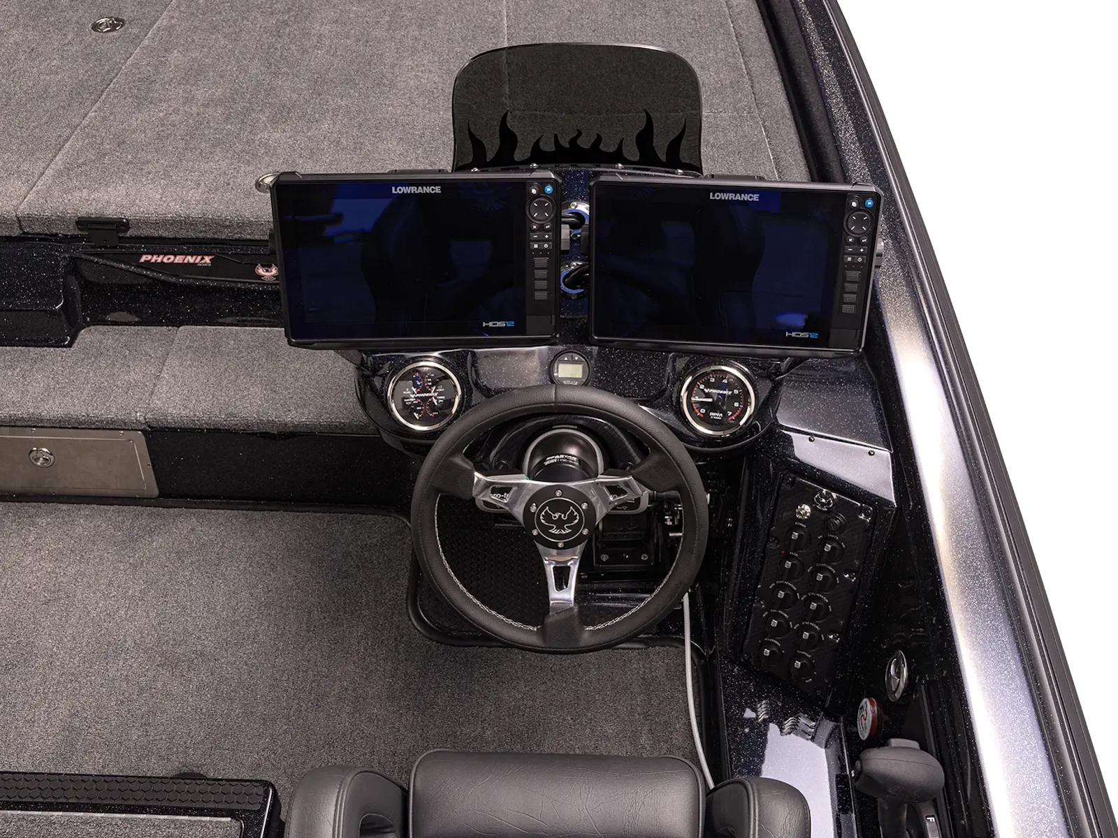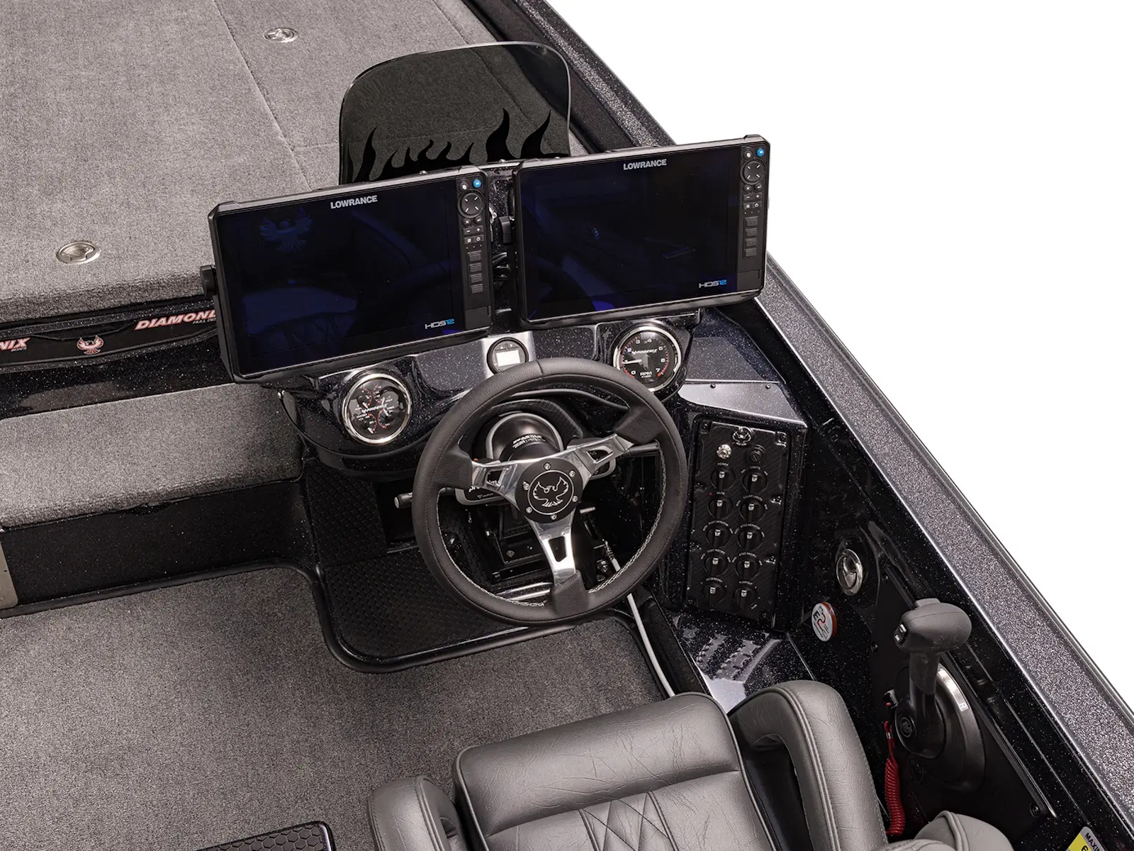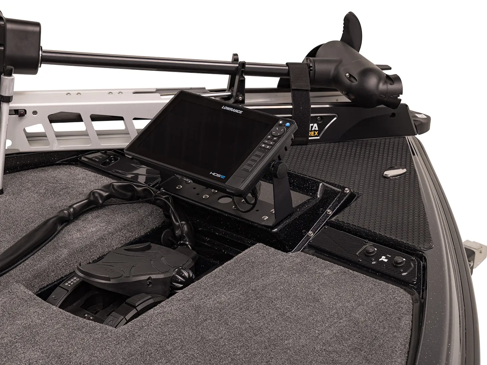 The 921 ELITE X blends everything today’s anglers demand by delivering the speed of our Pro XP series, the intuitive, tournament-ready layout of the PHX, and the elevated deck height of the 721. At the bow, an industry-leading design allows for up to three stacked graphs. The new “E” Style Console giving you unmatched visibility and control. The all-new ProForm Fiberglass Seat Base and EdgeForce Performance Seating ensure comfort in even the most demanding conditions. A seamlessly recessed trolling motor bezel rounds out a deck built for efficiency, precision, and total control cast after cast.