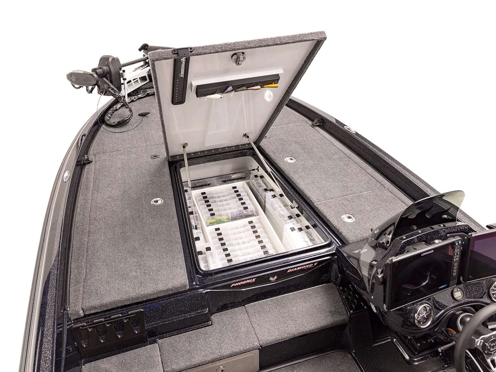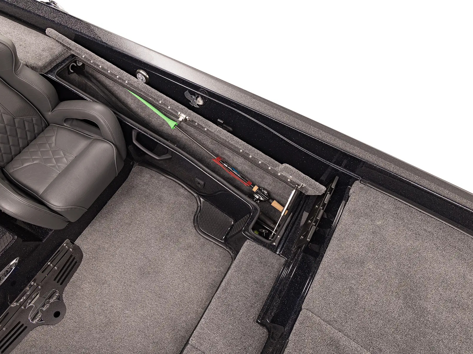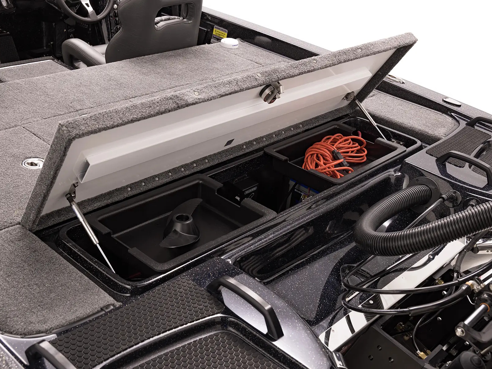 The 921 ELITE X blends everything today’s anglers demand by delivering the speed of our Pro XP series, the intuitive, tournament-ready layout of the PHX, and the elevated deck height of the 721. At the bow, an industry-leading design allows for up to three stacked graphs. The new “E” Style Console giving you unmatched visibility and control. The all-new ProForm Fiberglass Seat Base and EdgeForce Performance Seating ensure comfort in even the most demanding conditions. A seamlessly recessed trolling motor bezel rounds out a deck built for efficiency, precision, and total control cast after cast.