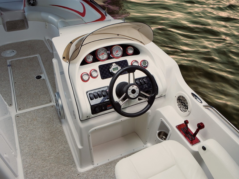 - Fiberglass Console Includes: Water PSI, Tach, Speedo, Fuel, Windshield, 12 Volt Outlet, & Horn