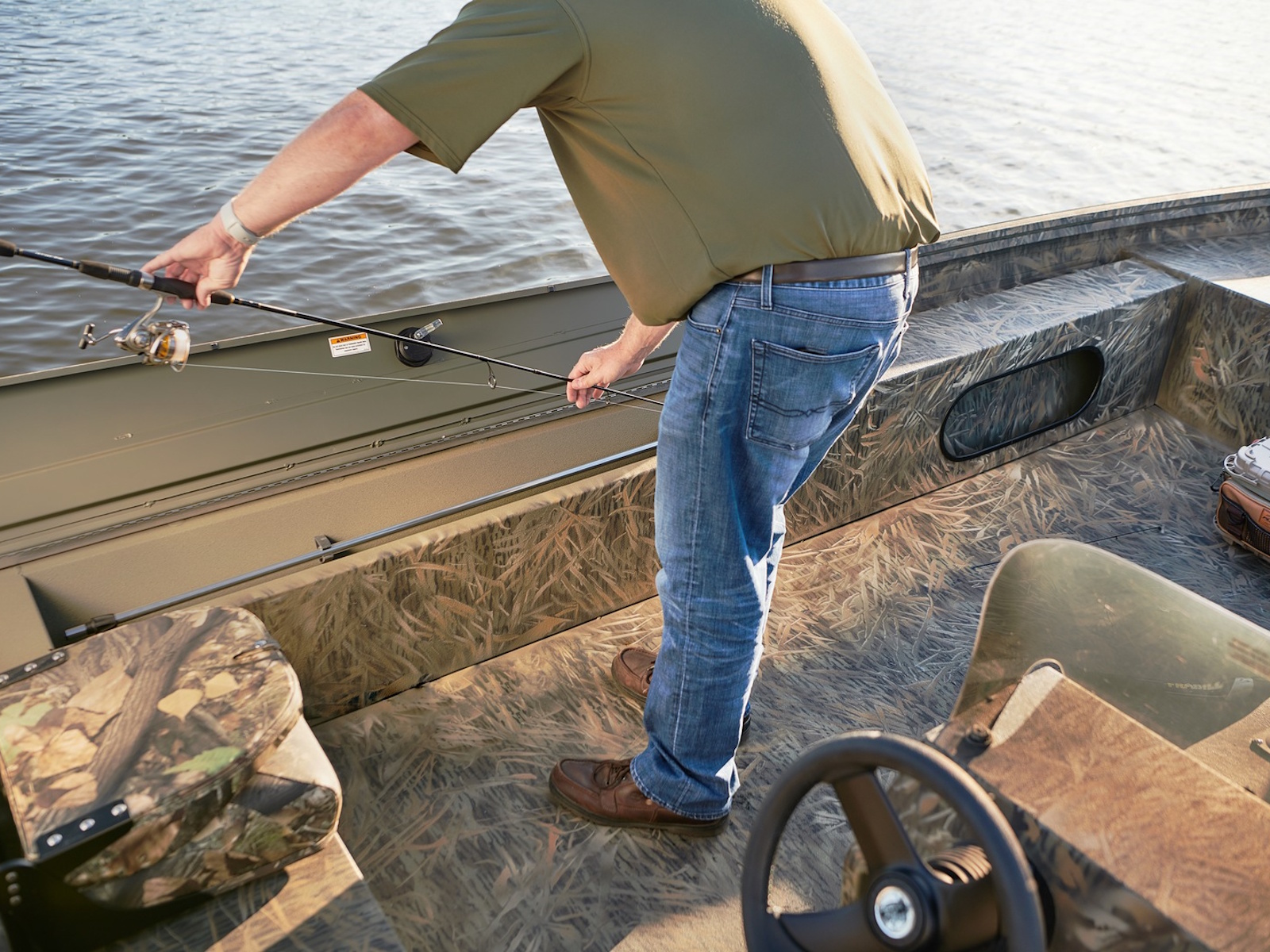 All-season sporting enthusiasts who call river and shallow water their means to a hunting or fishing end will love the welded Sport X series that can get back into the sloughs to pursue waterfowl or bass or spawning northern pike. Available in full camo models, even pressured ducks won’t know what hit them. Whether shotguns or rods go in your lockers you can choose from a side console or center and a smooth ride is promised thanks to the clever deadrise of the boat.