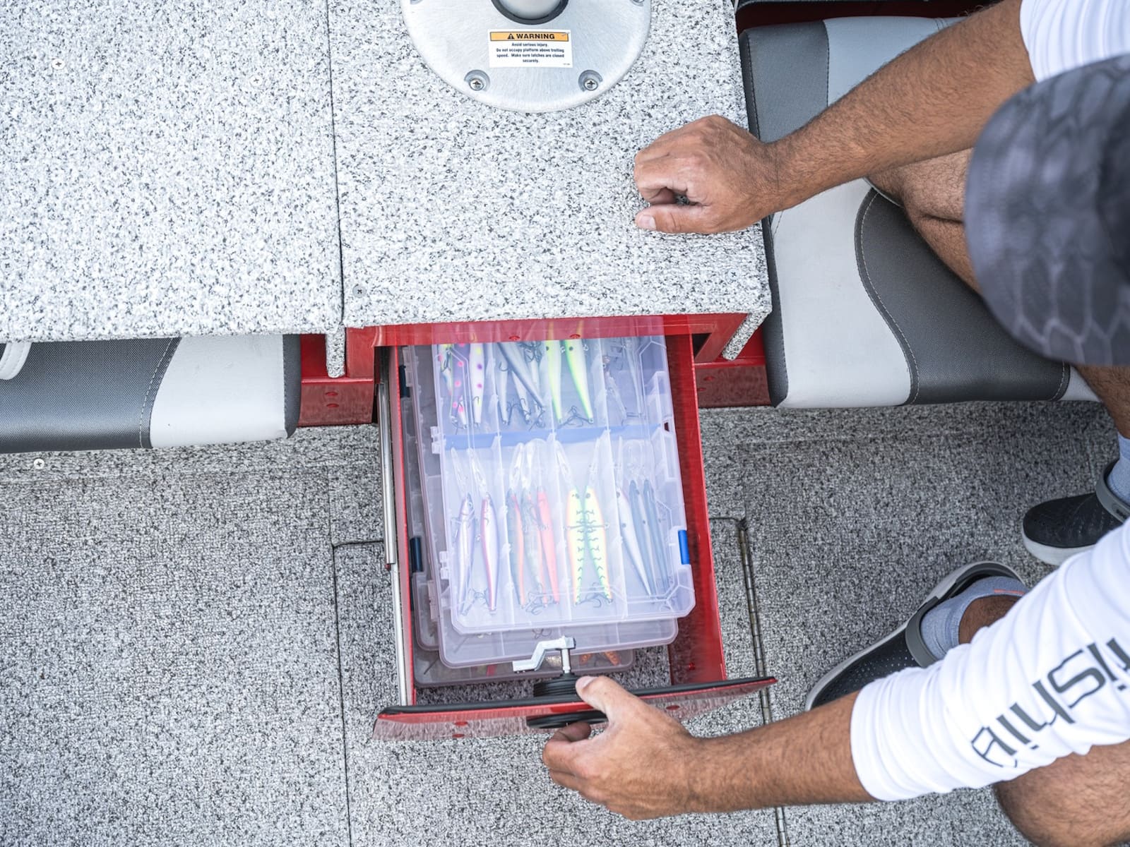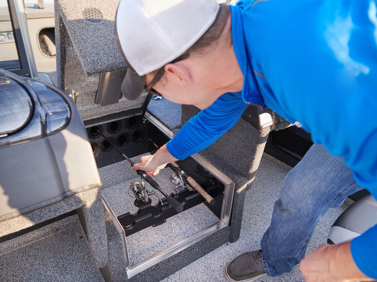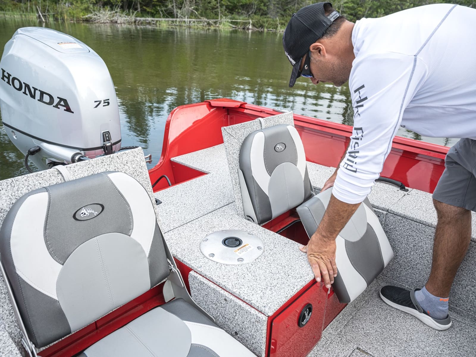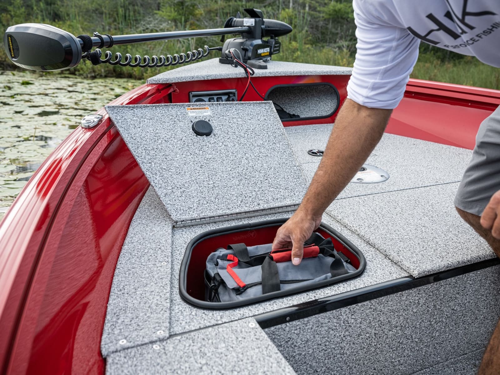 From keeping fish alive at the tournament, to storing minnows for crappies, huge livewells are handy. Plus, large fore and aft casting decks and ample storage make the Frontier the perfect fishing partner.