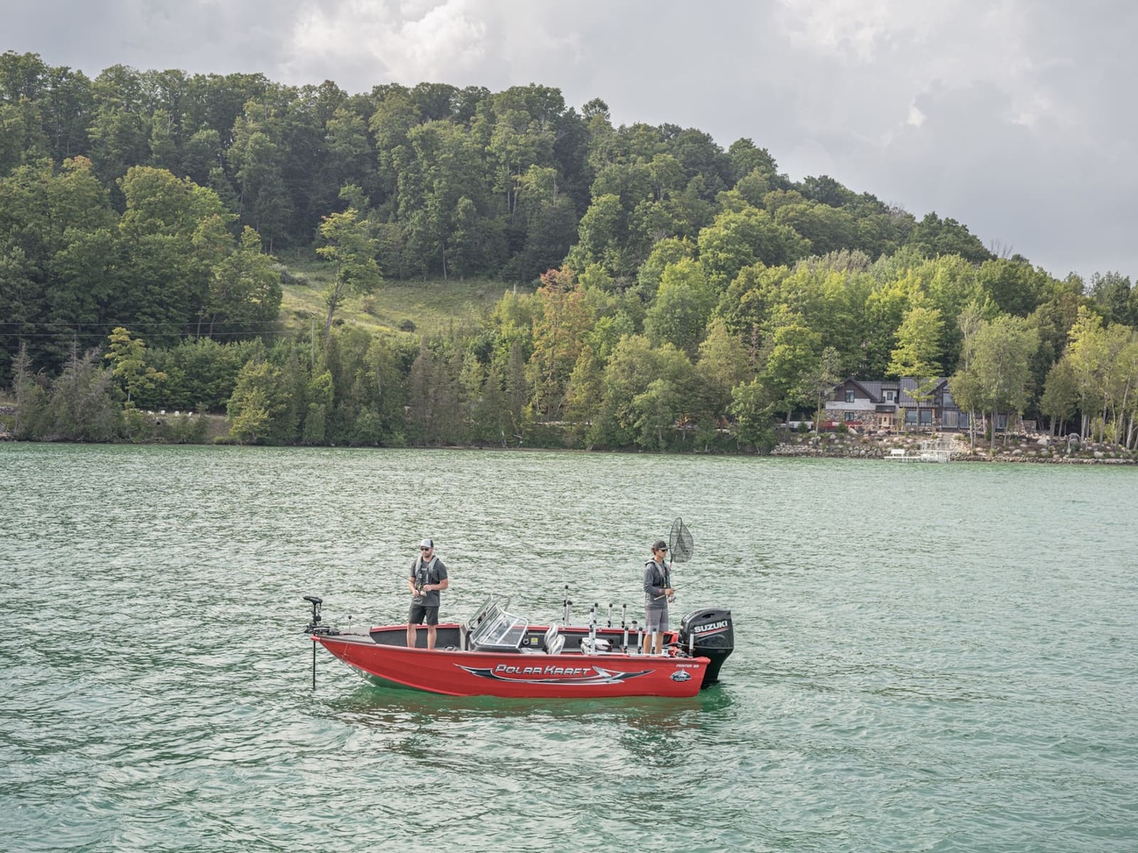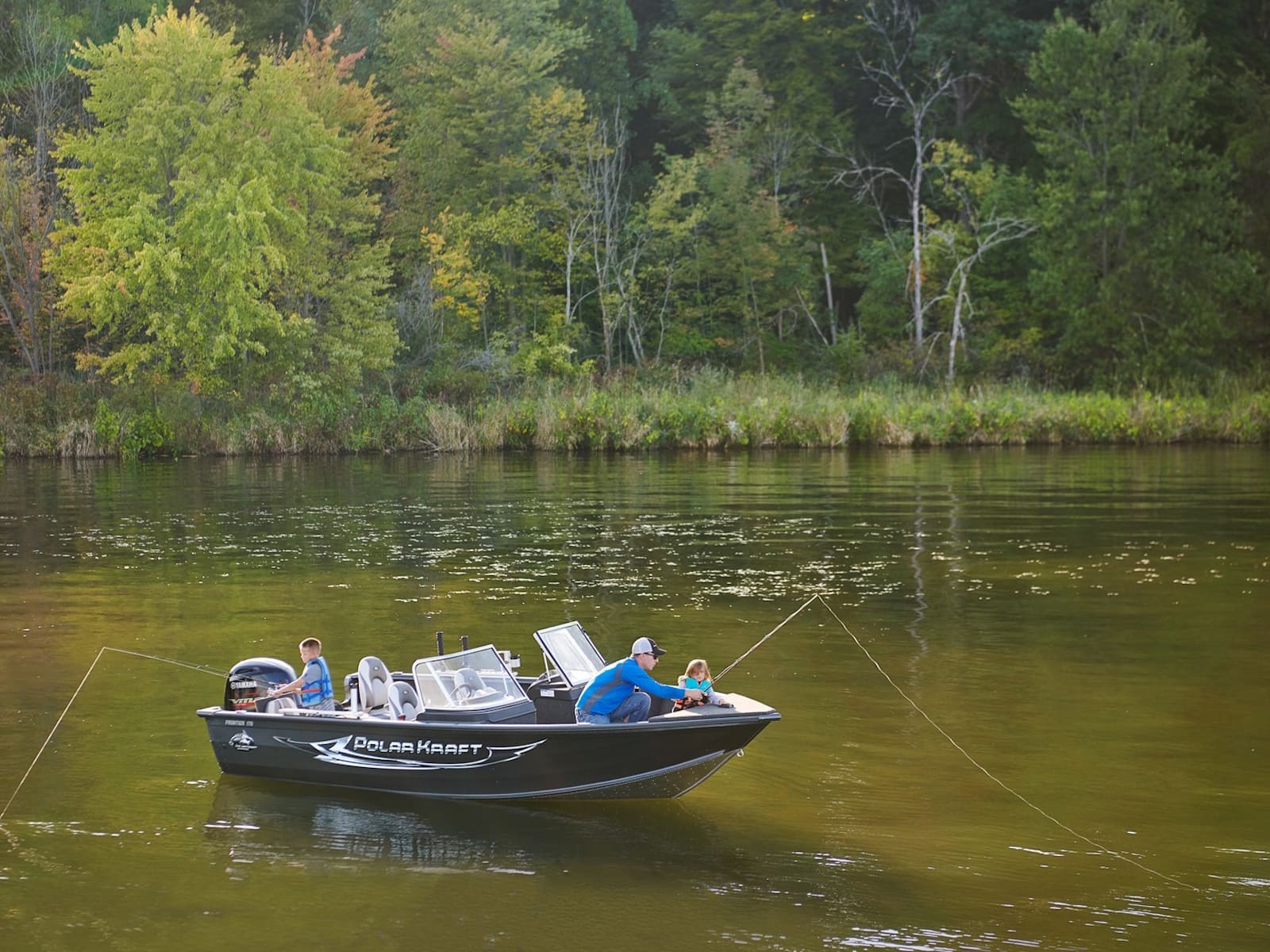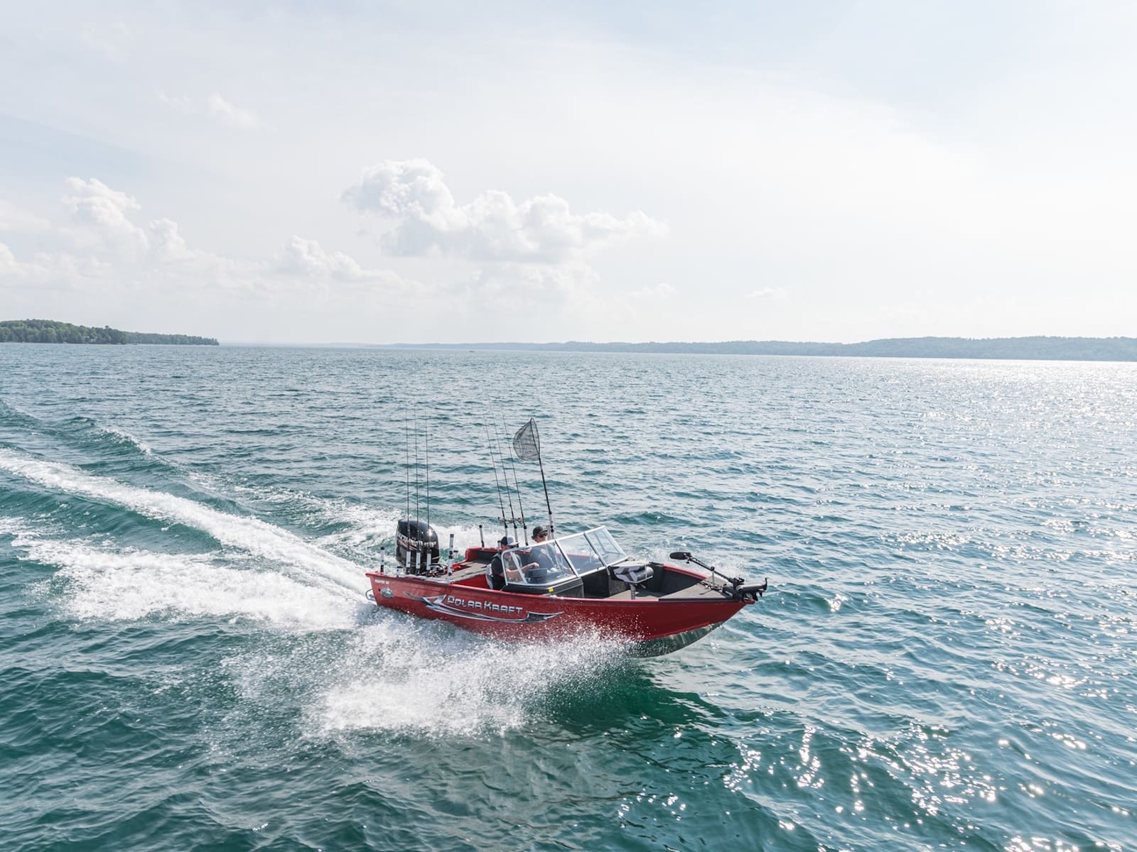 The Frontier carries a budget-friendly price, but this riveted boat is far from entry-level. It comes packed with features including Polar Kraft’s Fast-Trak system that makes mounting down riggers and other accessories a near custom experience. It’s at home on inland lakes but has the brawn in larger models to handle the big pond. Take your pick from side console or walk-through models and fuel conscience anglers will appreciate the standard lifting pad that helps get the Frontier on plane with less horsepower. Stern jump seats are comfortable when running but can be folded down for more deck space when it’s time to cast.