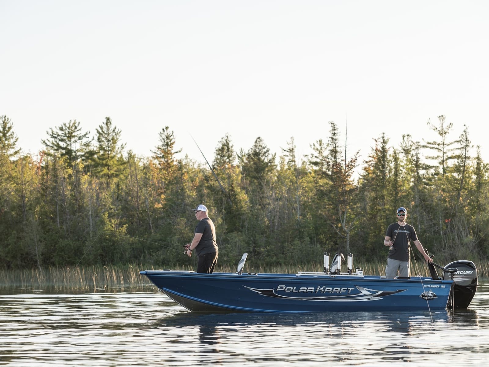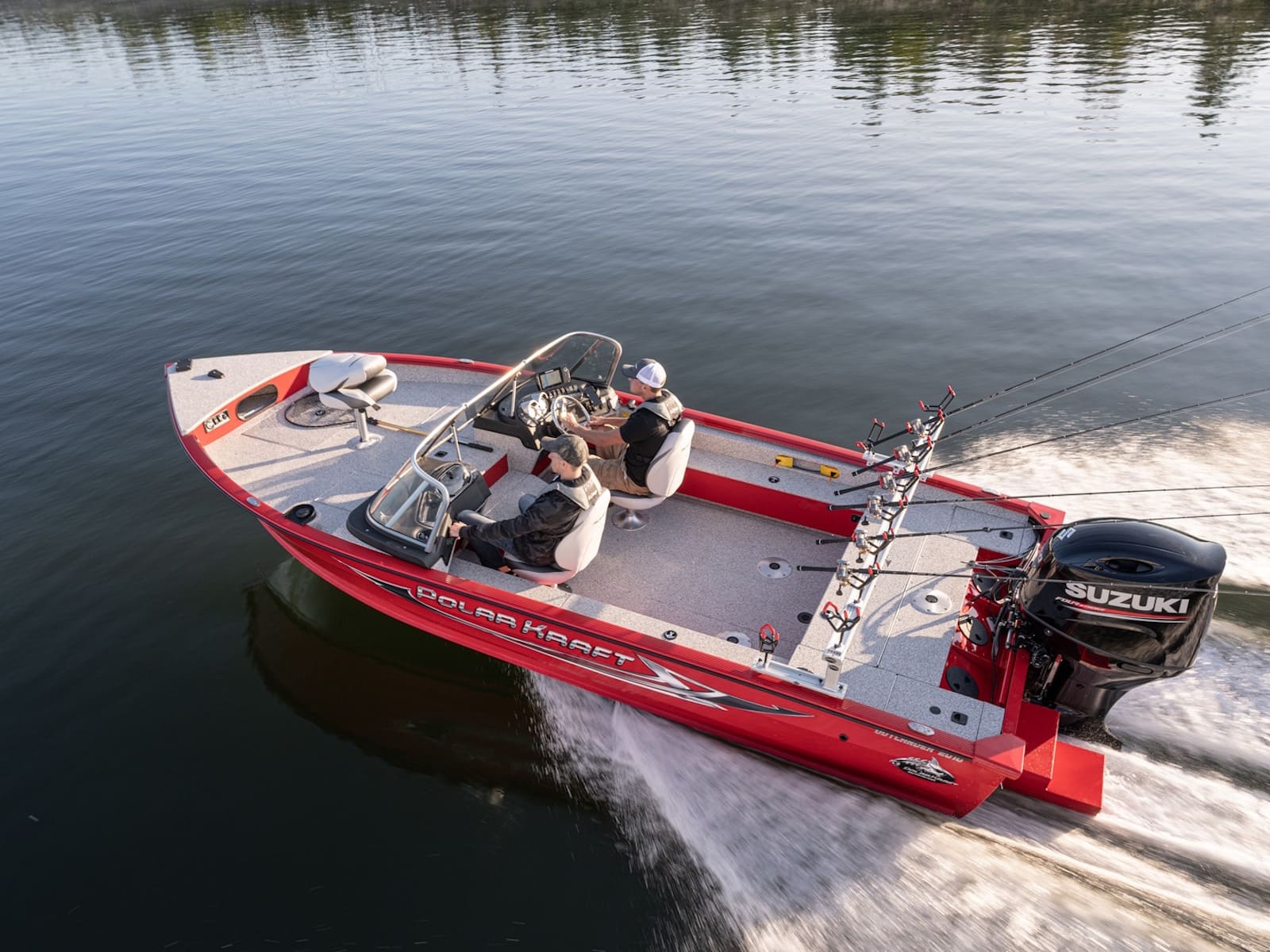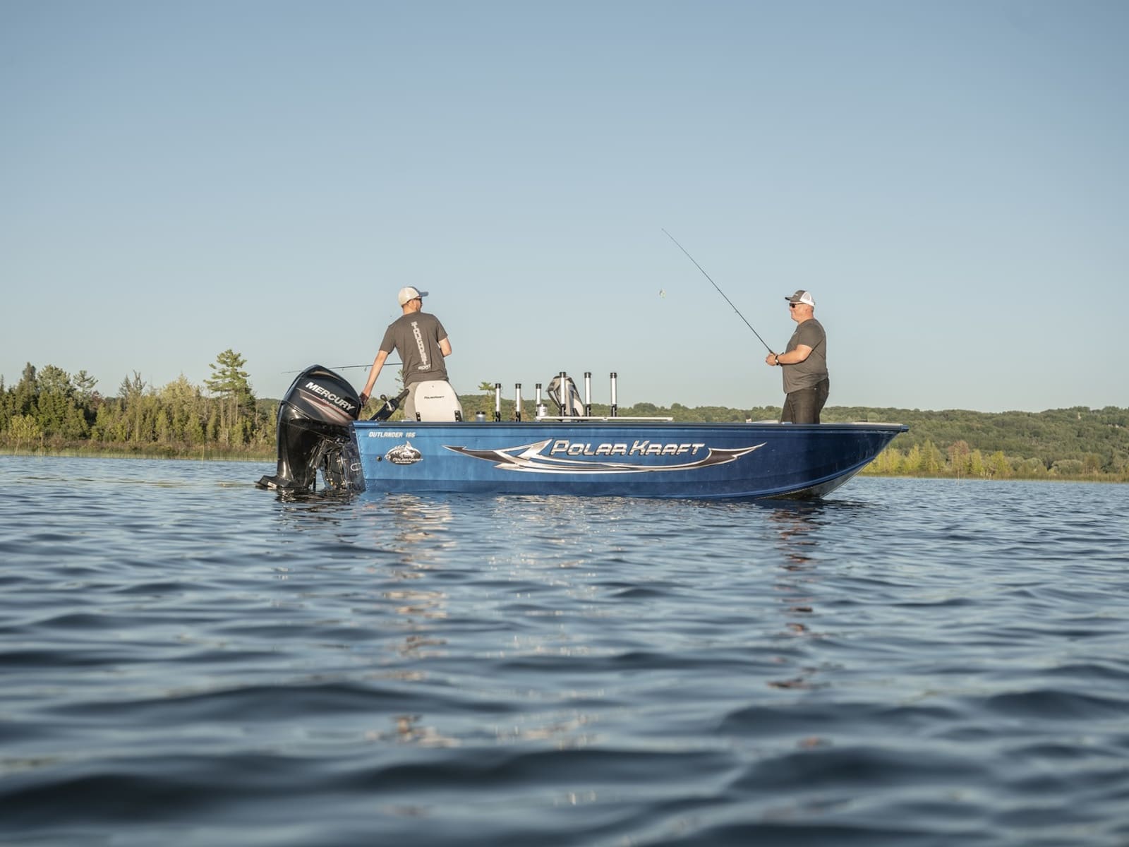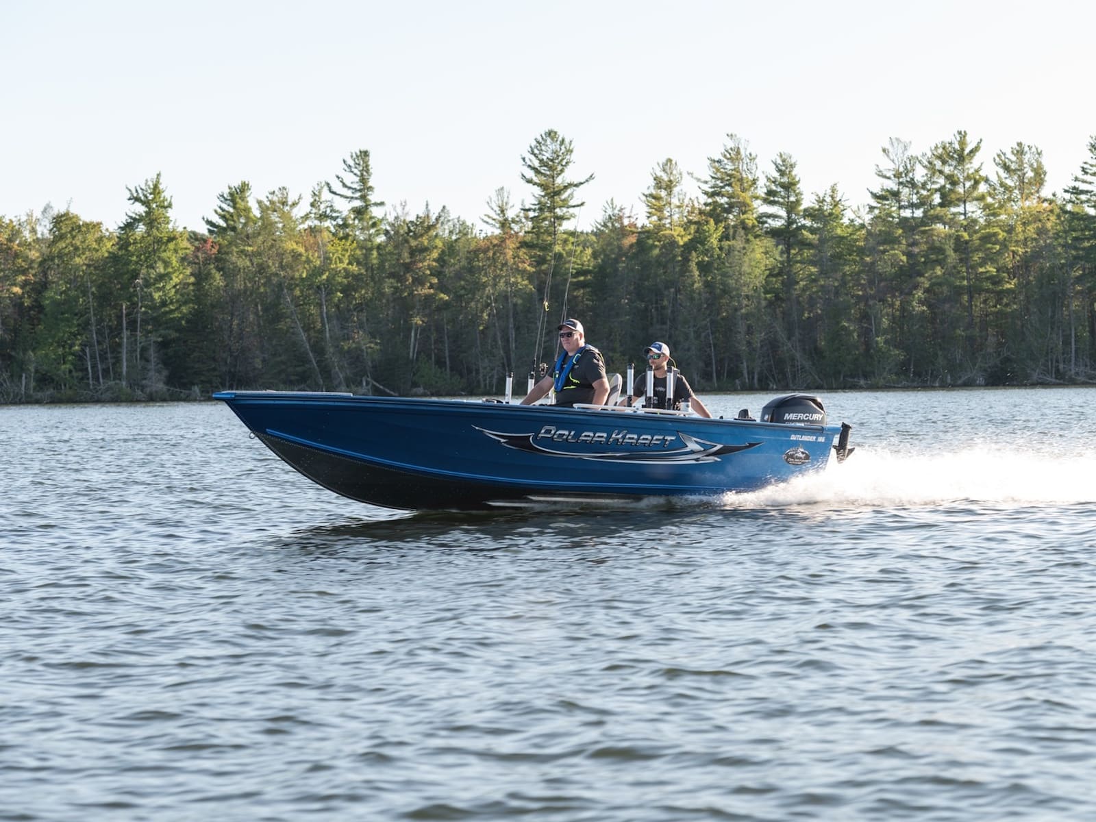 Walleye, ducks, bass or salmon? You can have it all with the versatile Outlander. The type of water or species being sought is only limited by your imagination and color choices are many with even a camo version. There are floor plans on this riveted boat that can accommodate more room for your Labrador retriever or larger deck space for fan casting. Choose from a center or side console based on your needs while all vinyl interiors ensure stained carpet is a thing of the past and Polar Kraft’s lifting pad gets you on plane with less horsepower. A unique Fast-Trak system makes mounting downriggers and other accessories a breeze.