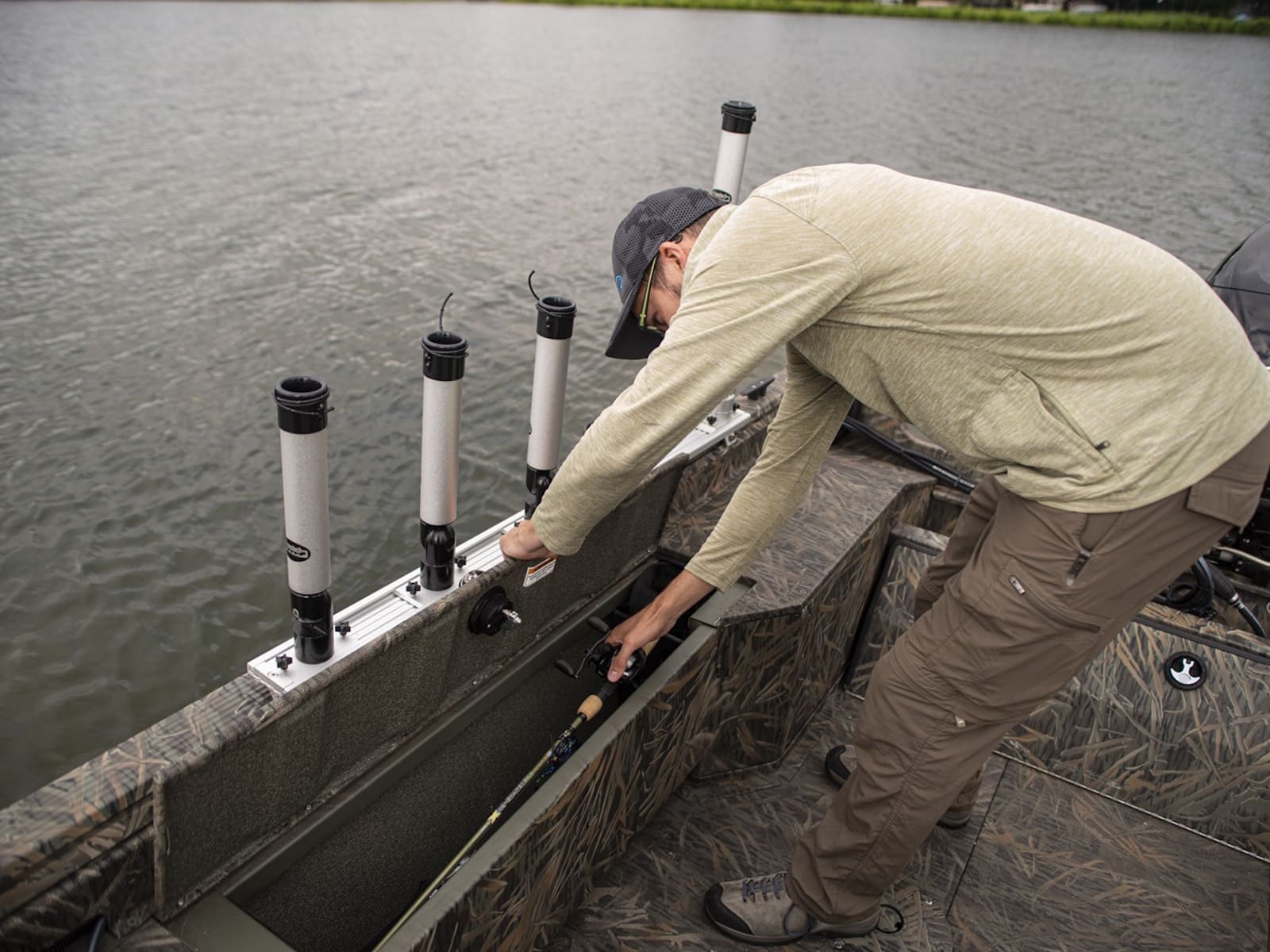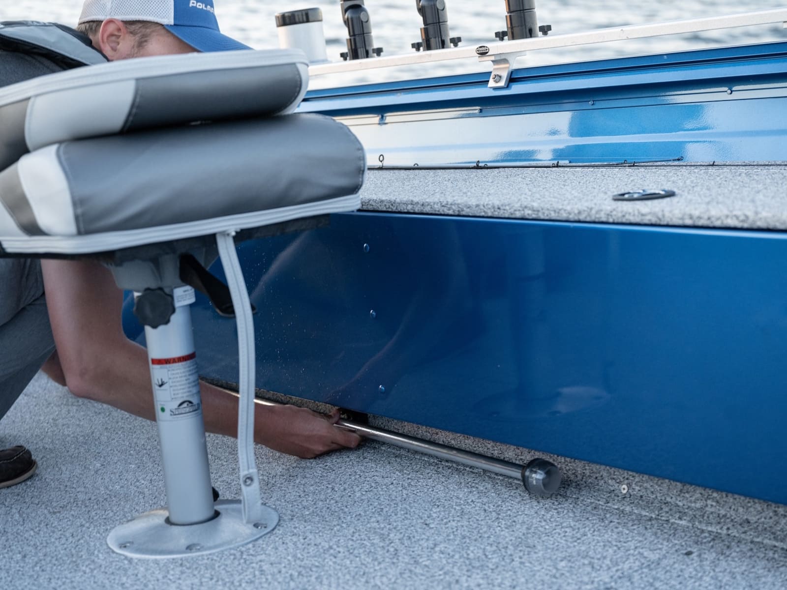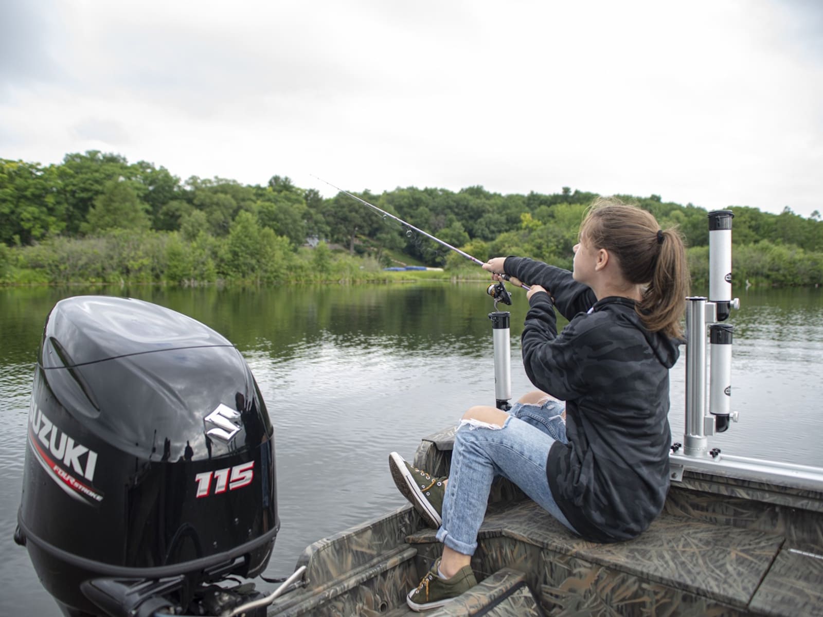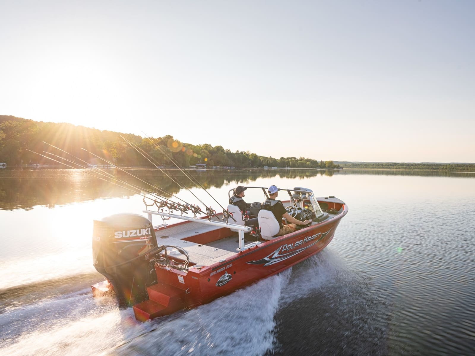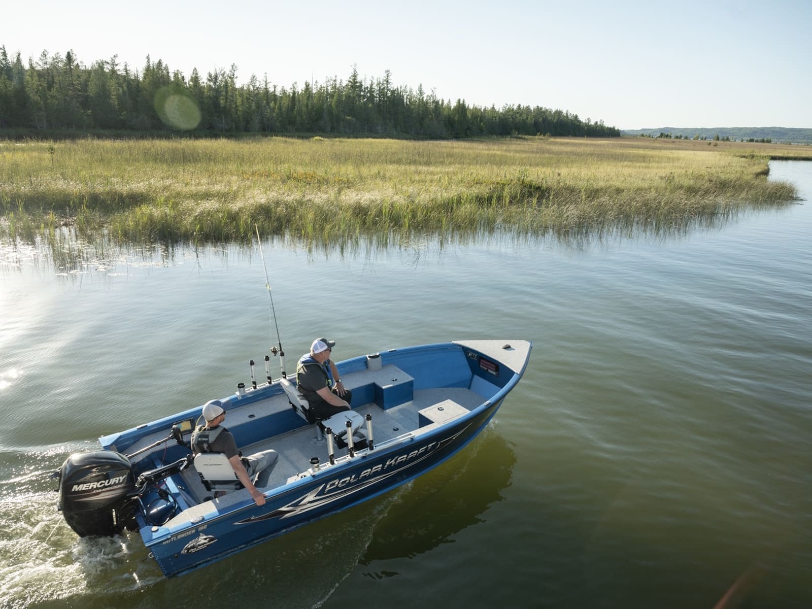 Walleye, ducks, bass or salmon? You can have it all with the versatile Outlander. The type of water or species being sought is only limited by your imagination and color choices are many with even a camo version. There are floor plans on this riveted boat that can accommodate more room for your Labrador retriever or larger deck space for fan casting. Choose from a center or side console based on your needs while all vinyl interiors ensure stained carpet is a thing of the past and Polar Kraft’s lifting pad gets you on plane with less horsepower. A unique Fast-Trak system makes mounting downriggers and other accessories a breeze.