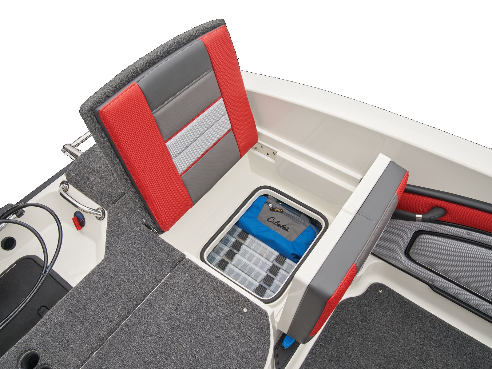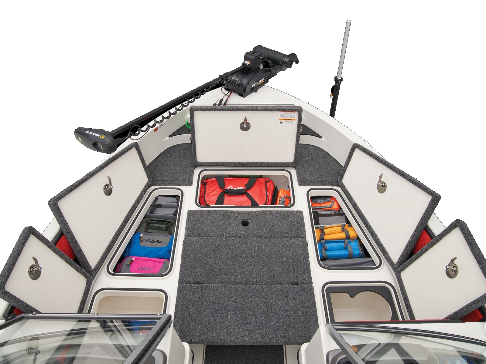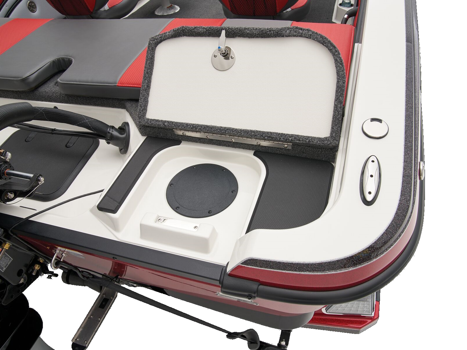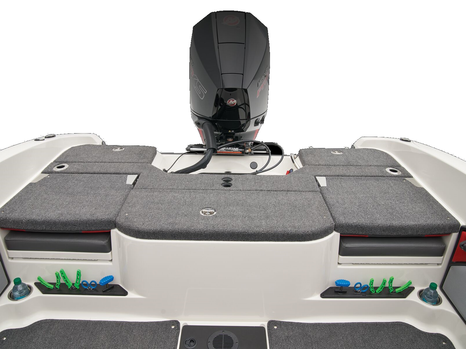 In the cockpit floor is a ski stow that doubles as a rod locker. Beneath the passenger console is a drop-down tackle tray, and the front deck hosts a wealth of dry storage with an insulated cooler and baitwell. The patented folding deck extension is a winner whether you’re cruising or casting and padded forward gunnels and deck cushions expand seating options. Concealed in the back deck are a pair of jump seats and a divided, timed, and aerated livewell for the utmost in capability. No matter where you look, every inch of the Ranger Reata 1850MS is cleverly crafted for maximum versatility.