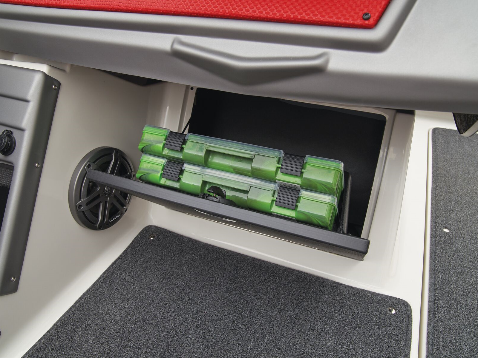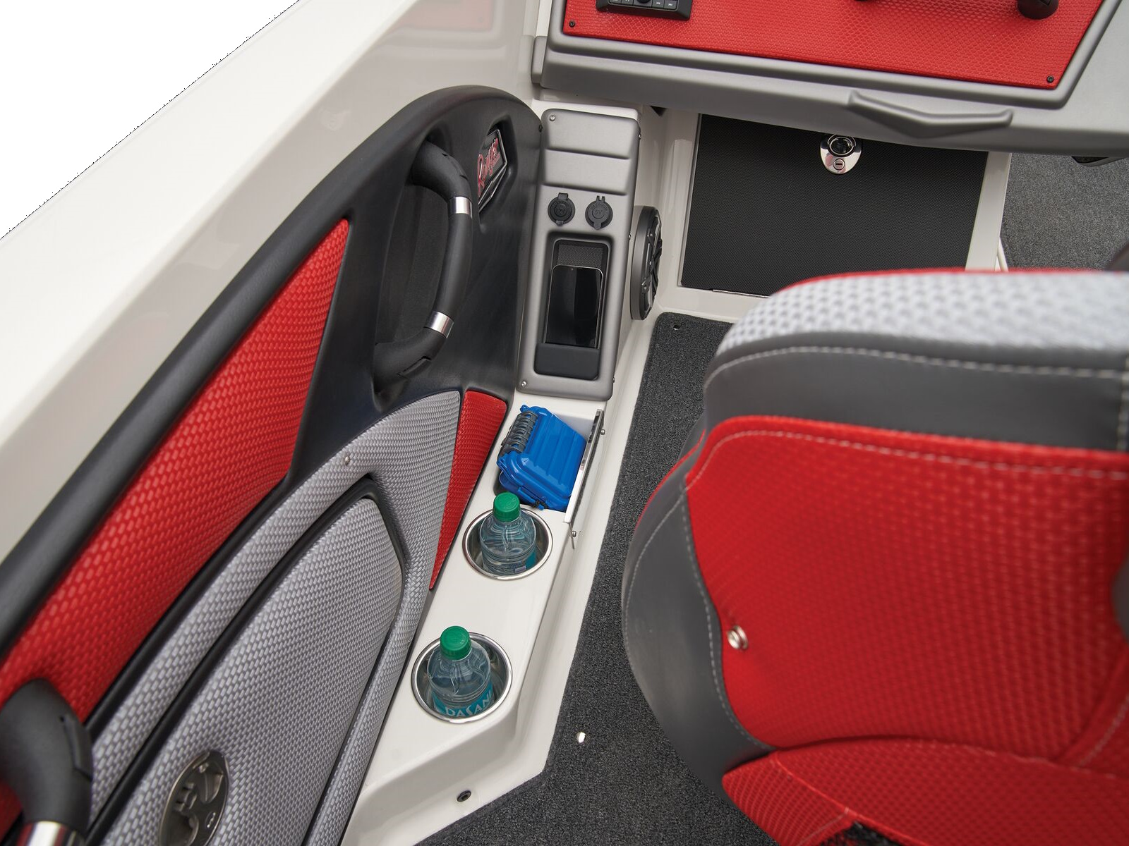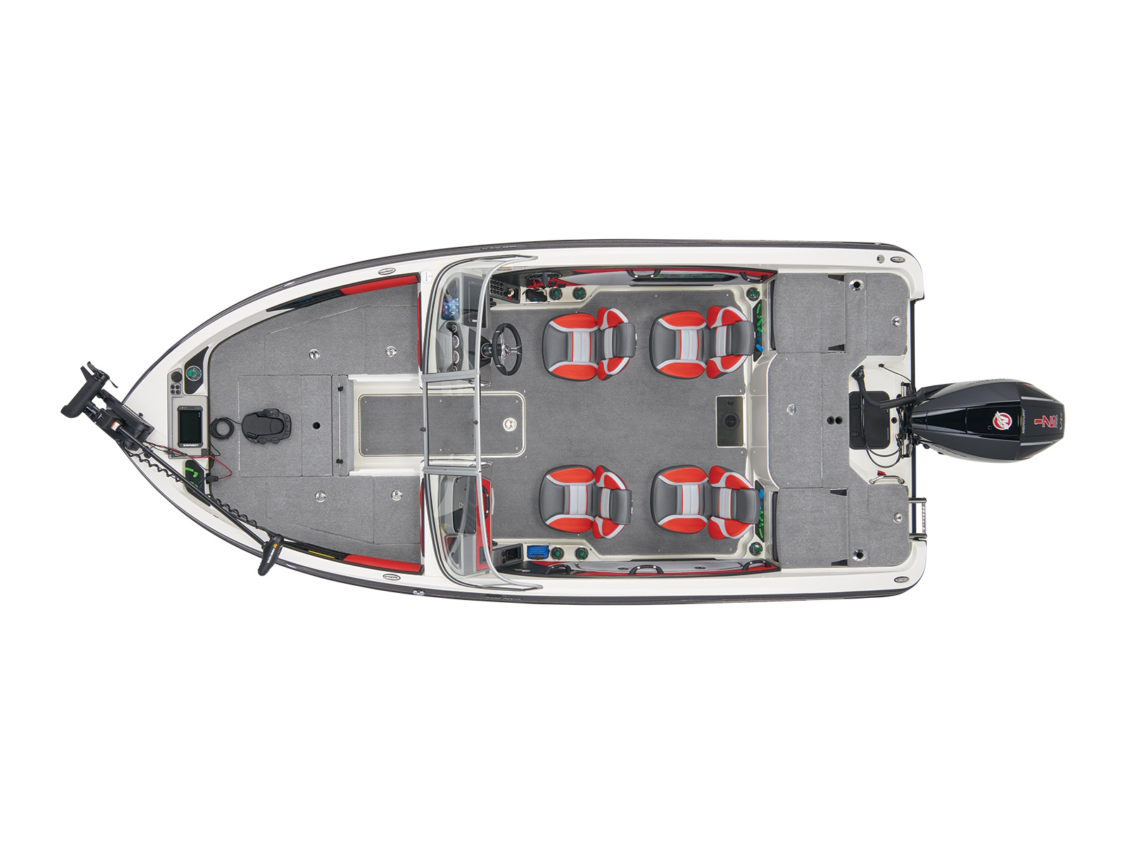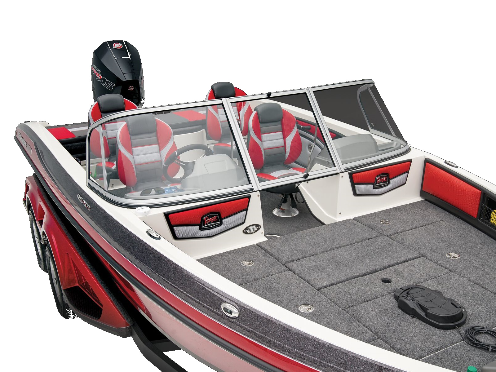 In the cockpit floor is a ski stow that doubles as a rod locker. Beneath the passenger console is a drop-down tackle tray, and the front deck hosts a wealth of dry storage with an insulated cooler and baitwell. The patented folding deck extension is a winner whether you’re cruising or casting and padded forward gunnels and deck cushions expand seating options. Concealed in the back deck are a pair of jump seats and a divided, timed, and aerated livewell for the utmost in capability. No matter where you look, every inch of the Ranger Reata 1850MS is cleverly crafted for maximum versatility.
