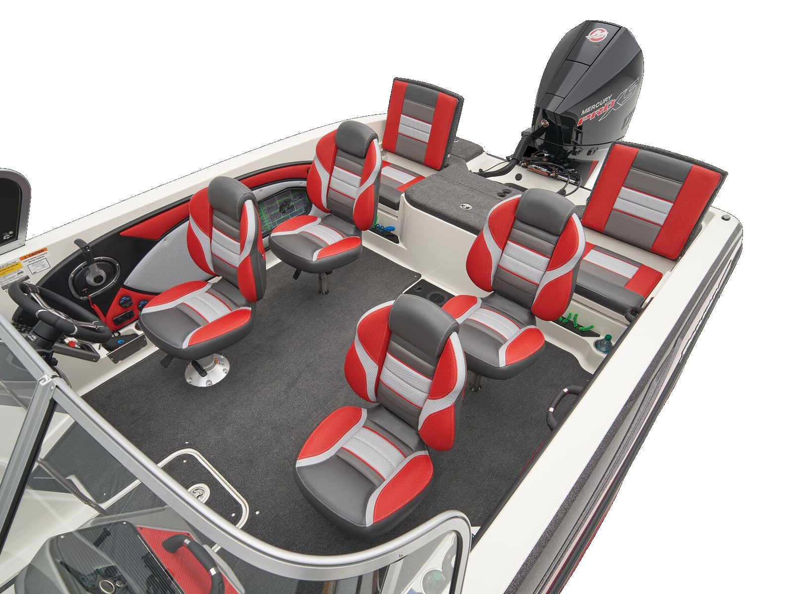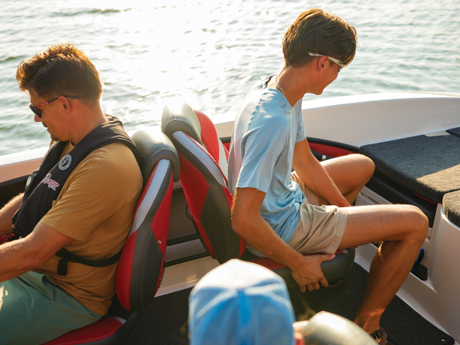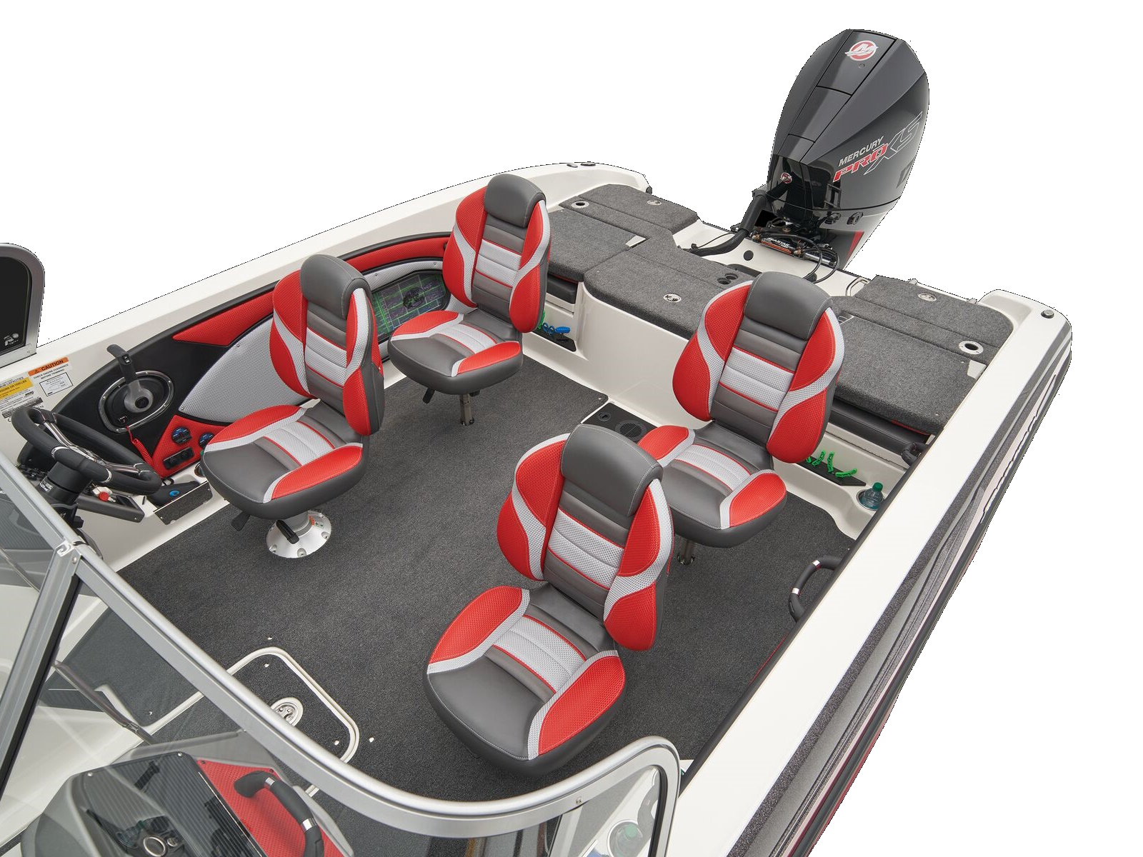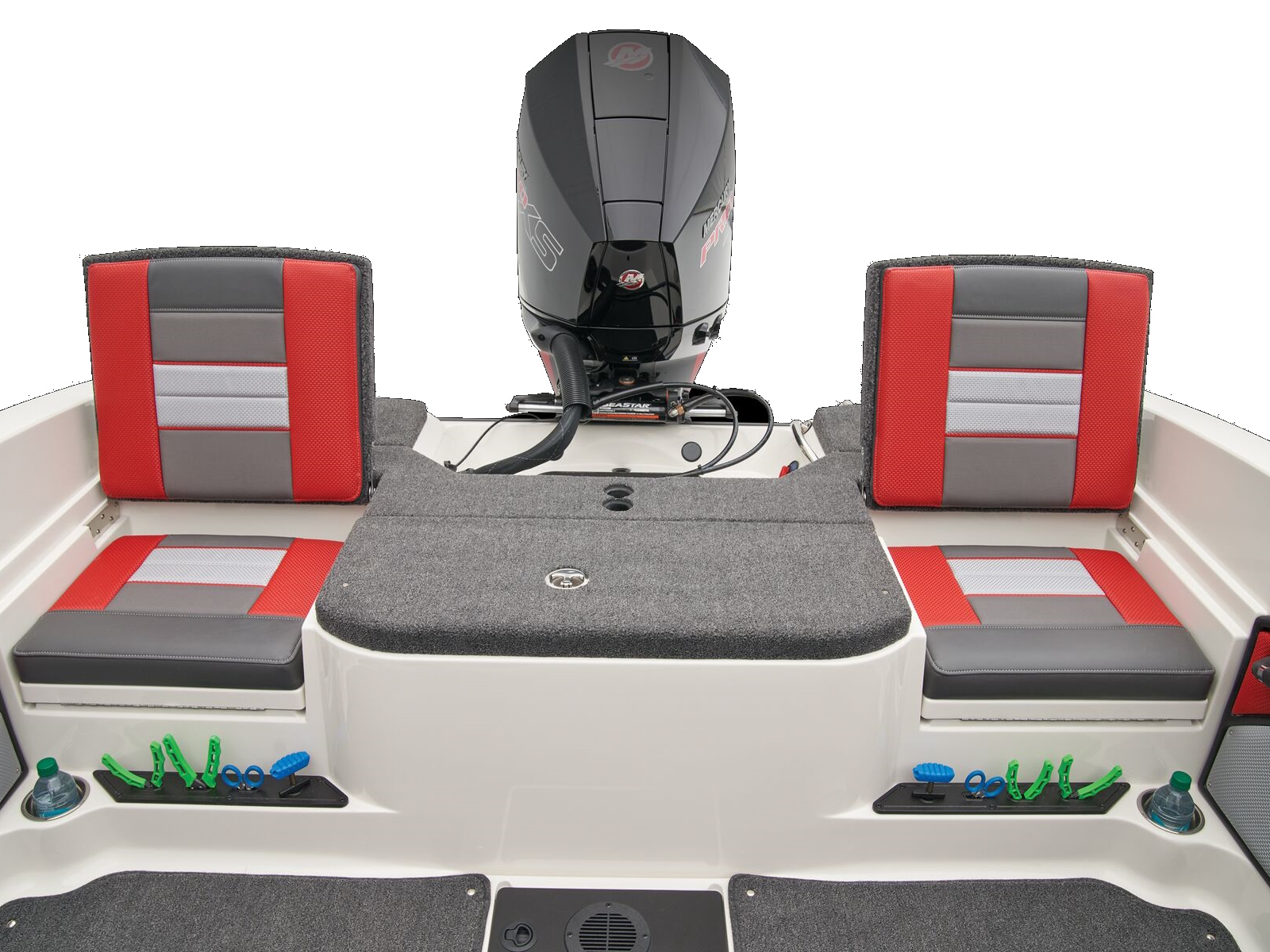 - Custom-fitted premium marine upholstery - (4) Soft Ride Seating (SRS) fold downs: (2) Bell Ped. w/ adjustable slide, (2) 15" Non-Adjustable Posts