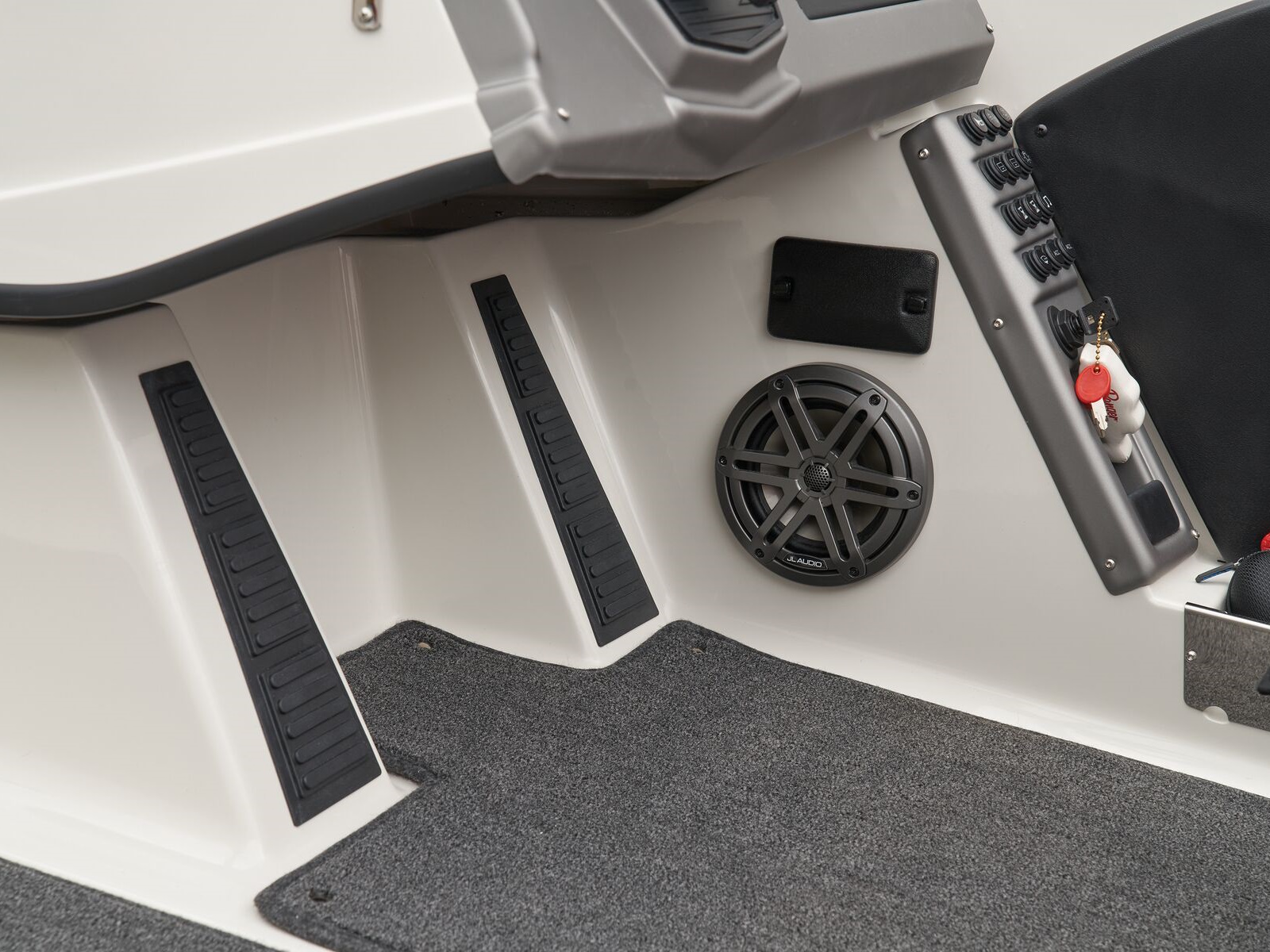 It boasts creature comforts that might be found in an upscale sedan; two USB charging ports, a Bluetooth® stereo, plush, handmade seating, and a noticeably smooth ride. Reliable, economical, performance is delivered by way of a 150-horsepower outboard that’s up to any task the day holds. Plus, a newly redesigned bow panel adds even more convenience.