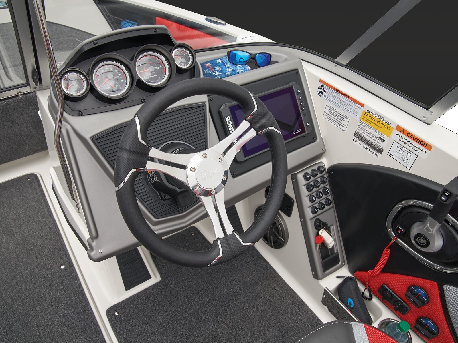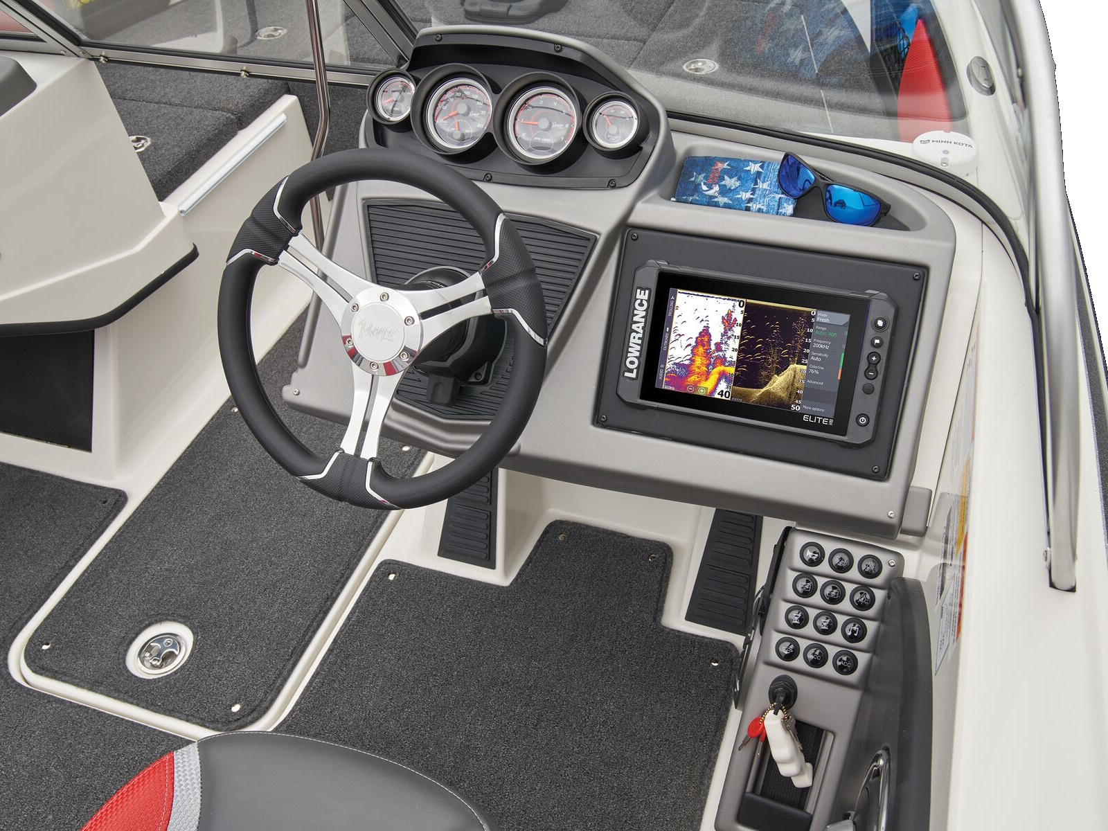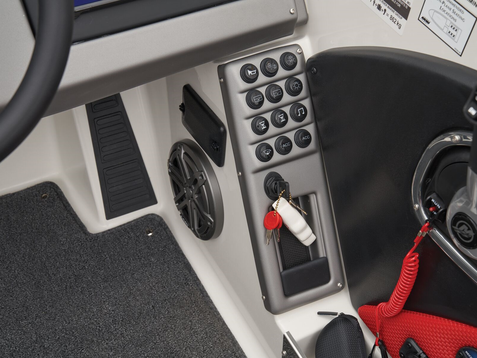 - Console panel w/ switches & gauges - speed, tach, trim, water pressure, fuel