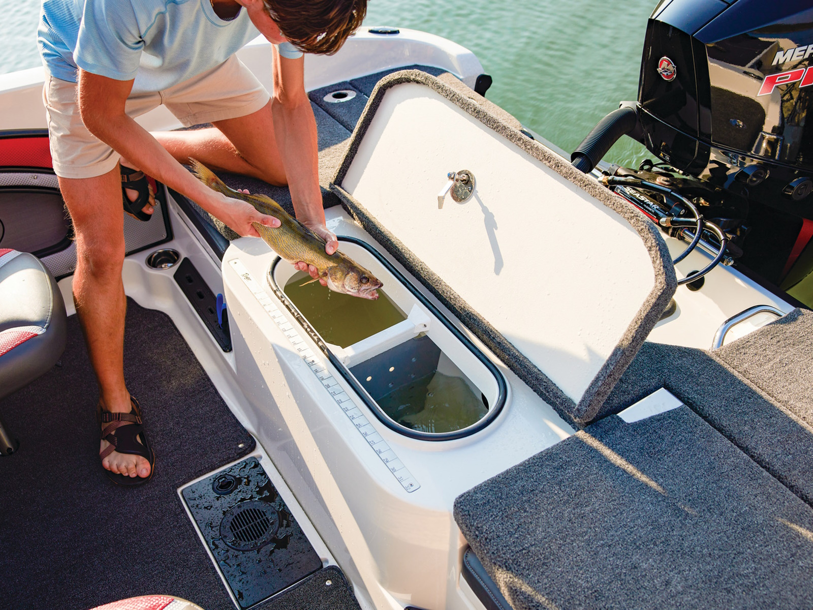 - Recirculating aerated livewell w/ filter screens & automatic timer