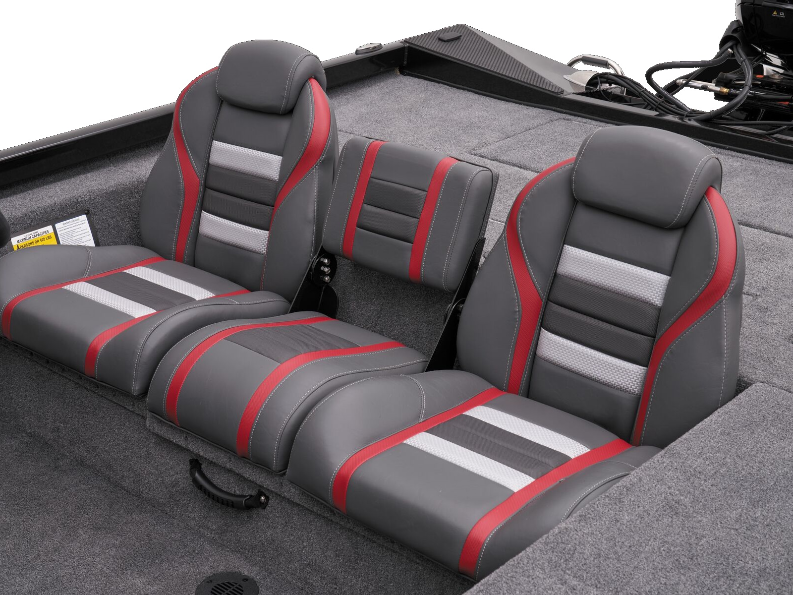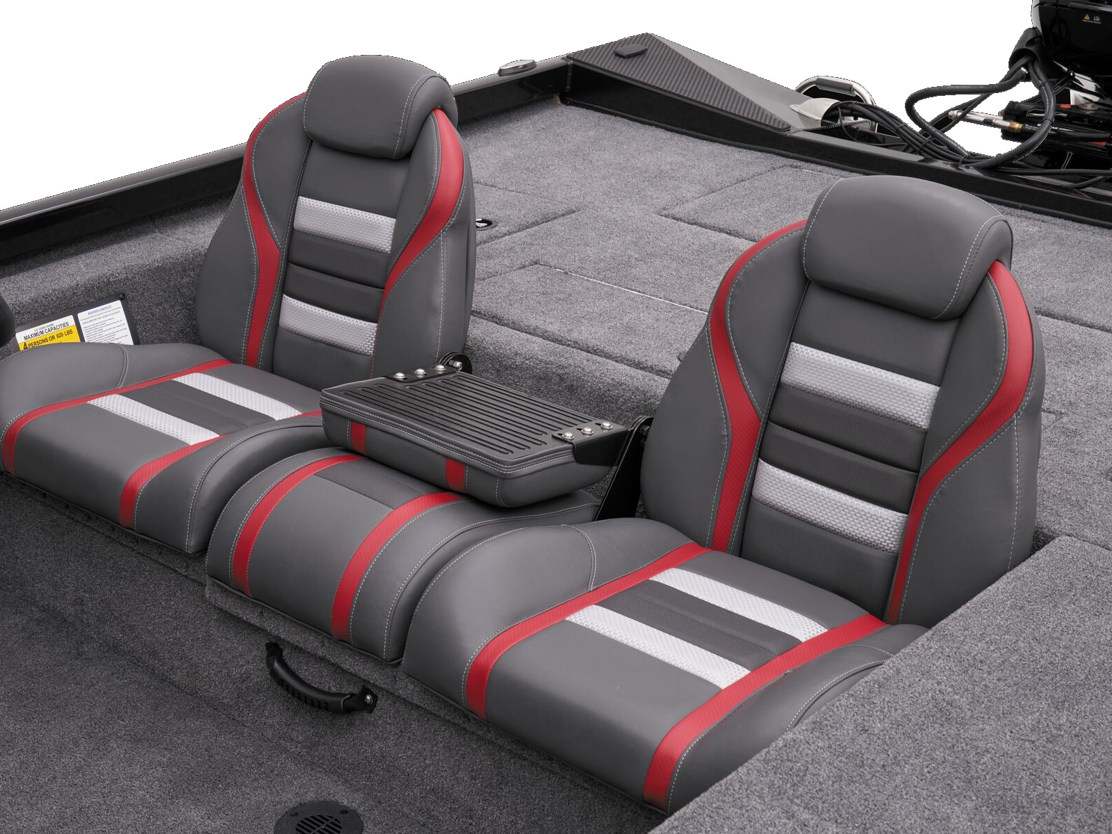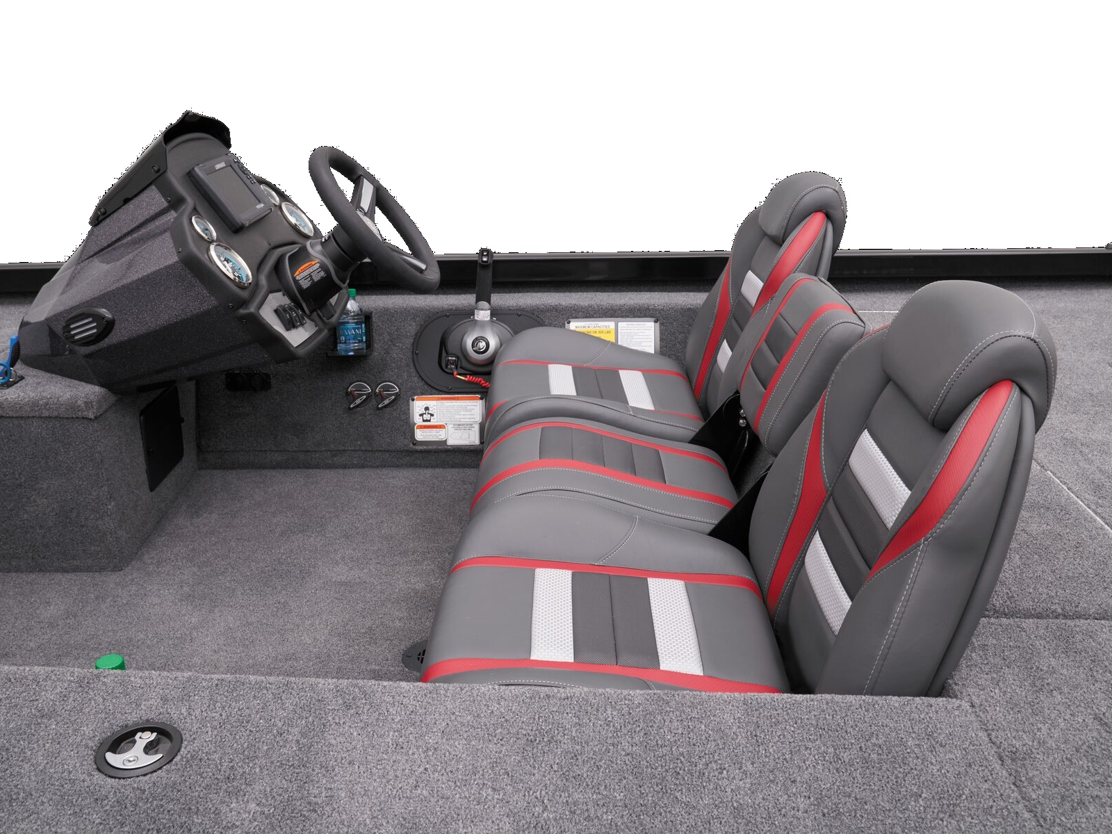 - Custom fitted marine upholstery- driver/passenger bucket seating w/ center fold down & two matching fishing seats