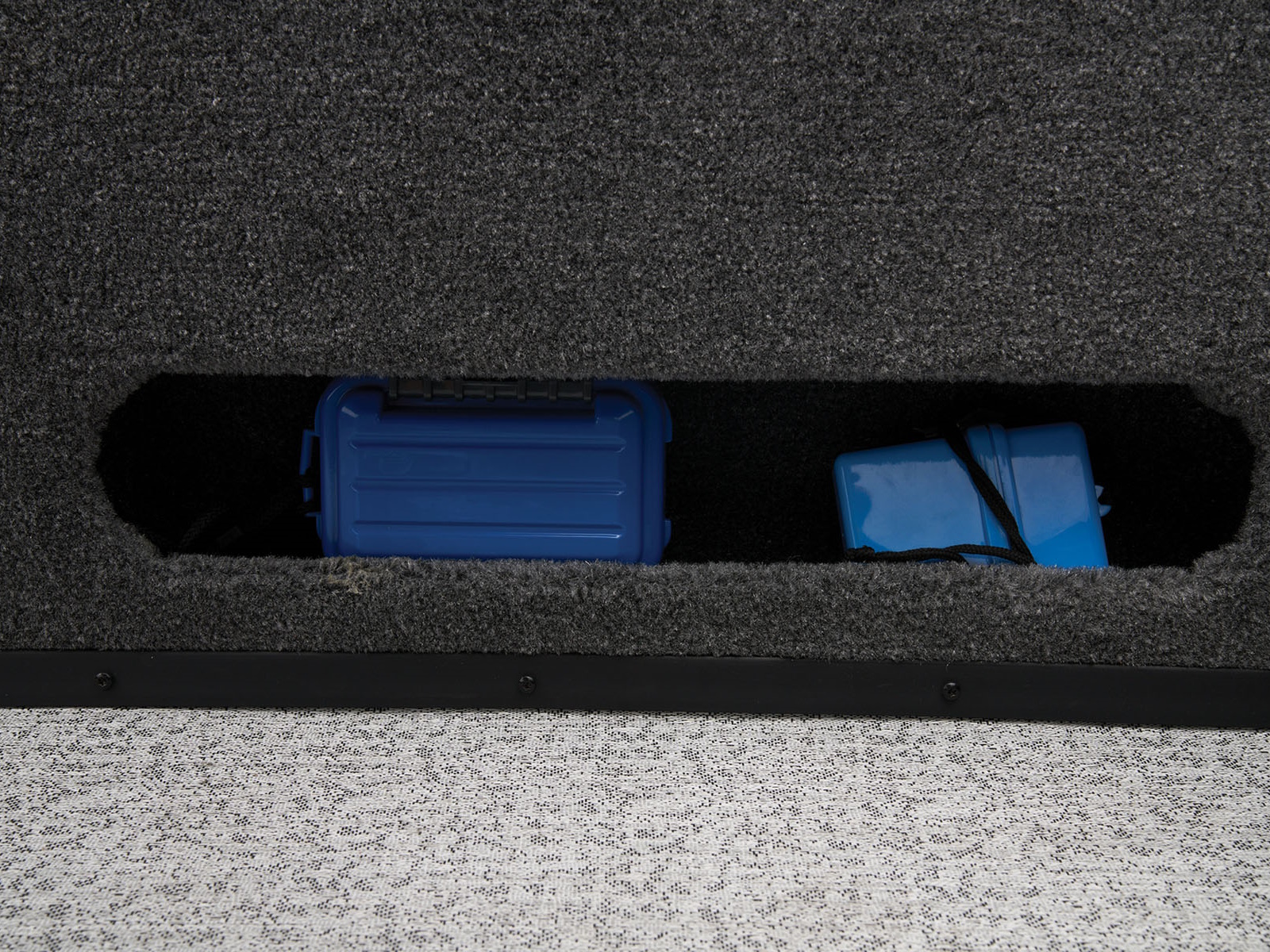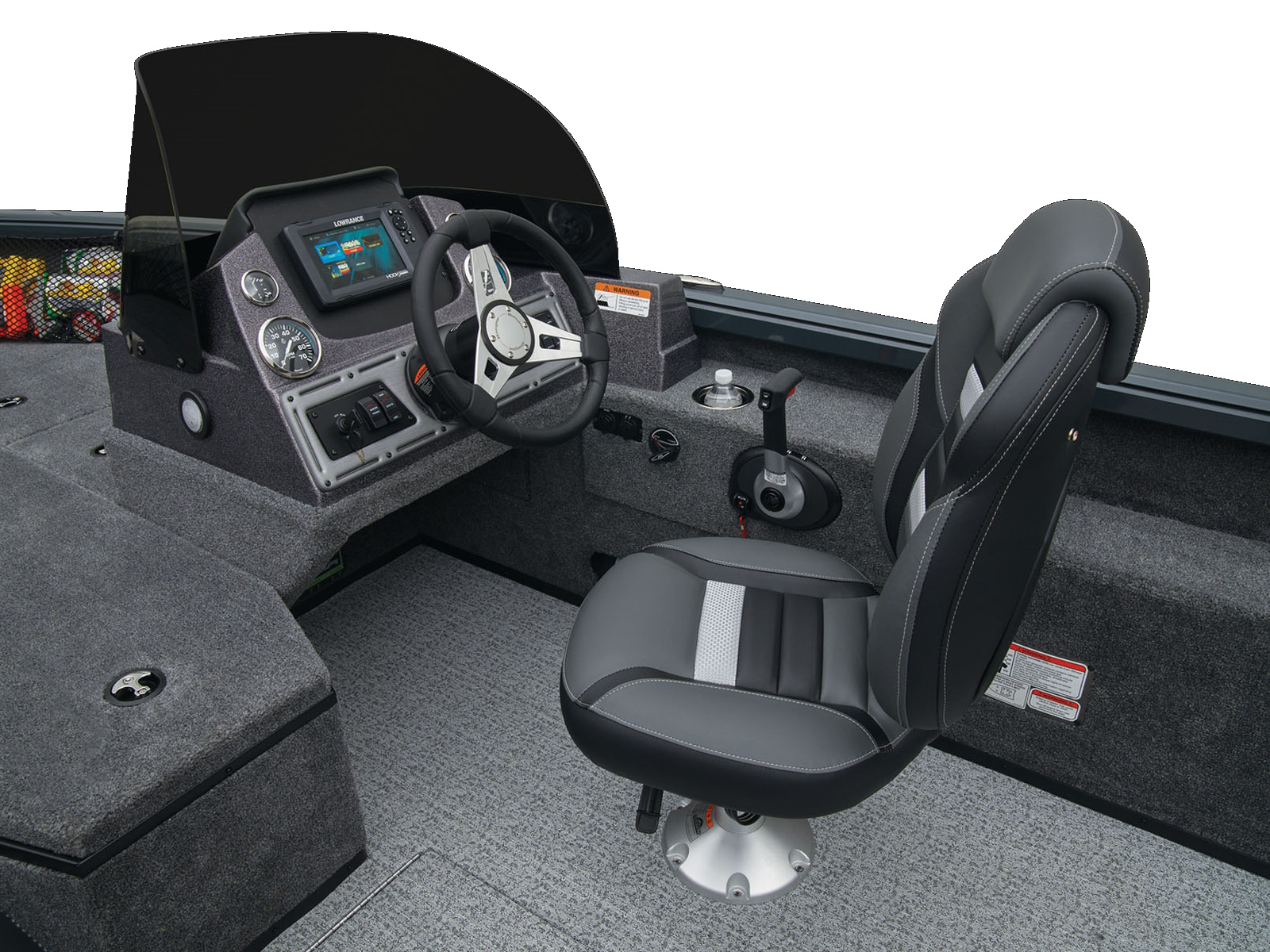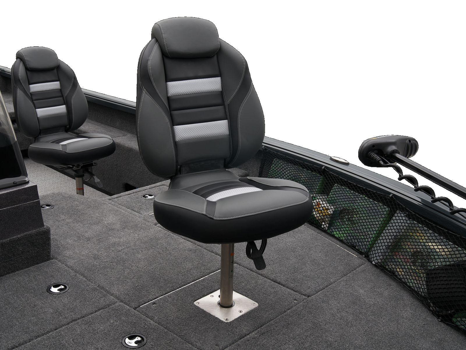 - Custom fitted marine upholstery- (3) matching fishing seats, driver seat slides