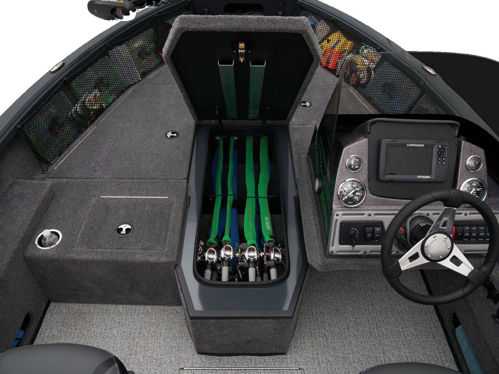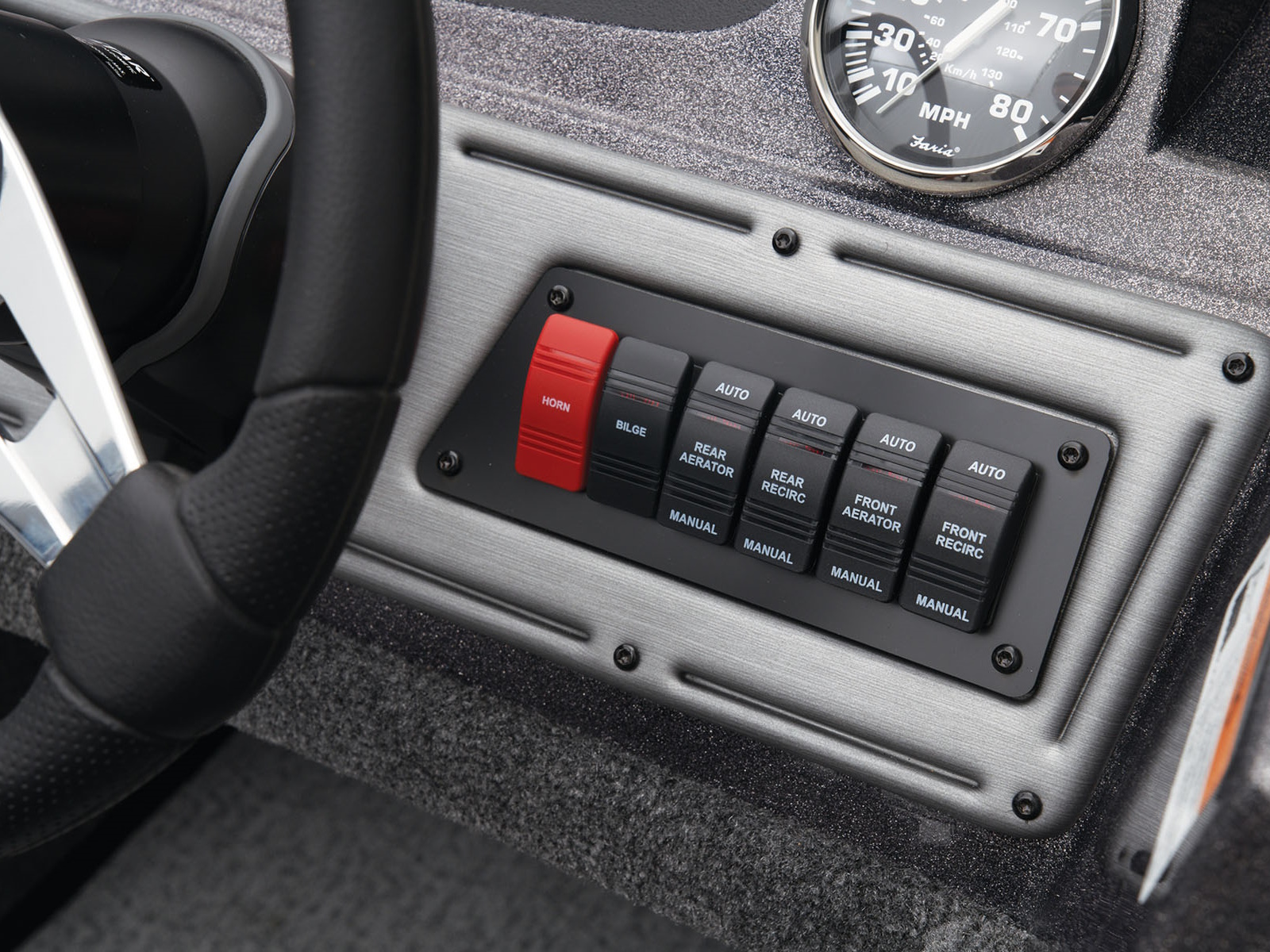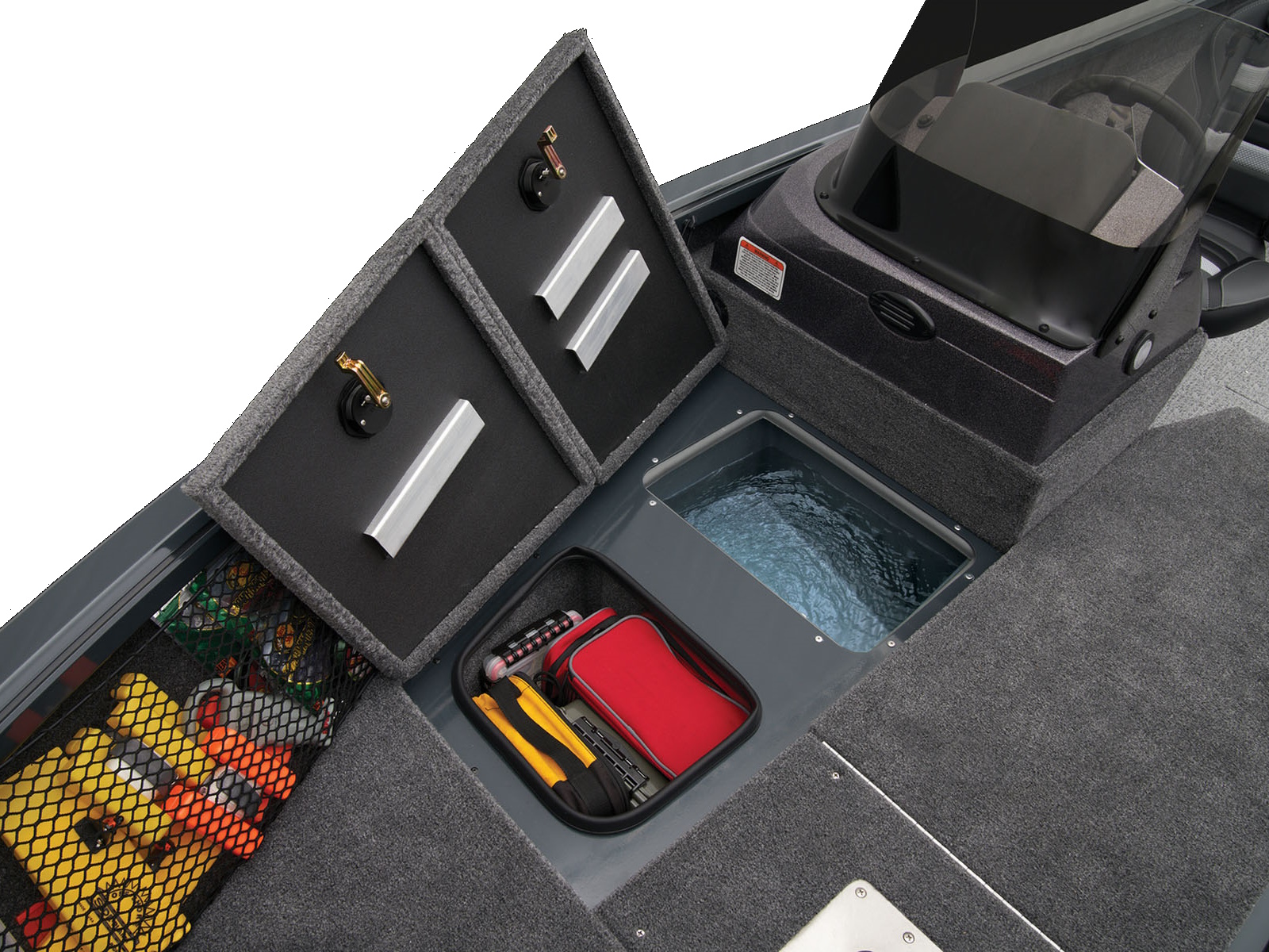 - Aerated divided livewell w/ timer and baitwell on rear deck