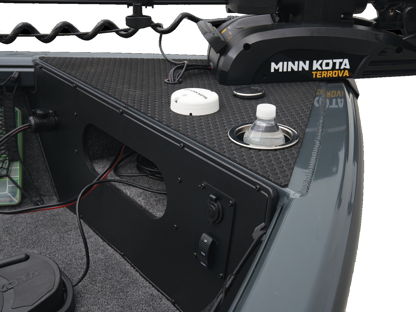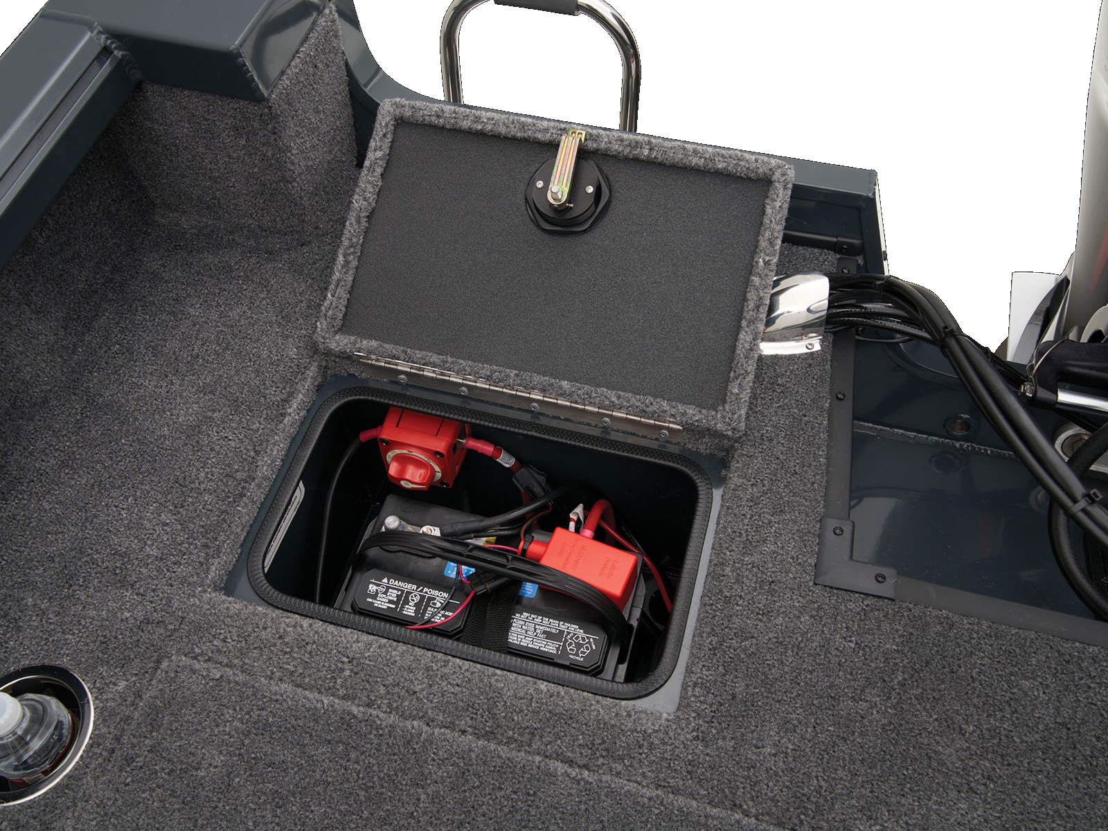 - Cranking battery and 2 trolling motor batteries with tie downs