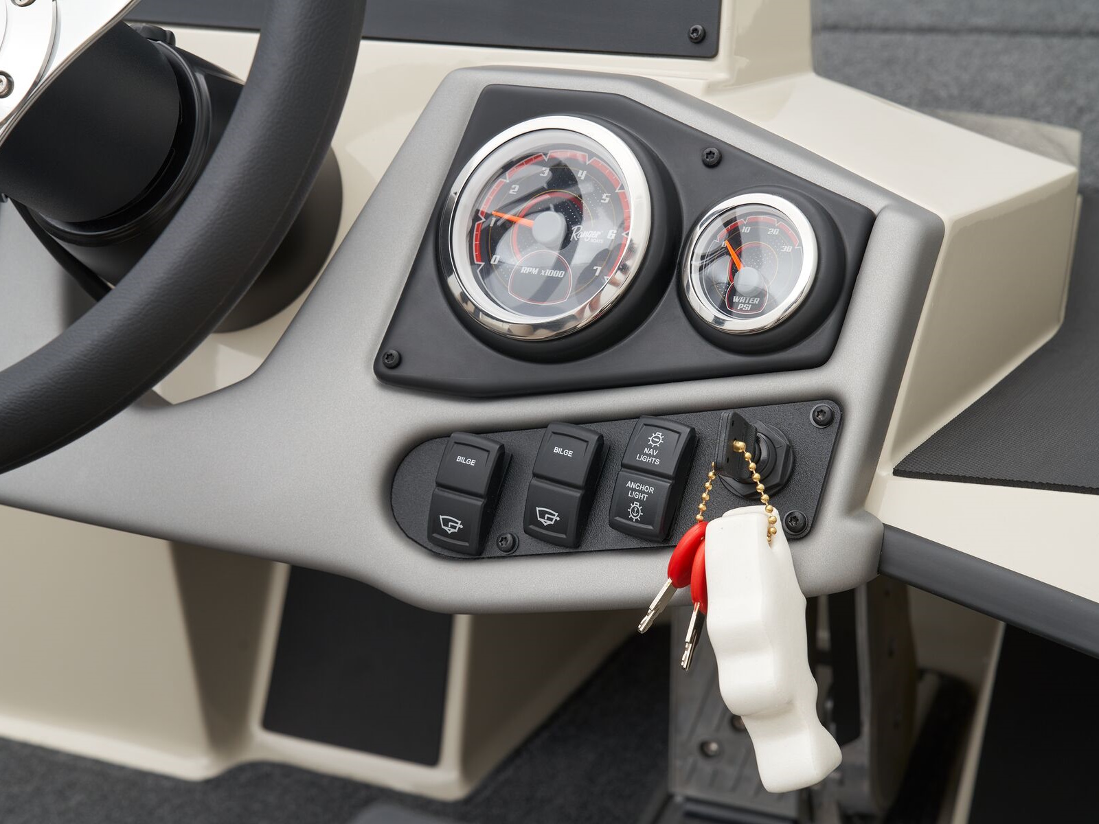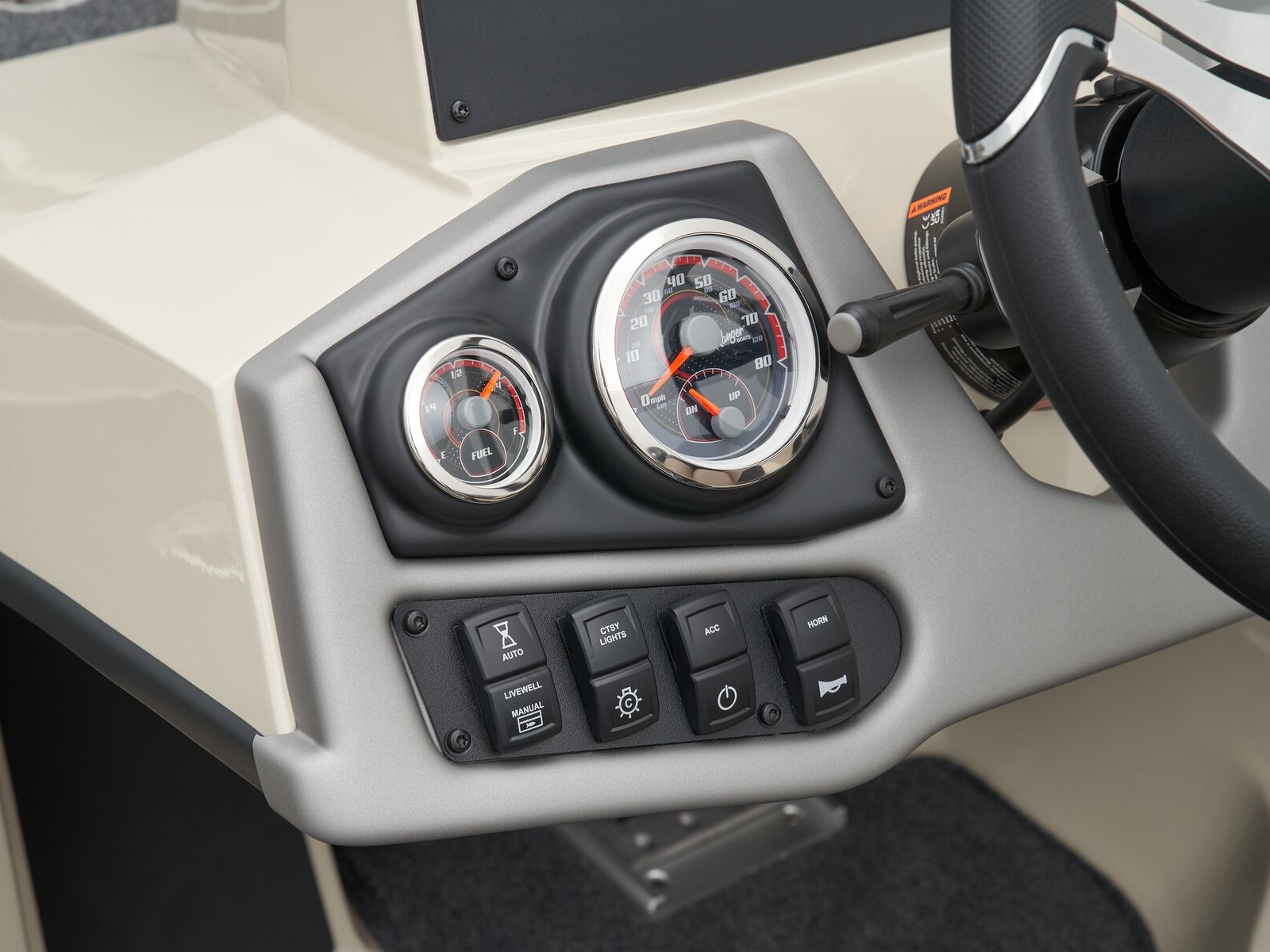 - Multi-function custom gauge package: speedometer, tachometer, fuel, trim, water pressure, temp & volt