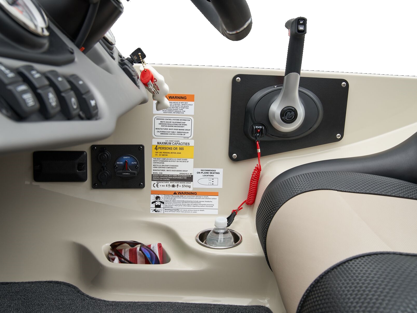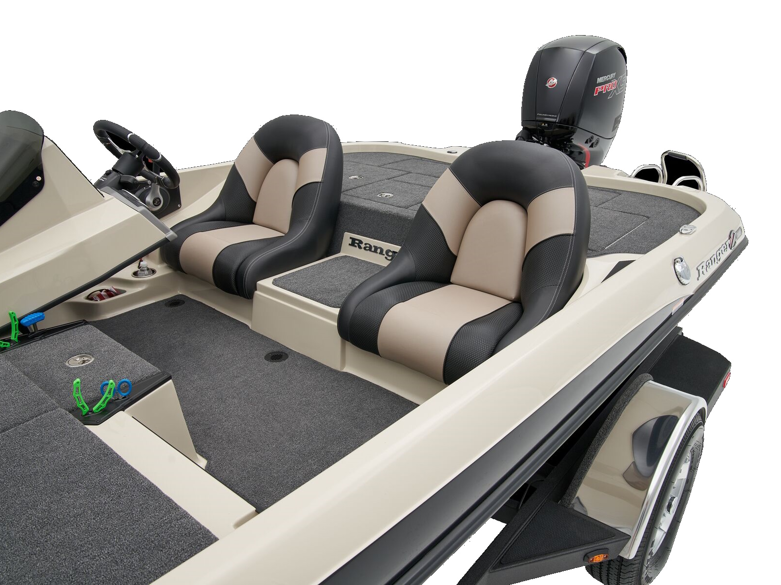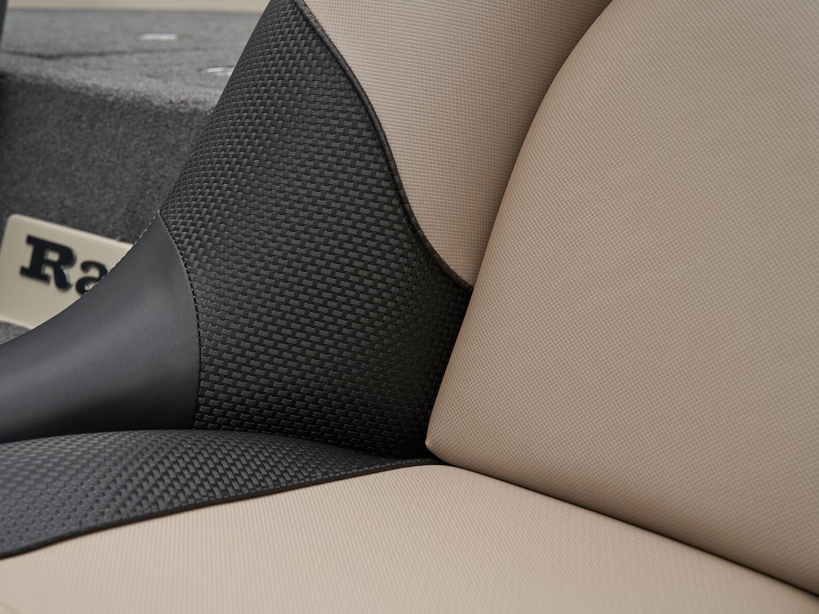 - Custom-fitted premium marine upholstery Soft Ride Seating (SRS) bucket seats