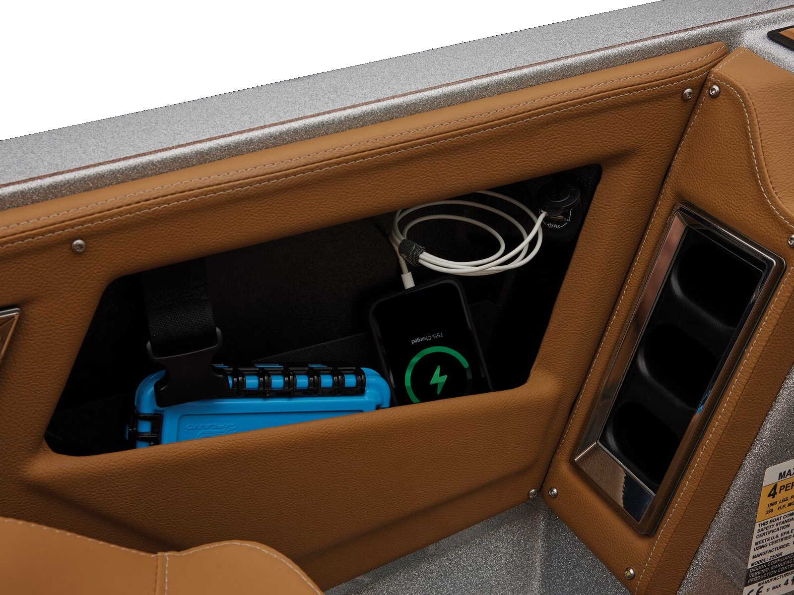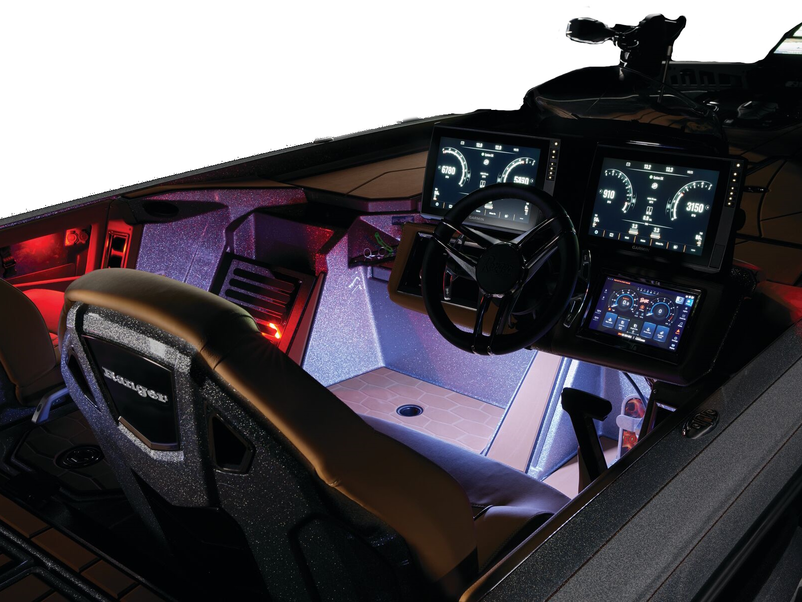 - Auto-on LED storage compartment lighting & LED courtesy & livewell lighting