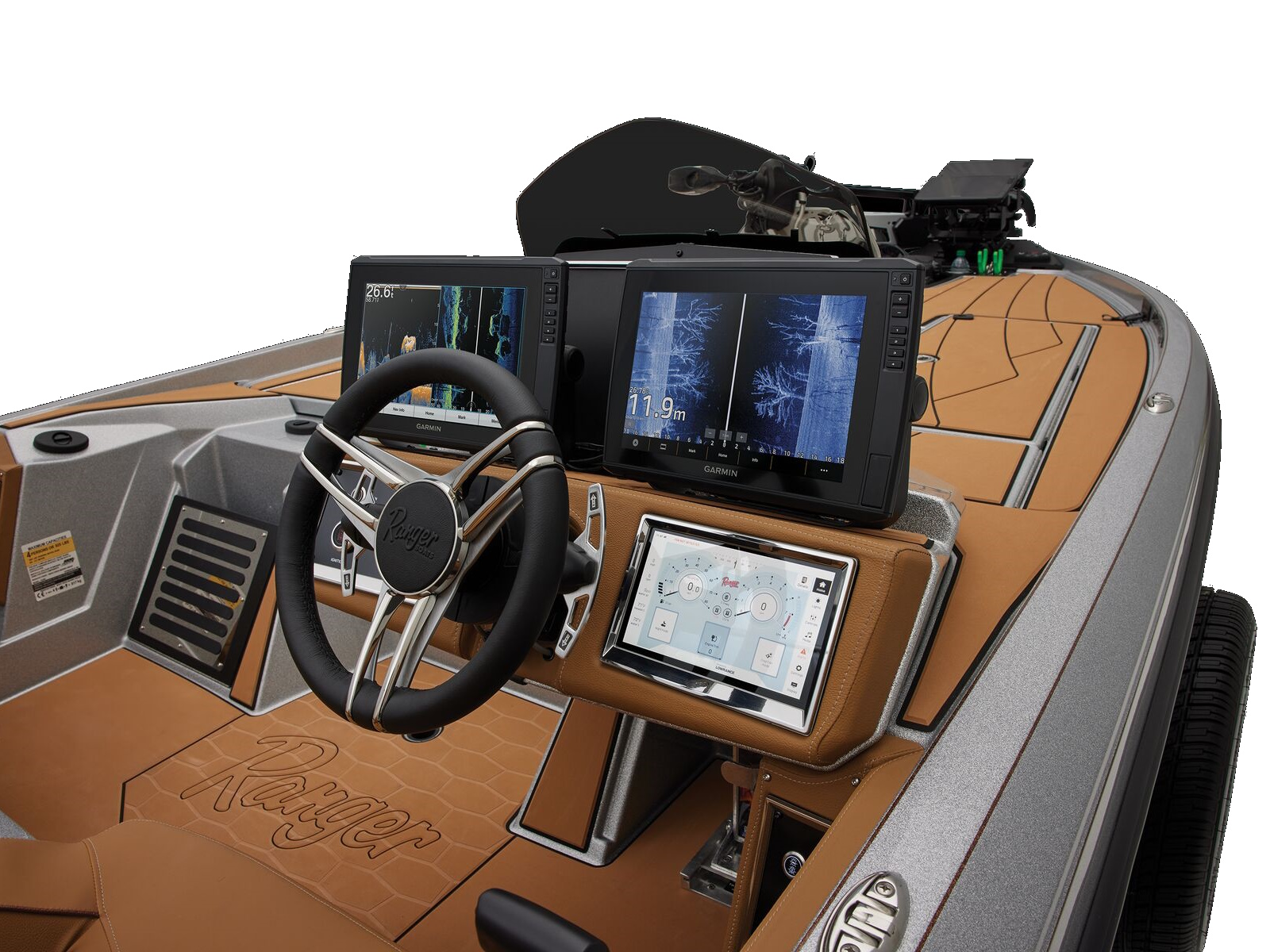 Every so often, a boat is created that raises the bar in terms of refinement, polished perfection, and cutting-edge advancement. Meet the all-new Ranger Z520R Ultra, a no-holds-barred icon that elevates what a bass boat can be. The Z520R Ultra starts with a scanned and perfected Z520R hull and adds bespoke refinements throughout to deliver a paradigm shift in the bass boat experience. Tan Buckskin Heated & Air-Ride seating offers plush durability to the interior that meshes with the all-new cockpit and deck flooring that delivers an unmistakable statement on the water and at the ramp. A never-before-seen steering wheel is the focal point of the console that's finished with premium matching stitched marine-grade vinyl, and can carry twin large-screen graphs. As you'd expect from Ranger, the Ultra is a canvas upon which you can craft your ultimate dream rig with complete customization of paint schemes, the most sought-after trolling motors and electronics, and our unmistakable, industry-leading quality born of our passion for perfection that spans more than half a century.