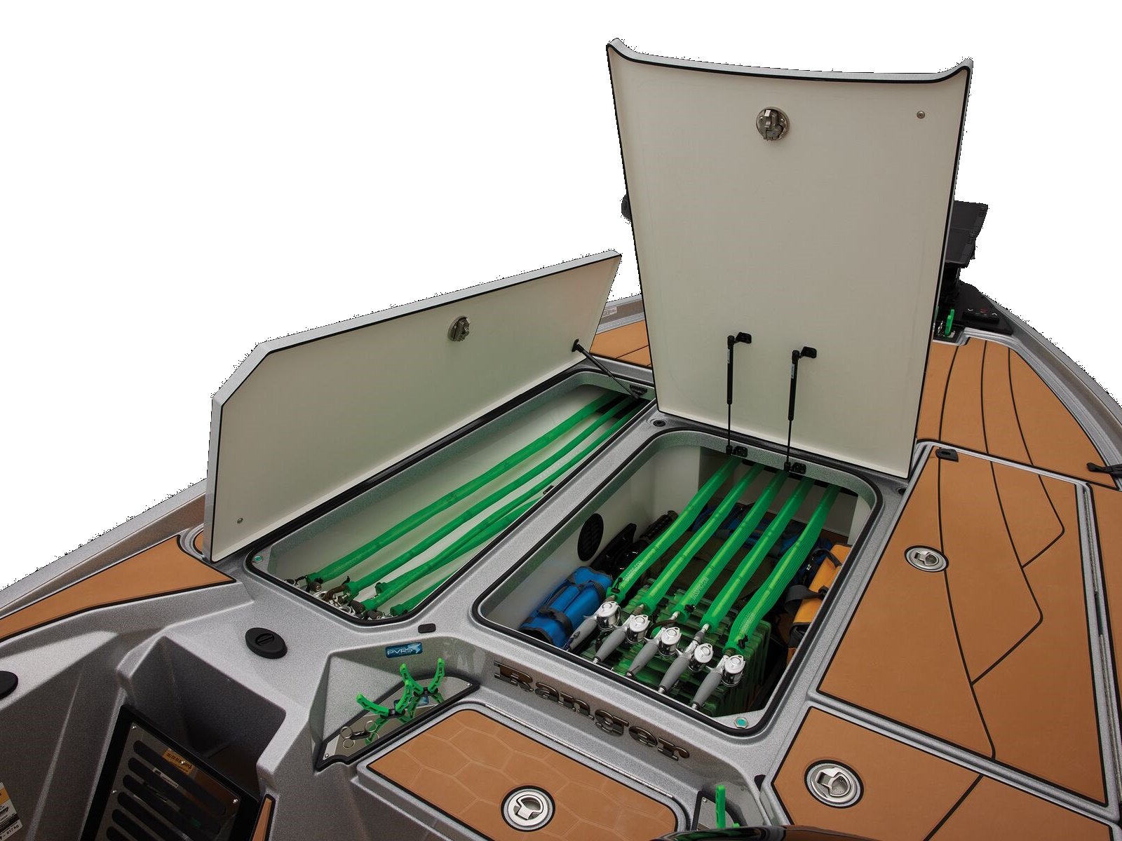 - Ranger Echelon™ Rod Storage System - 3-tiered port & 2-tiered starboard rod lockers