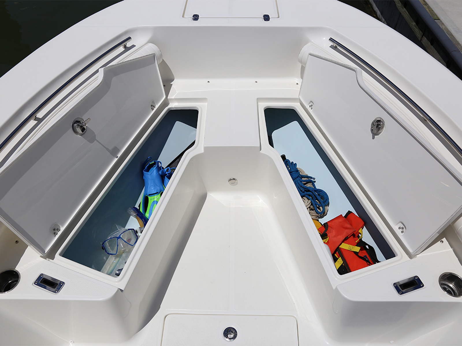 The largest of our center console boats, the LX24 measures 23′ 9″ and is both roomy and fun. Serving those looking for the sweet spot between “smaller” and “larger” center consoles, this 24-footer boasts dozens of standard features. Built from all-composite materials and more freeboard than our bay boats, your family and friends will enjoy fishing and play and simply taking in the view from the forward or rear lounges.