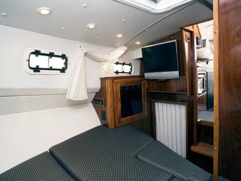 Every serious angler dreams of the ultimate fishing boat; the Offshore 3000 can make that dream a reality. The Offshore is a world-class sports fisher that boasts optimal performance, speed and long range capabilities. Similar to the Voyager 3000, the Offshore combines the benefits of a great fishing boat with all the added luxuries of a pleasure cruiser. With a slightly shorter cabin than the Voyager, the result is a huge 82 sq. ft. aft deck. The additional deck space creates a large fish hold and 2 storage compartments to store your gear. Included in the Offshore’s functional cabin is a four-person dinette, an enclosed head with shower, and full galley with stove, microwave oven, refrigerator and sink. Accommodations for six are achieved with the Offshore’s convertible dinette and quarter berth. The Offshore 3000 is the extreme sport fishing vessel that will make you the envy of the water.