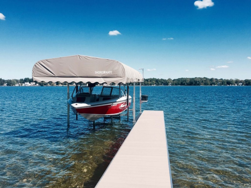 Shore-Mate hydraulic boat lifts are designed for boats with total weight up to 30,000 pounds. To choose the right lift you first need to know the approximate “Total Weight” of your boat. That number is the “Dry Weight” (usually found on your boat registration) plus the estimated weight of fuel, passengers, accessories, etc. Make sure that the “Maximum Weight” of the lift you chose is greater that the “Total Weight” of your boat.