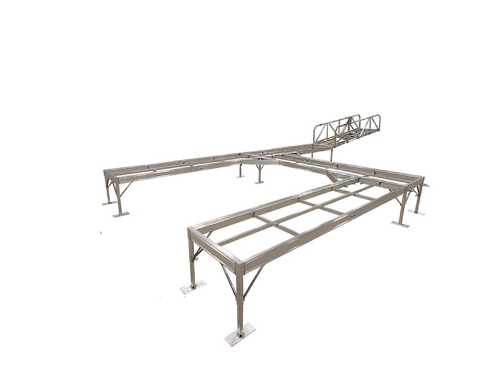 5-Sided Dock Legs™, 18” pockets, and dime-welded aluminum keep your dock stable on firm or soft bottoms for safe, worry-free use.