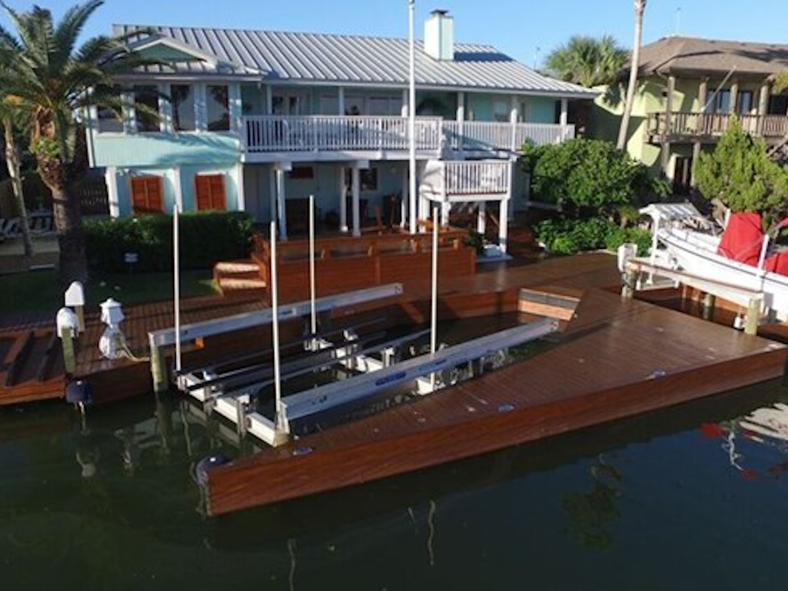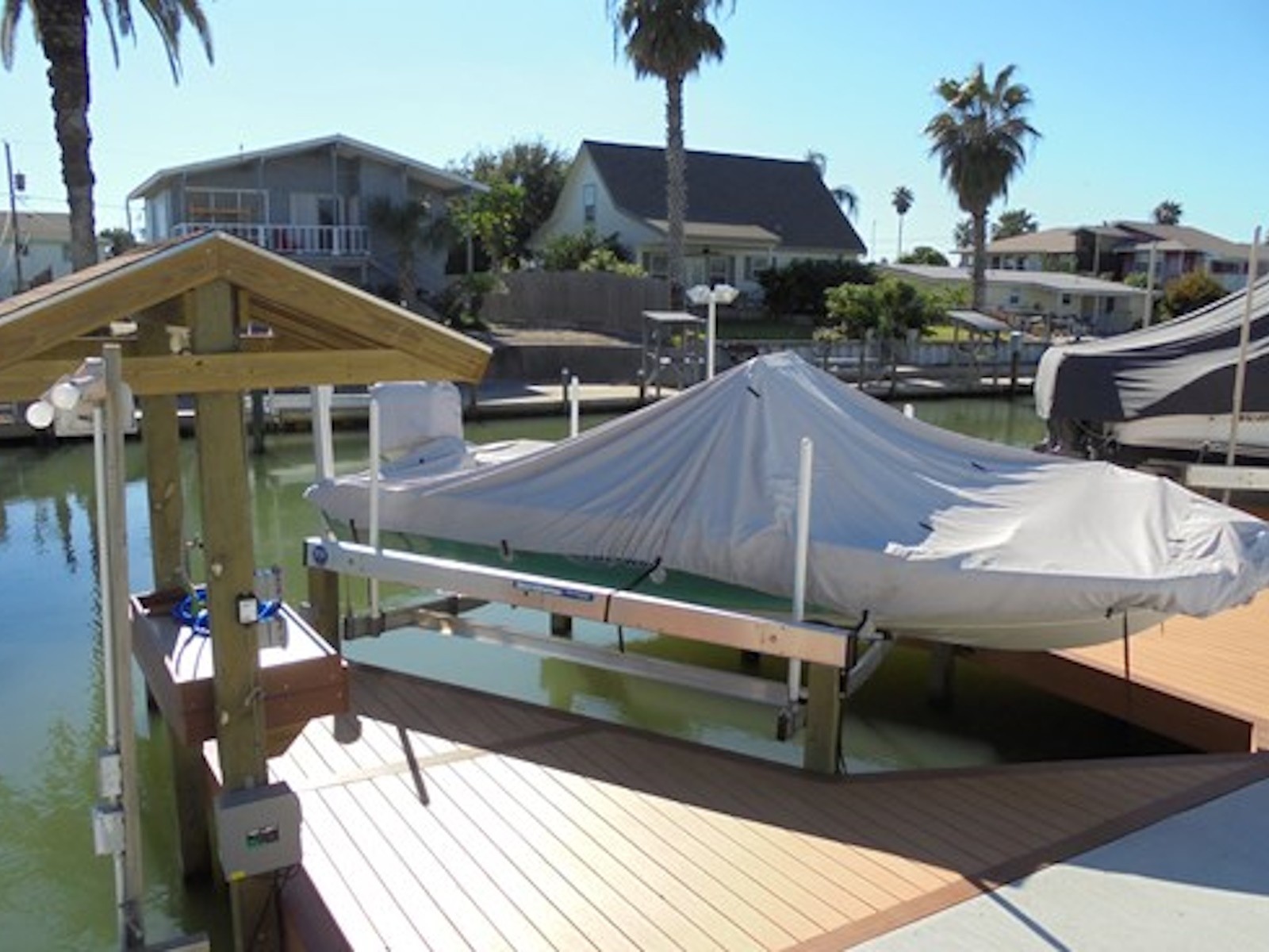 This lift design is a traditional approach. Install the lift tubes high for tidal fluctuation or deck-level for a low profile look that doesn’t interfere with accessing your boat.