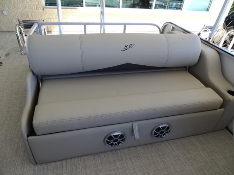 Featuring a rugged fiberglass front fence and the iconic Silver Wave sweep accent delivering a high-end look. But this is no bare-bones pontoon boat. SW3 boasts an impressive list of standard features that will elevate the boating experience for everyone on board. Garmin electronics, quality marine-grade upholstery, an extended rear deck and reclining captain’s chairs will keep you safe and comfortable all day on the water. Attractive hull colors with complimentary upholstery are available in the most popular sizes and floorplans.