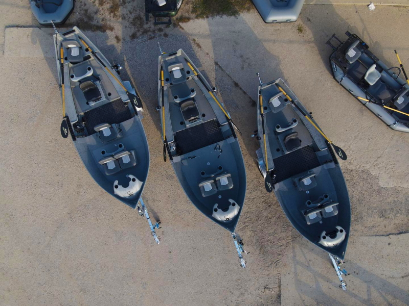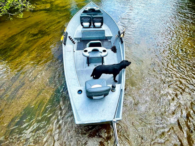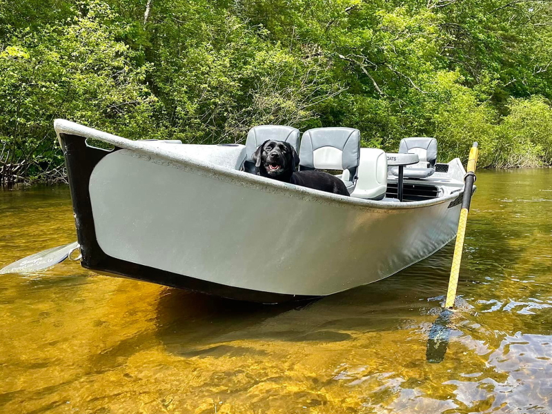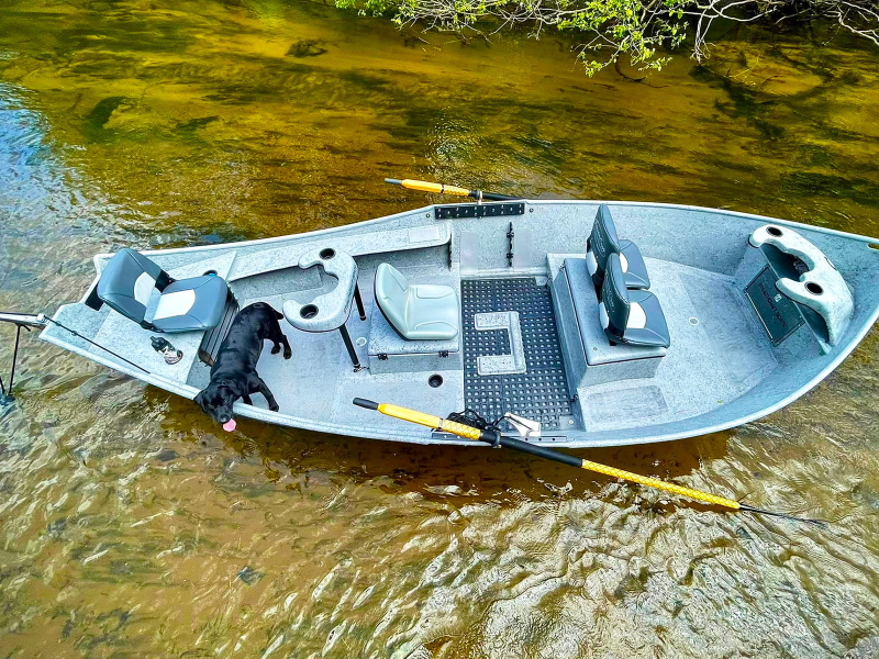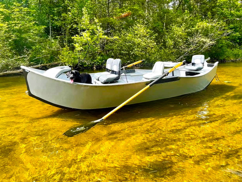 The Kenai has a balanced layout and at 380 pounds, it is lighter than most of our competitors 16′ boats.  This boat floats in wet grass with it’s awesome water line displacement and can be rowed in the heaviest water with the appropriate rocker.  If you like to camp or fish with a bunch of guys, or if you are the gear freak with never enough room, this is the boat for you.
