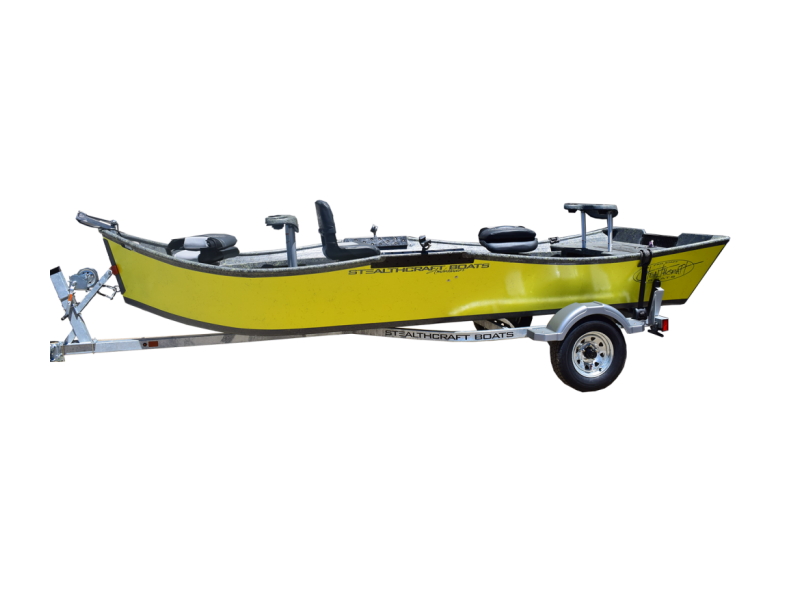 The UFO is a new addition to the StealthCraft line up. It is a skinny version of the power drifter, making it lightweight, row like a rocket and it also get on plane very easily. We designed the boat to get on plane easily with a small prop motor our 30/25 Merc jet our 40/30 Yamaha jet. The boat rows really good, so no need for a rowing frame of any kind. The motor can easily be taken off, so this versatile boat can be used as a drift boat only.