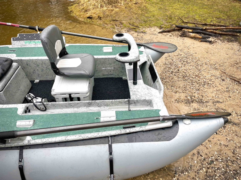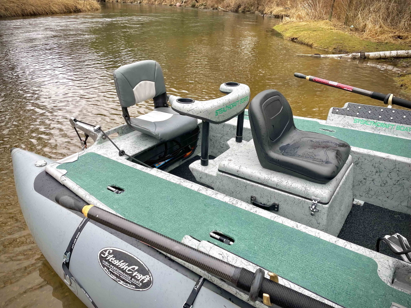 The StealthRaft performs and rows as well as any of our Stealthcraft drift boats. It’s very stable and barely tips even with everyone on one of the casting decks. The casting decks provides a great flats boat type of sight fishing experience unlike any other drift boat. The StealthRaft will motor amazingly well and will get on plane like no other drift boat will do. This boat has, and will continue to push the bounds of what is generally thought of in terms of a river boat.