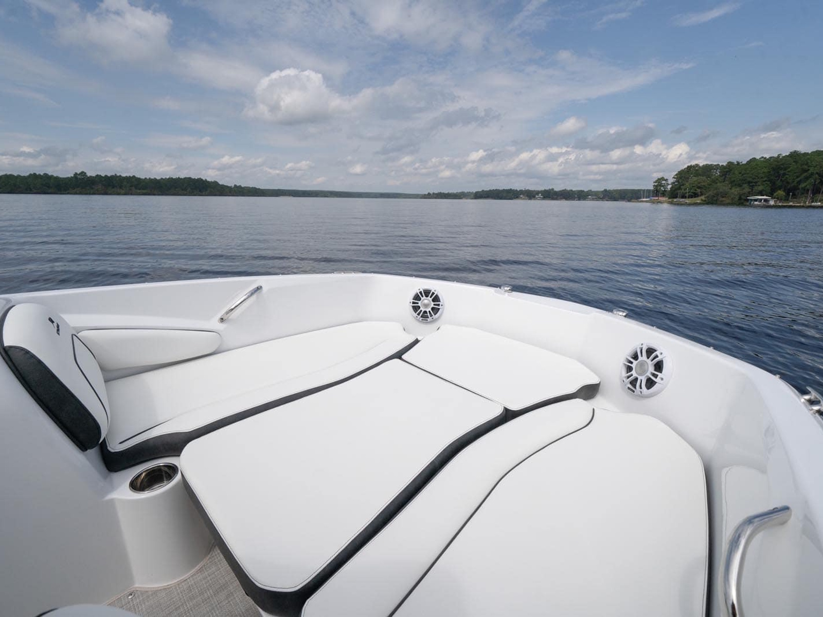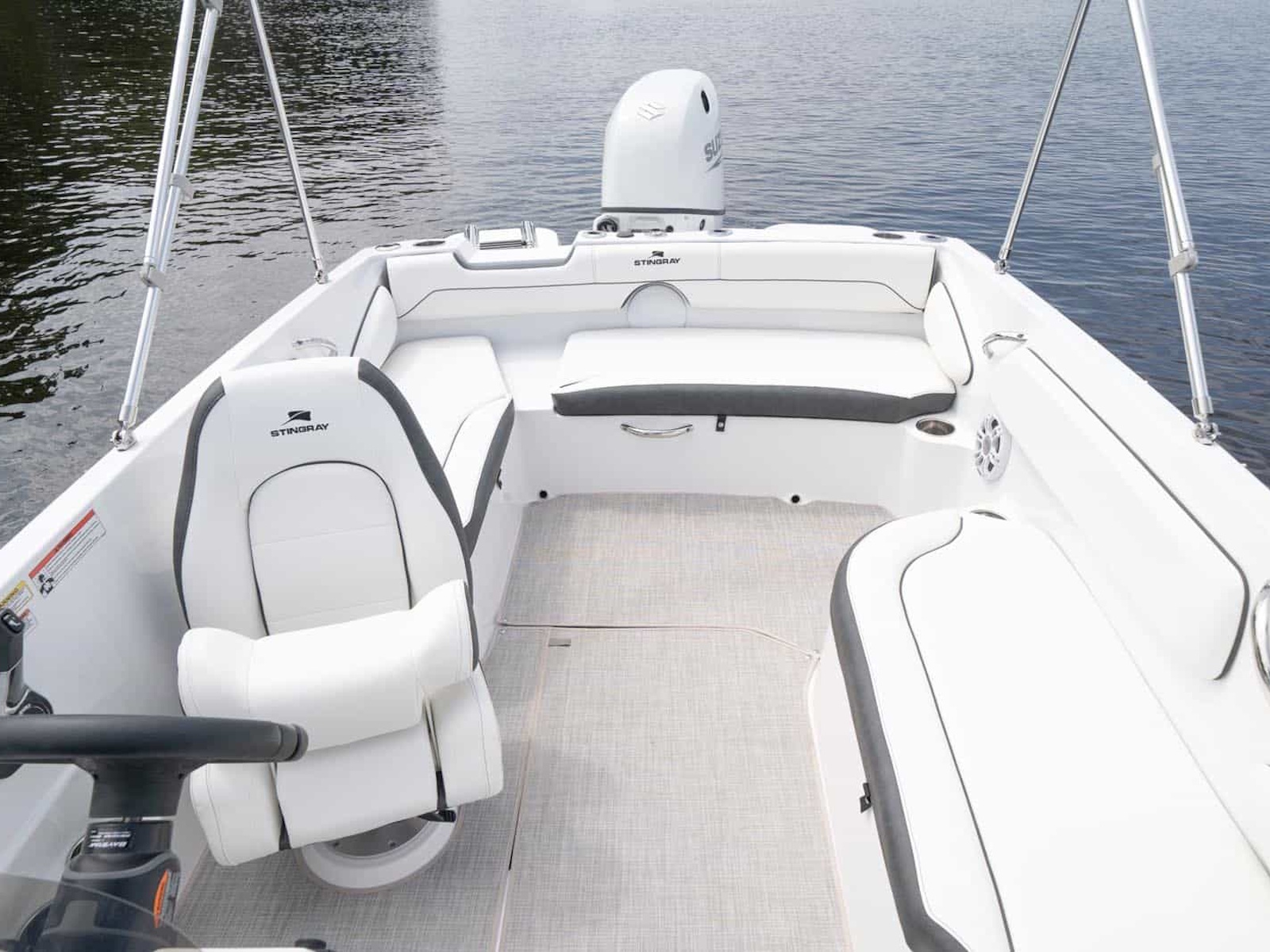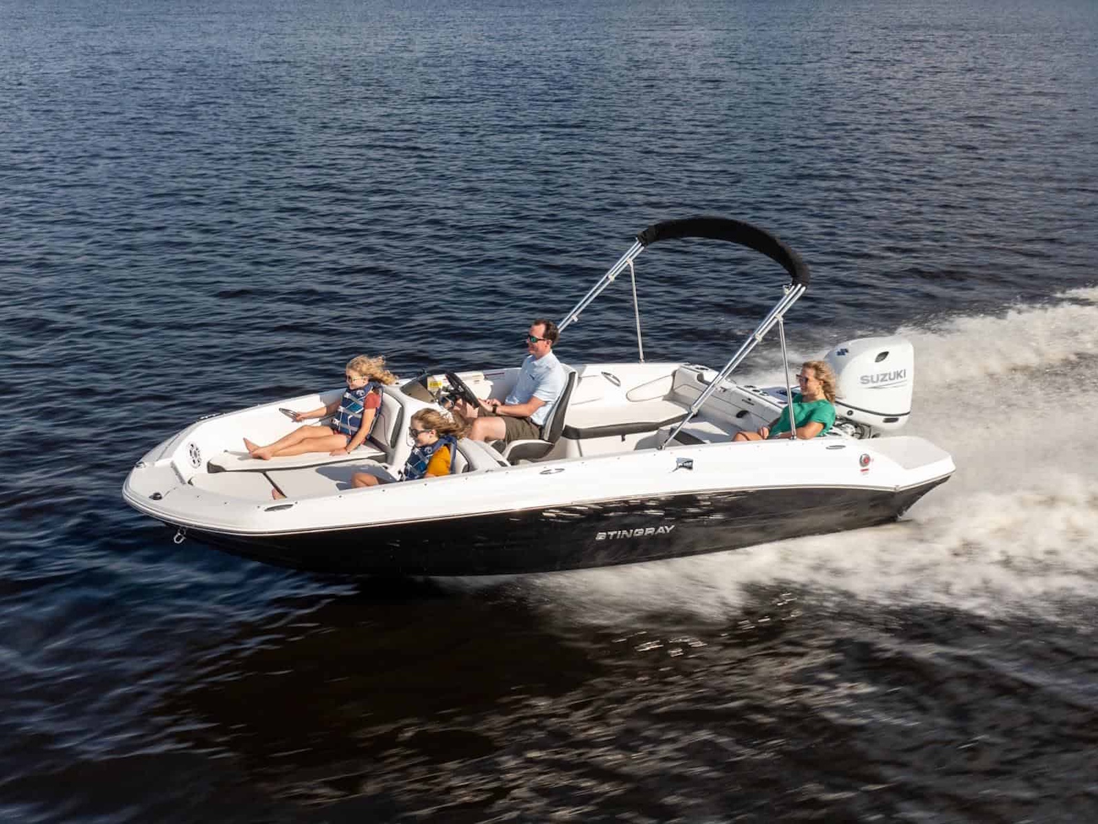 The 182SC Deck Boat -- you won't believe this boat until you take it for a test drive. Not only is it just plain fun to drive, but it's also almost effortless. Seasoned boaters and first time boaters alike remark at how easy and fun the 182SC is when they try it out for the first time. In addition to its fun factor, the 182SC is loaded with storage, has plenty of room for all your passengers, water toys, and supplies, and it proves to be very functional. Seating is abundant. The stern area features wrap-around seating for your passengers to stretch out and enjoy the ride. Opposite the captain's chair is a rear-facing lounge so your co-captain can keep an eye on your tubers and wake boarders. See your local dealer today to reserve your 182SC. You don't want to miss out on the fun!