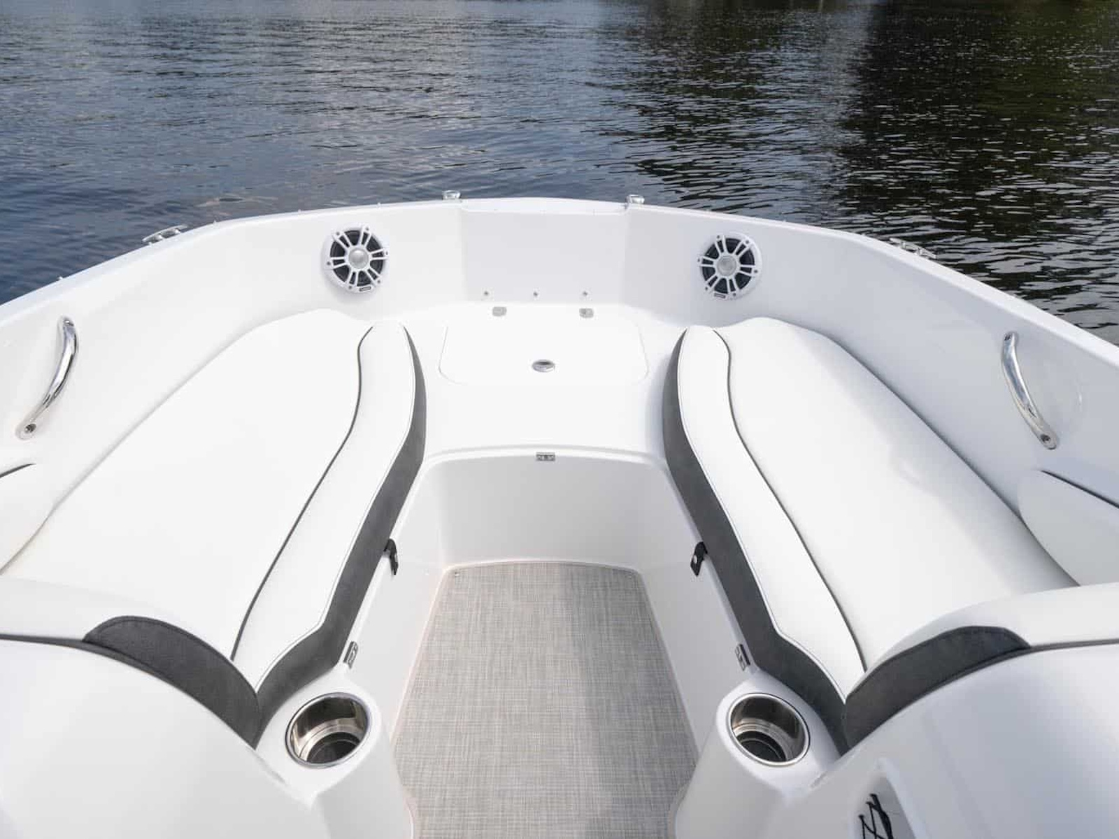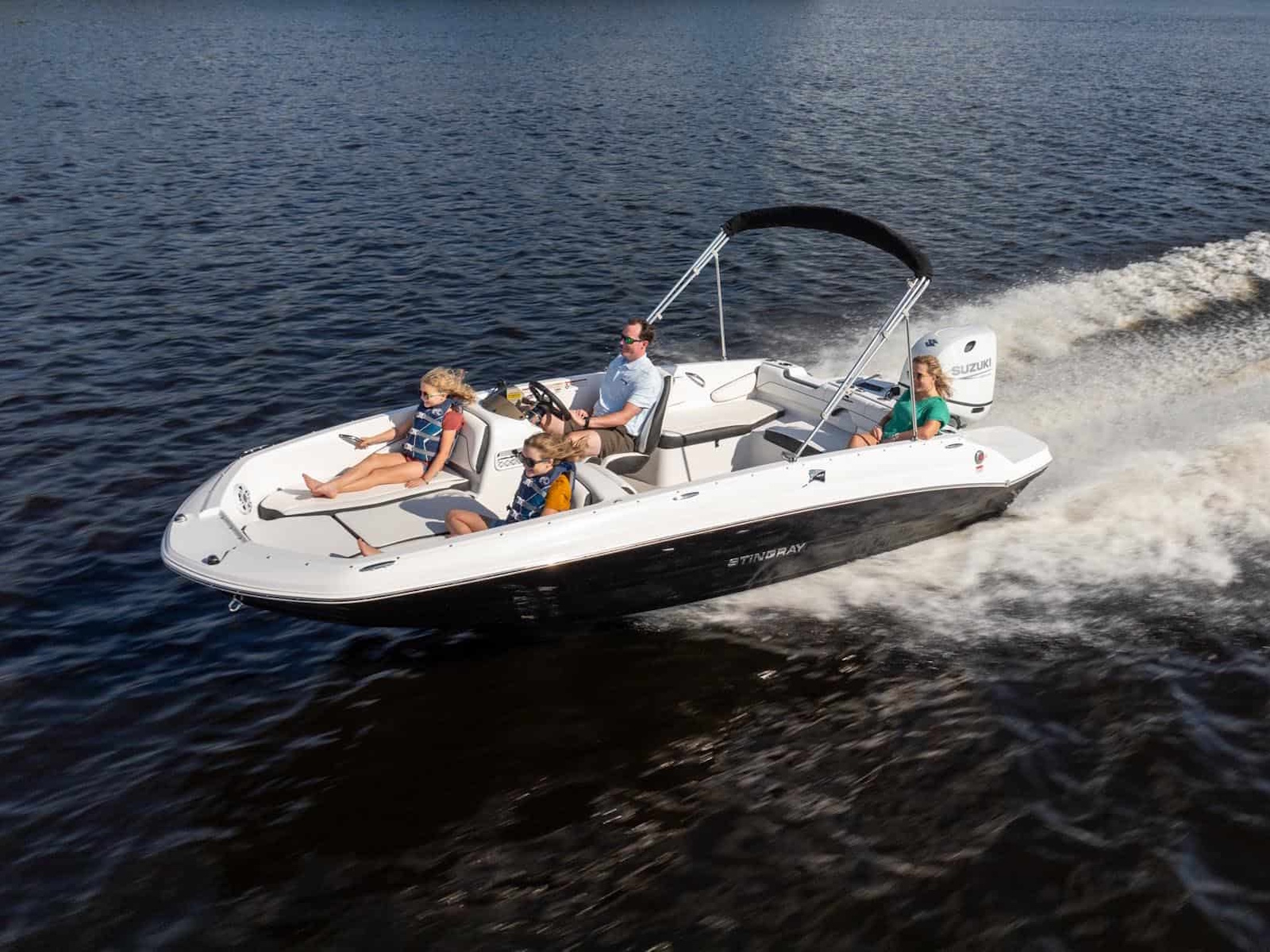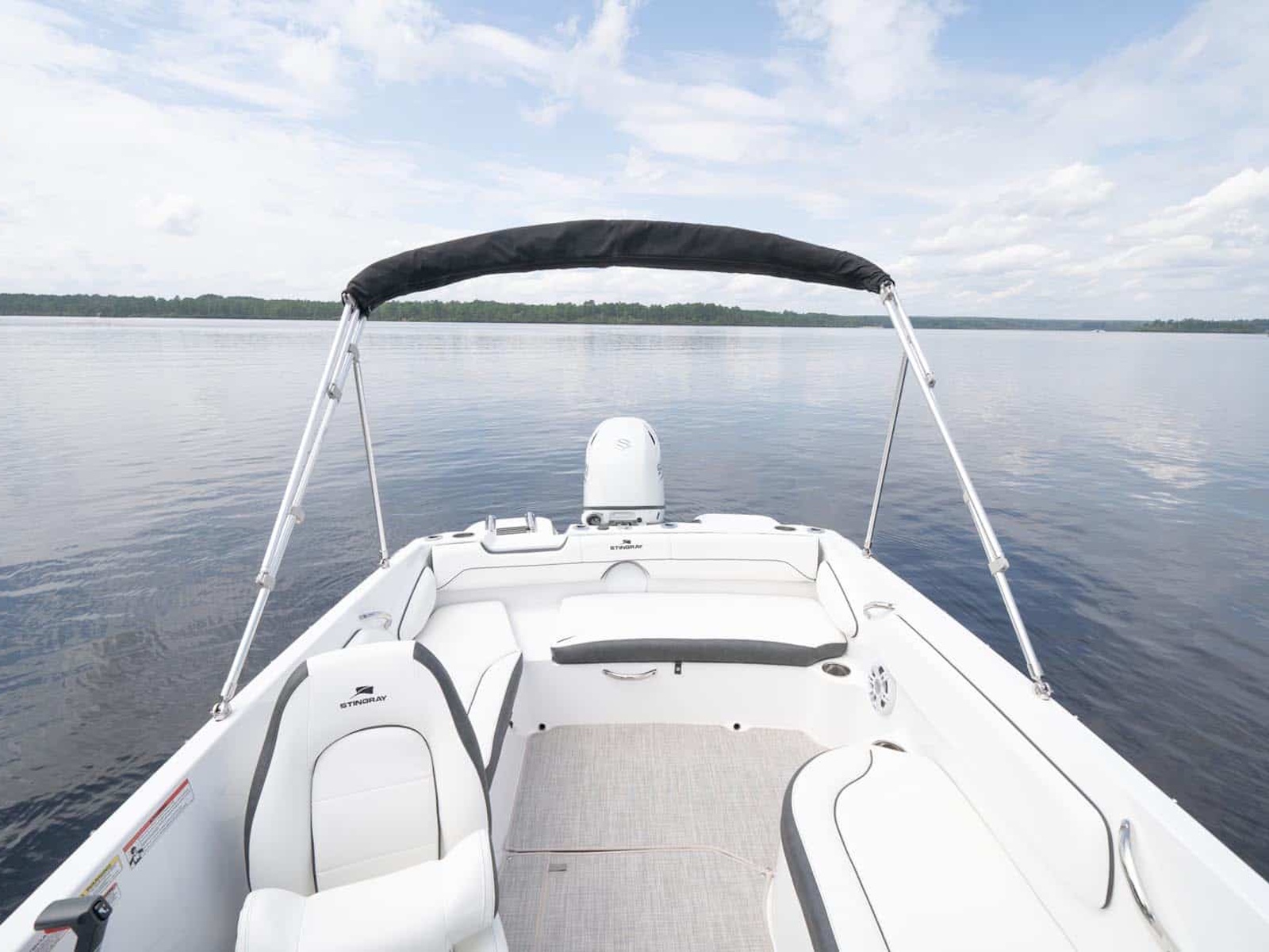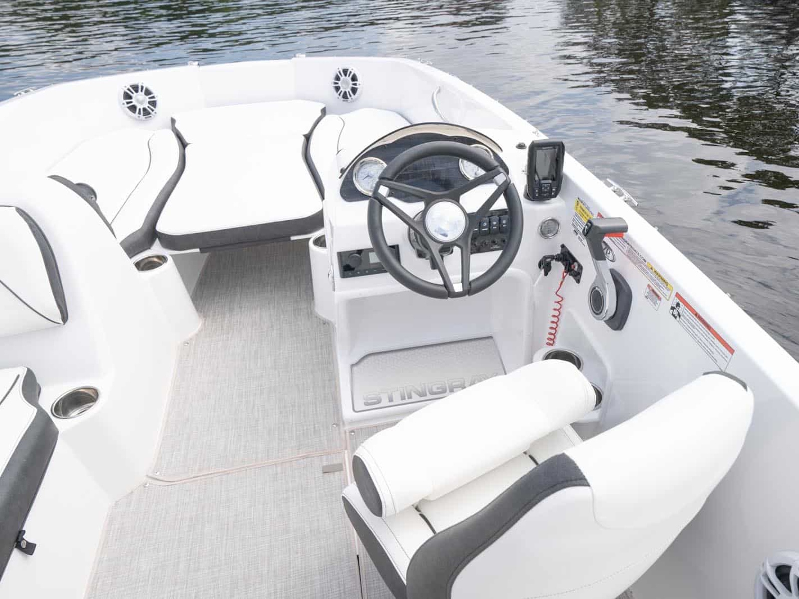 The 182SC Deck Boat -- you won't believe this boat until you take it for a test drive. Not only is it just plain fun to drive, but it's also almost effortless. Seasoned boaters and first time boaters alike remark at how easy and fun the 182SC is when they try it out for the first time. In addition to its fun factor, the 182SC is loaded with storage, has plenty of room for all your passengers, water toys, and supplies, and it proves to be very functional. Seating is abundant. The stern area features wrap-around seating for your passengers to stretch out and enjoy the ride. Opposite the captain's chair is a rear-facing lounge so your co-captain can keep an eye on your tubers and wake boarders. See your local dealer today to reserve your 182SC. You don't want to miss out on the fun!