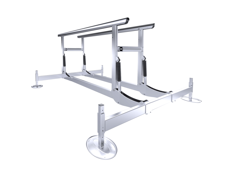 The SLX is the only hydraulic lift that has adjustable width bunks to get the ideal boat fit. The boat height over water can be set with the adjustable lifting range. The frame can also be shifted laterally to minimize the distance of the boat to the dock for safest boarding.