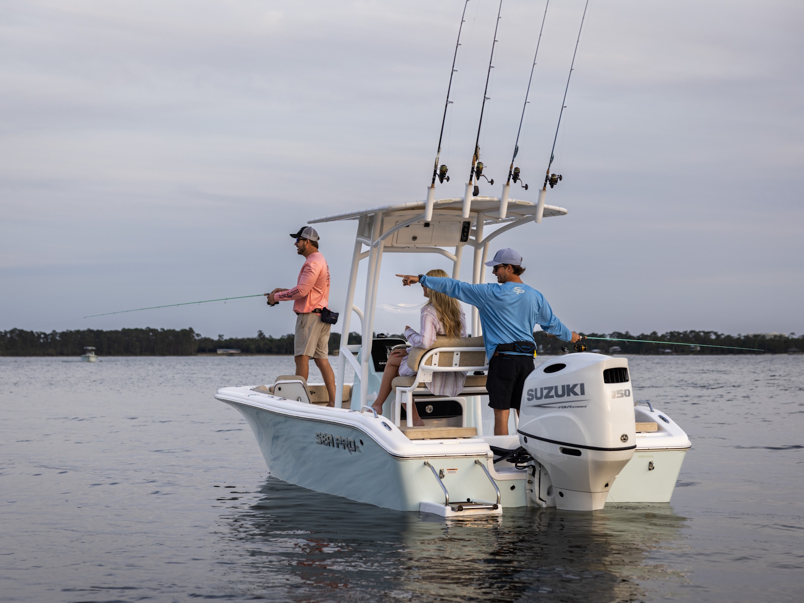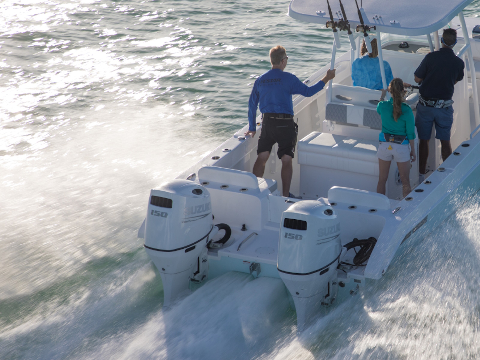 Suzuki’s DF150A was founded on its inline, four-cylinder DOHC powerhead featuring a LARGE displacement. Suzuki’s engineers targeted this big block motor, building it to be one of the lightest four strokes in the 150 HP class, beating out the performance of heavier competing frames. This exceptional model comes in Nebular Black and New White and your choice of mechanical or digital controls.