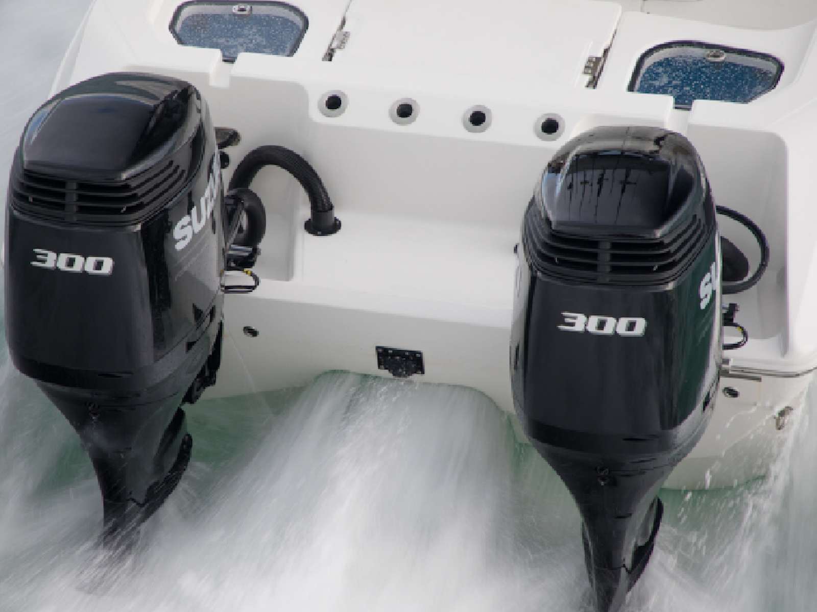 Named the “Ultimate Four-Stroke Outboard,” since its introduction, Suzuki’s flagship 300 HP V6 has been a showcase for advanced technology and design. The award winning DF300AP incorporates “Suzuki Selective Rotation” – the world’s first outboard that combines standard and counter-rotation operation into the same lower unit. A two-way low water pickup inlet provides engine cooling with increased water flow. The DF300AP also features “Suzuki Precision Control”— this fly-by wire control offers silky smooth shifting and precise throttle response, while still maintaining ideal fuel economy. Go with a proven winner, Go Suzuki.