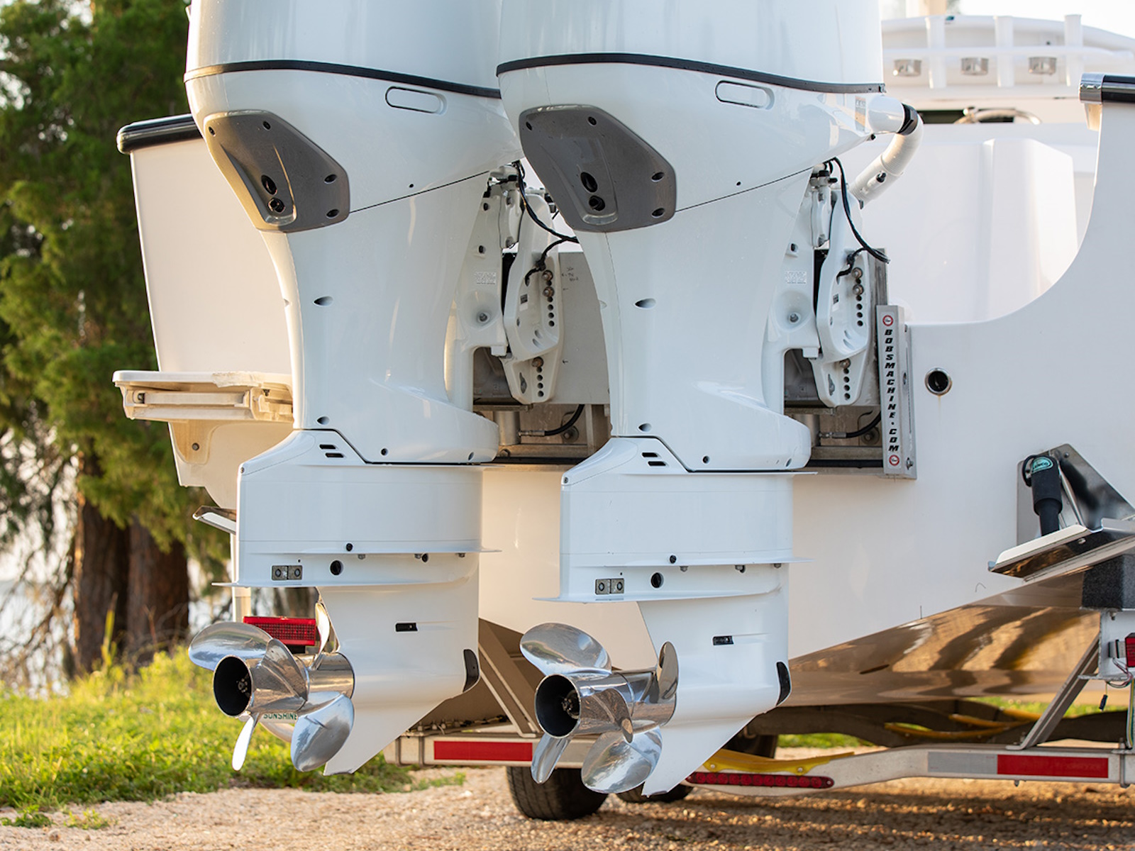 The new DF300BMD Integrated steering is the newest addition to the Suzuki lineup. The Suzuki Dual Propeller System and the Suzuki 2-Stage Gear Reduction aid to successfully produce better torque for all types of boat applications. The new DF300BMD has been engineered to run on 87 octane fuel, has integrated steering for easier rigging and a newly updated lower unit. This truly is Suzuki’s ultimate Four-Stroke Outboard Motor. Now available in Cool White and Pearl Nebular Black.