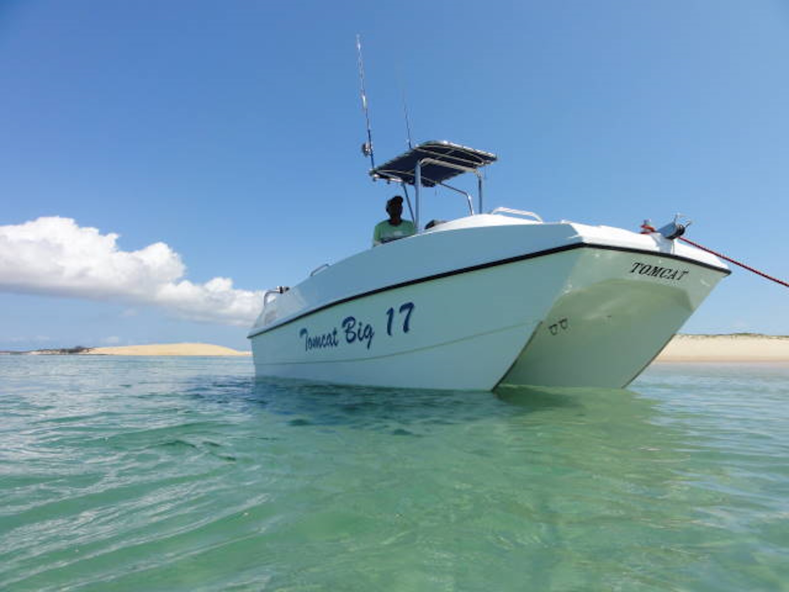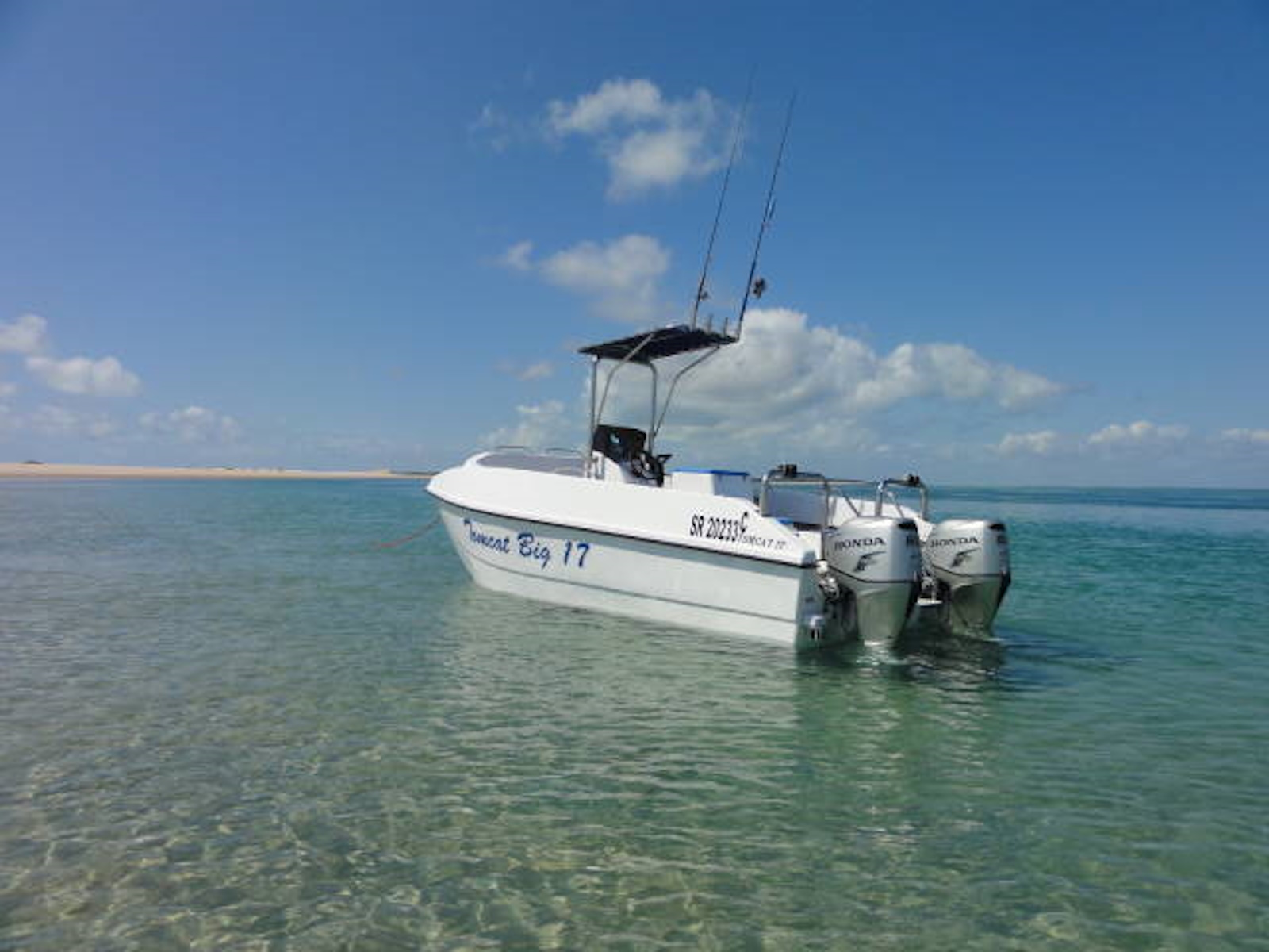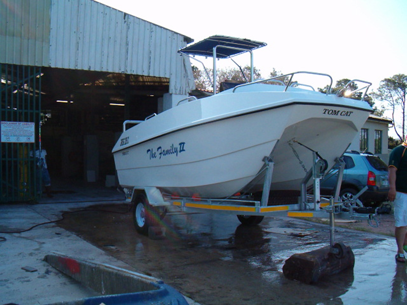 The centre consol with 60HP Honda BF 4 Stroke motors is capable of speeds over 60kmh, and at cruising speed of around 4000 rpm the fuel economy is around 70km on around 40lt of fuel in total 20lt per motor.