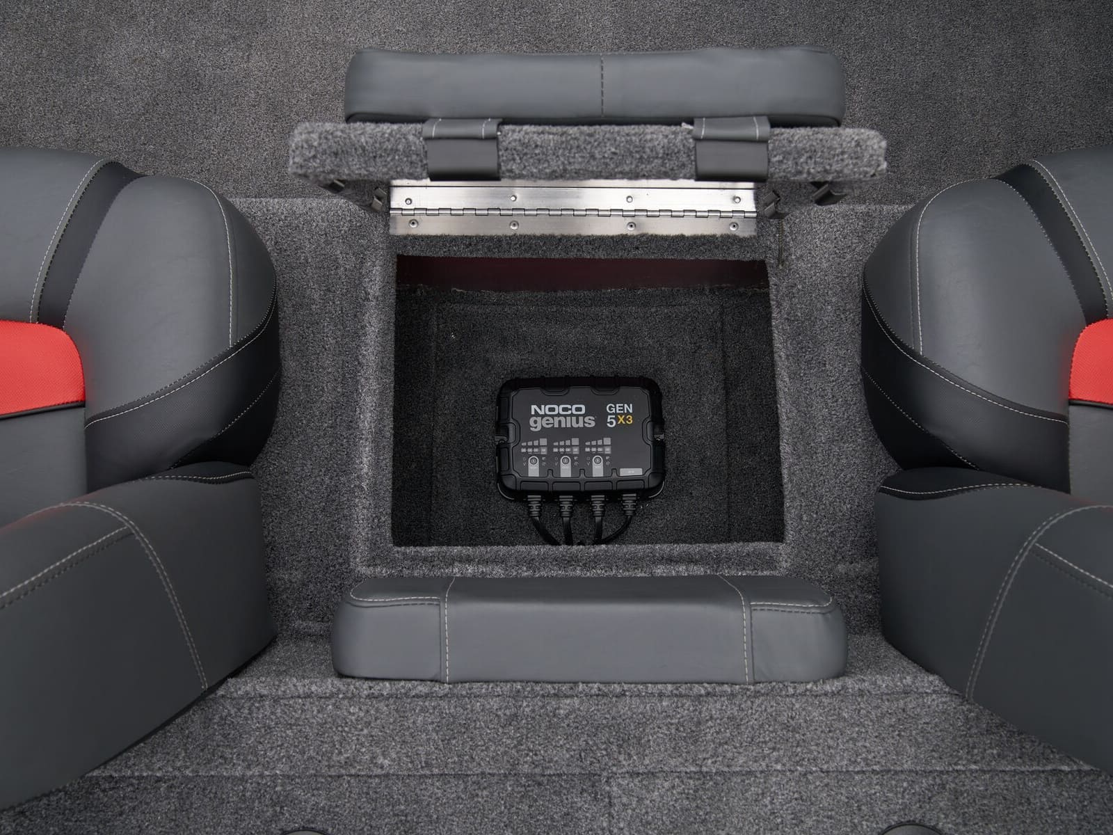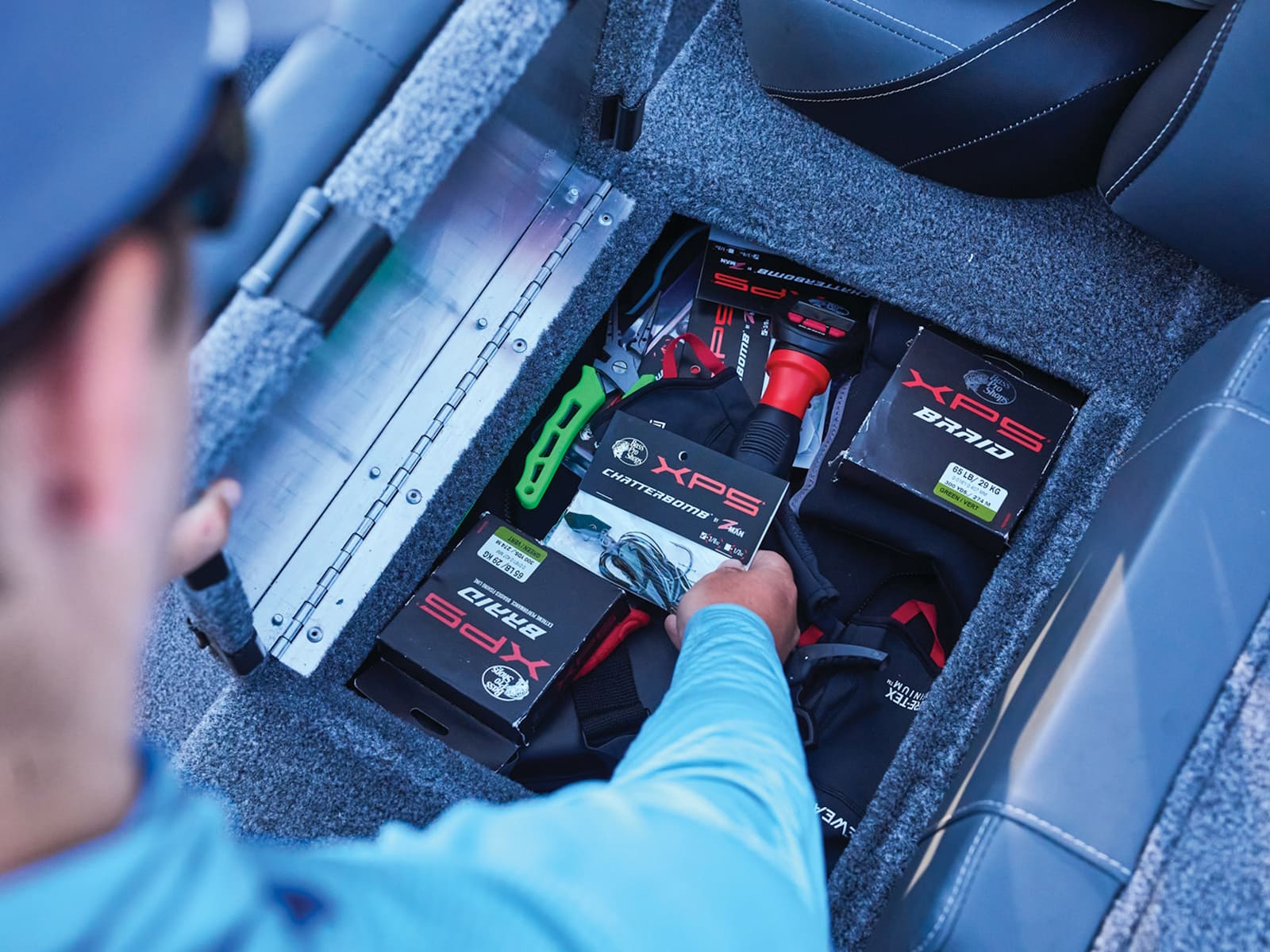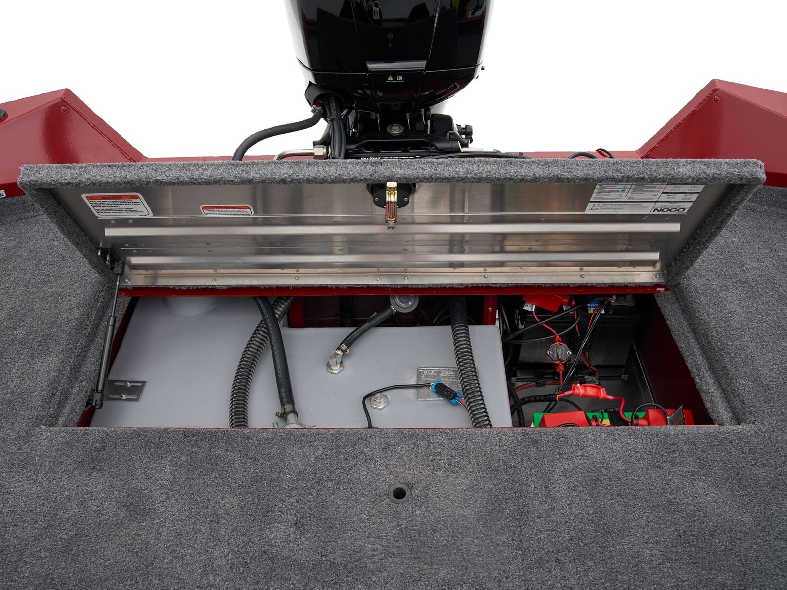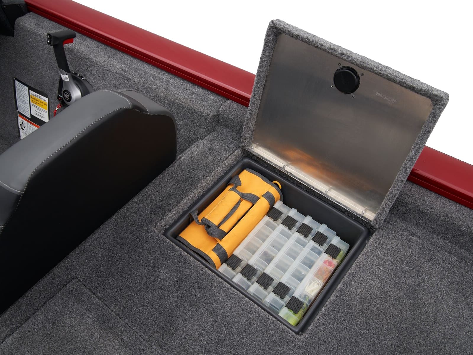 - Lighted aft 27-gal. (102.21 L) aerated livewell w/divider, timer, recirculator, pump-out system & dual overflow drain