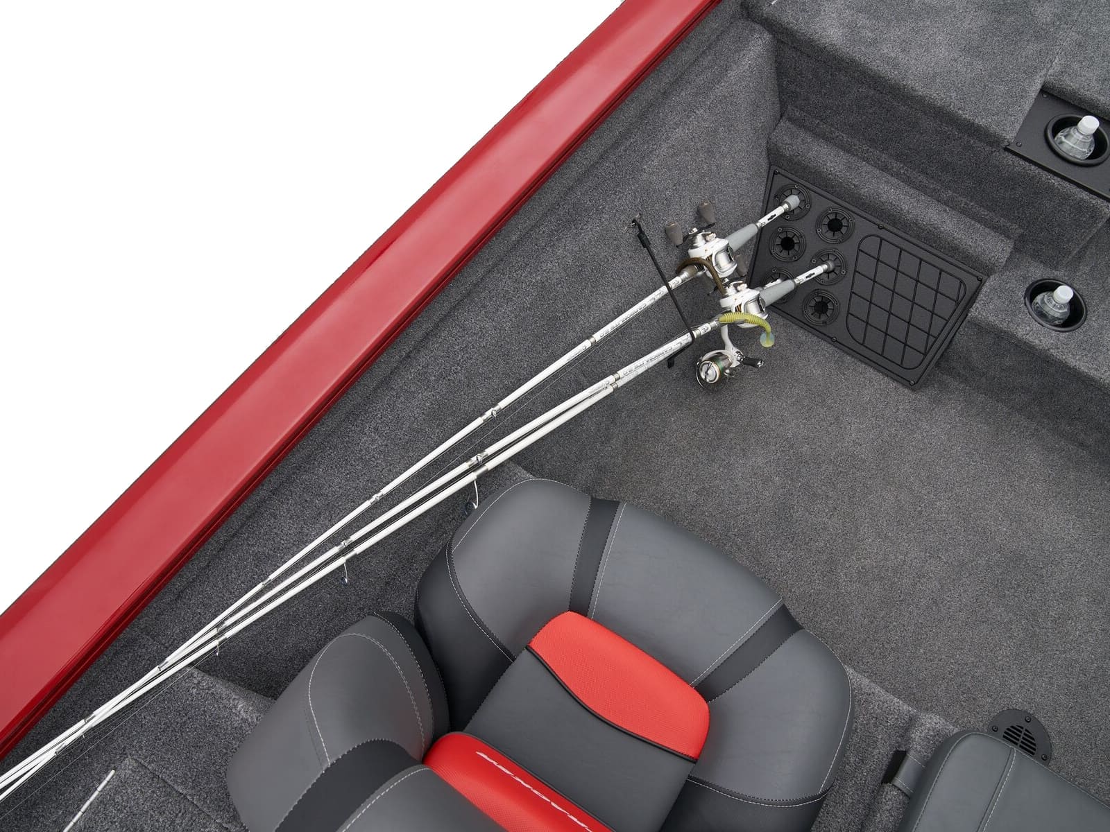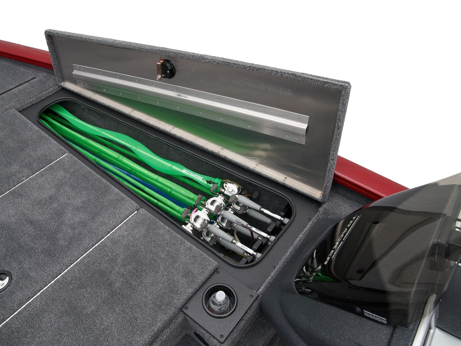 - Bow port & starboard rod storage w/large lids & rod organizers w/tubes—24 total rods up to 9' (2.74 m) casting/8' (2.44 m) spinning