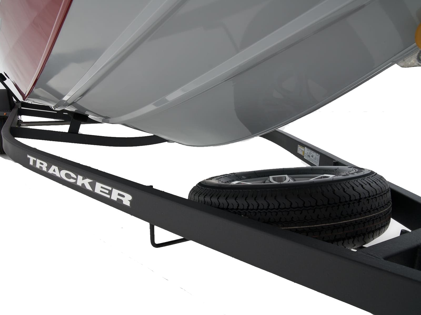 - Upgraded trailer: 14" (35.56 cm) custom aluminum wheels w/radial tires, full-size matching spare & bow boarding steps/safety handle for boarding from trailer