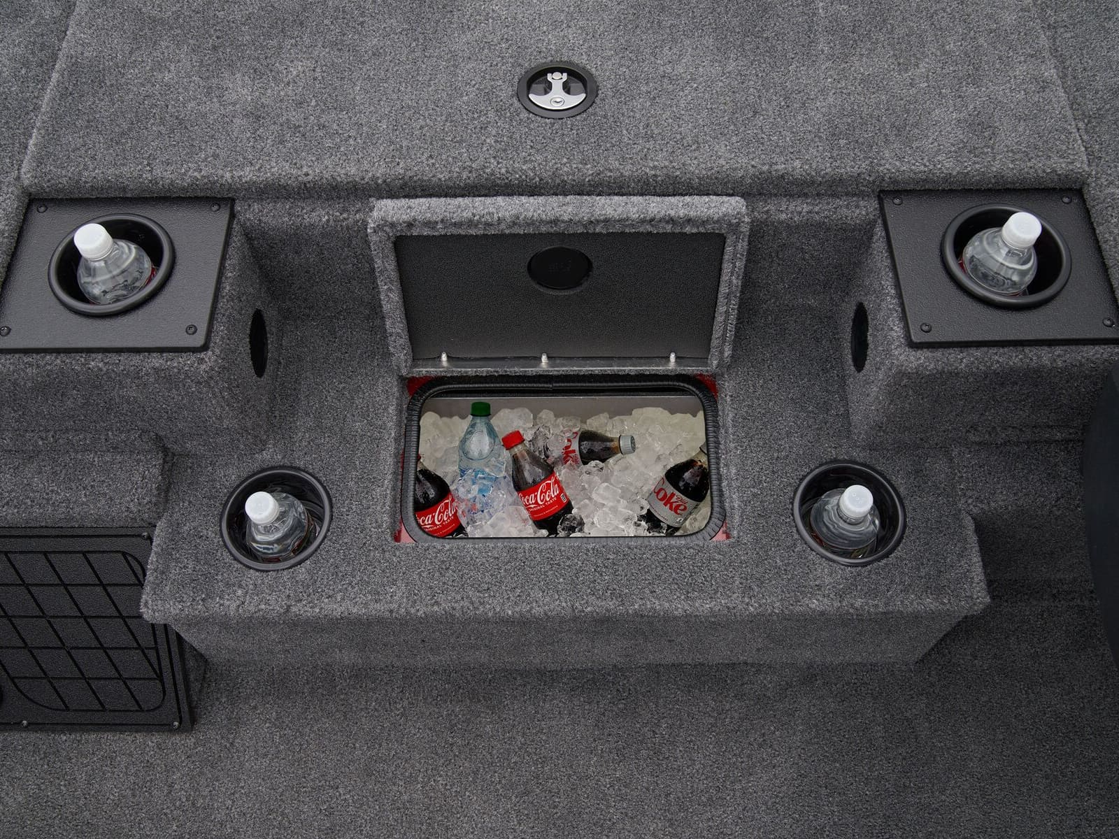 - 8 drink holders—2 on bow deck, 2 in bow tackle storage, 2 on step cooler & 2 floor mounted