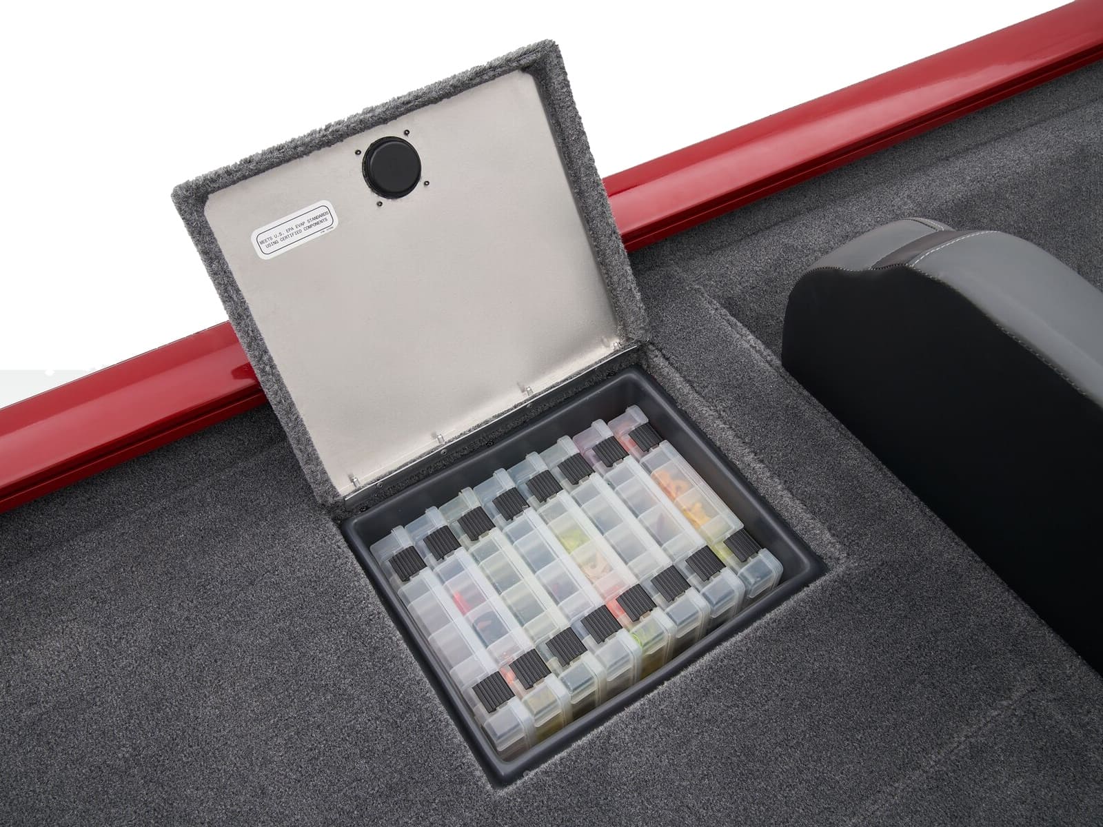 - Aft port & starboard molded storage boxes each hold six 3700 tackle boxes
