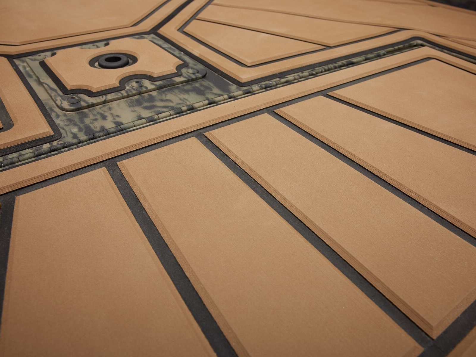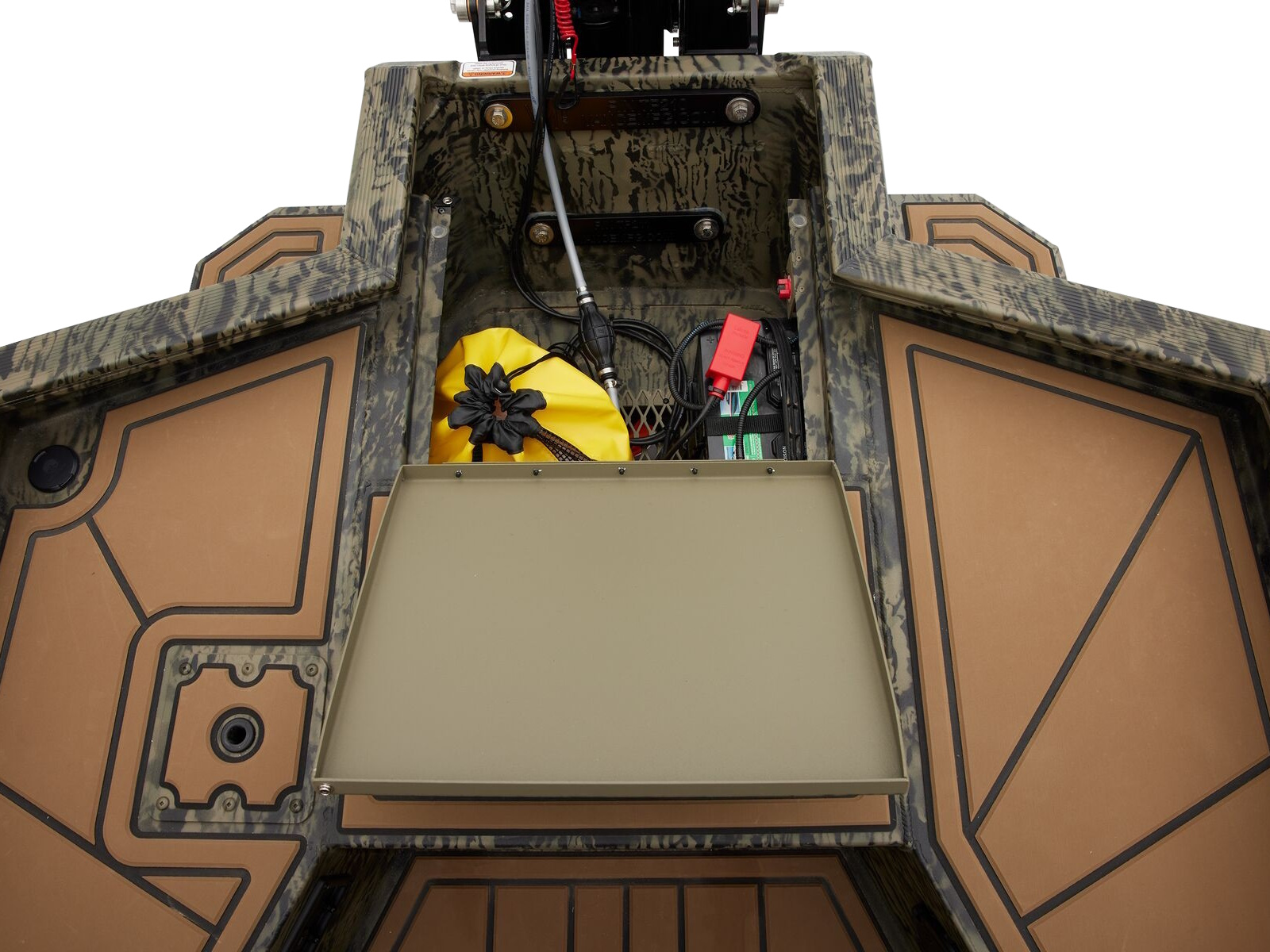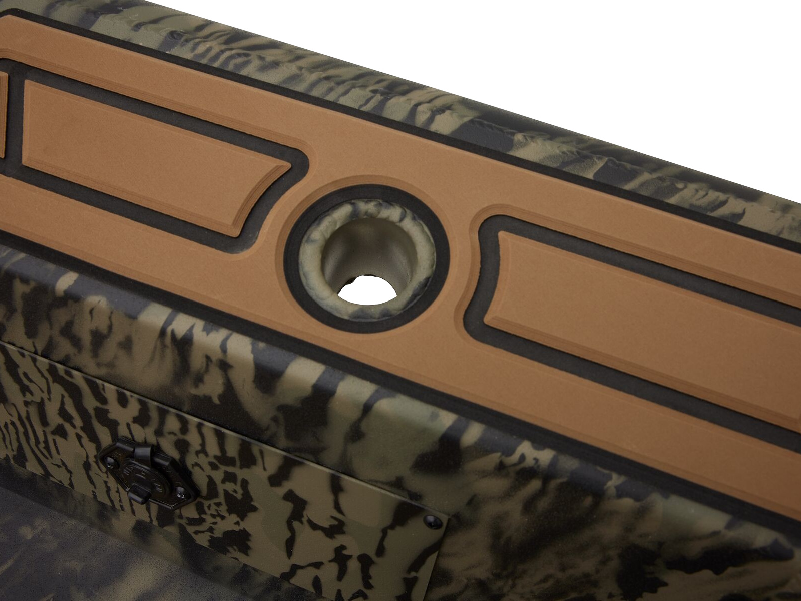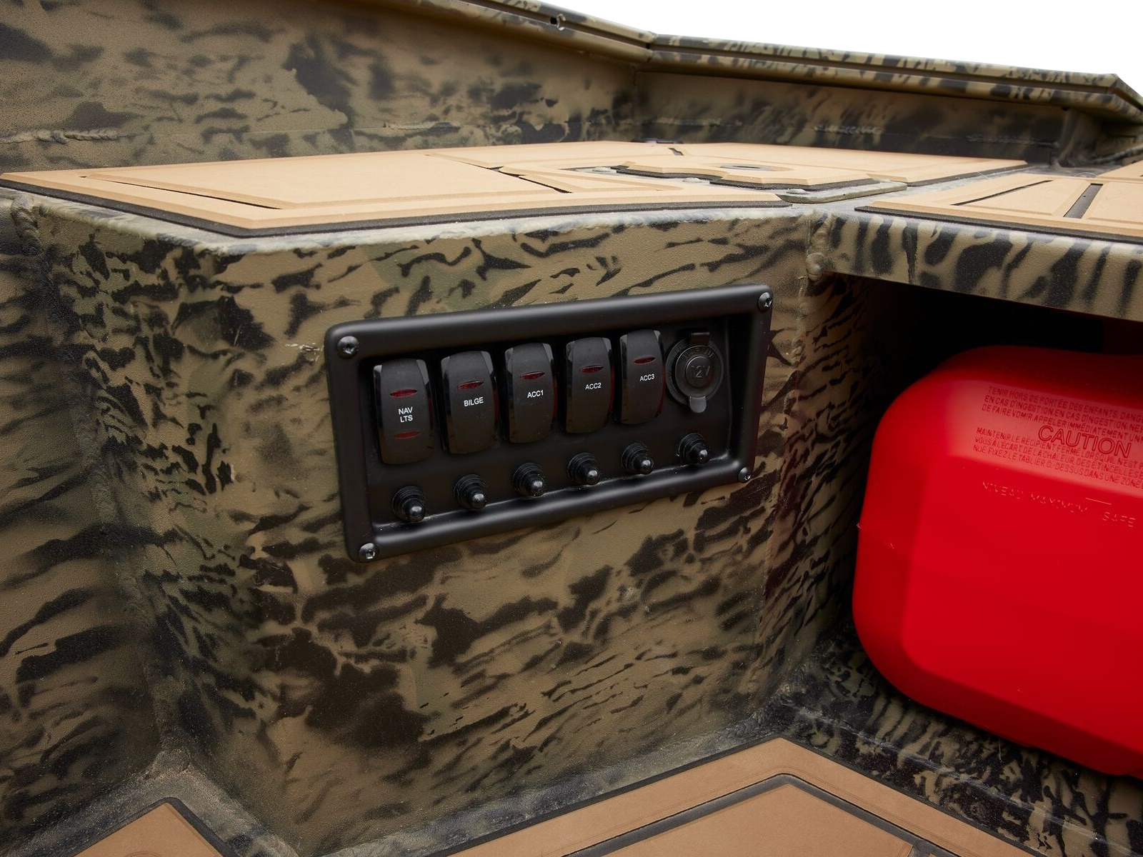 The cockpit and decks are coated with Sure Tread™ flooring that offers superior grip in any conditions. Bow and stern pedestal seating locations offer versatility while hunting or when underway, and easy-to-reach switching offer simple, reliable control over the boat's functions.