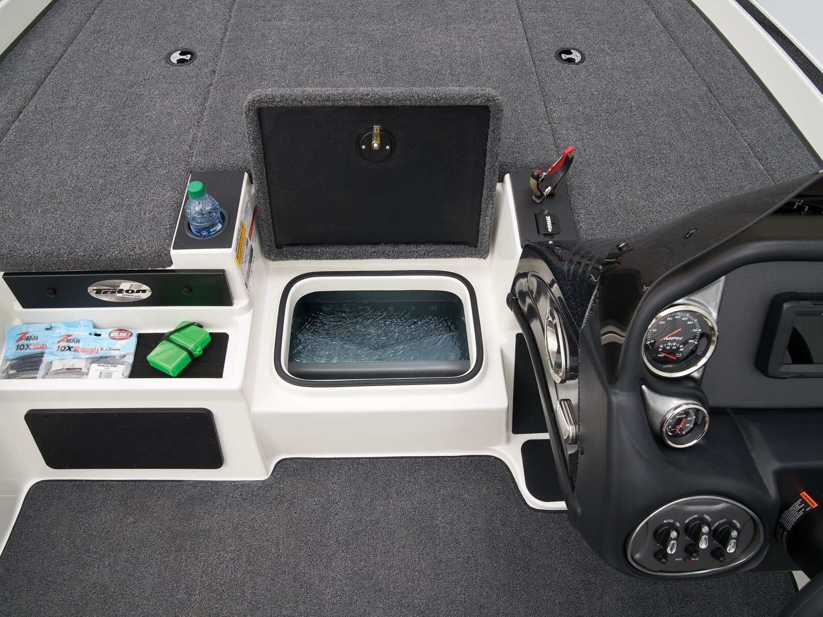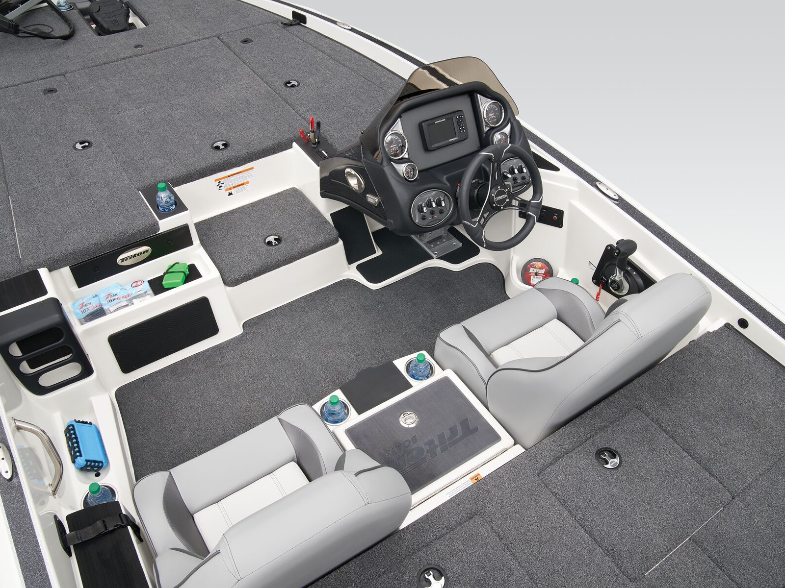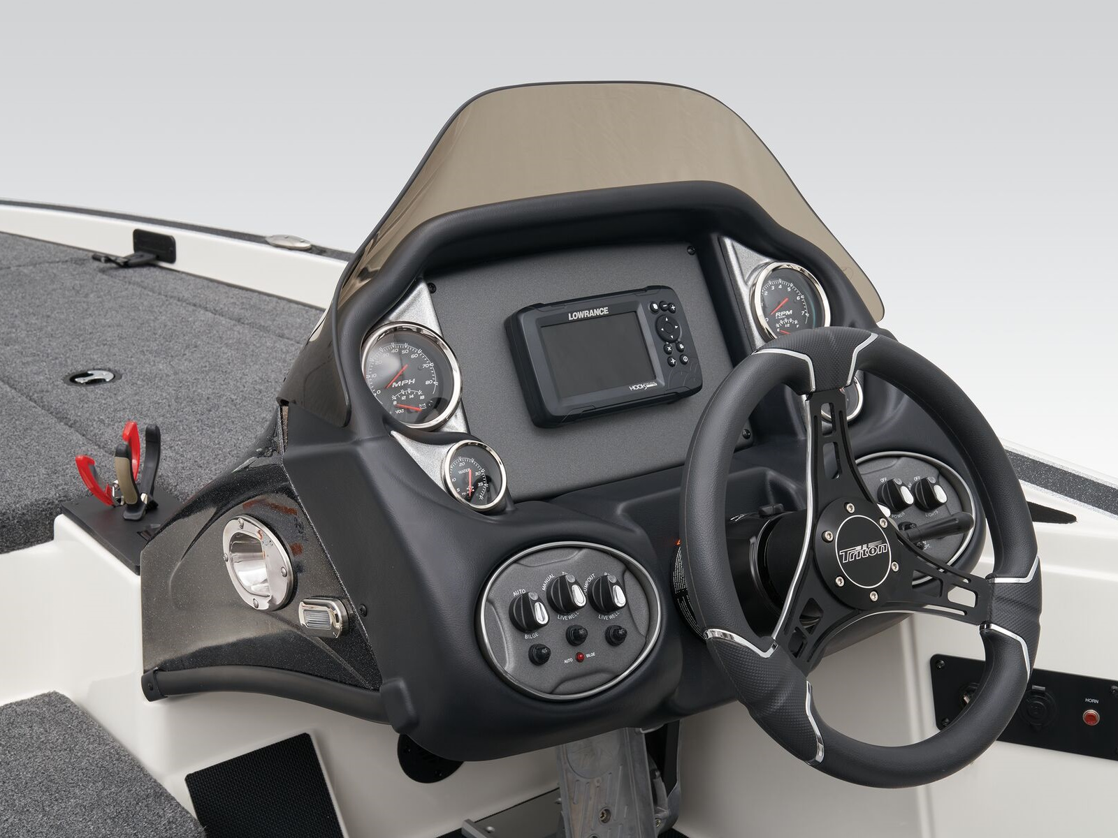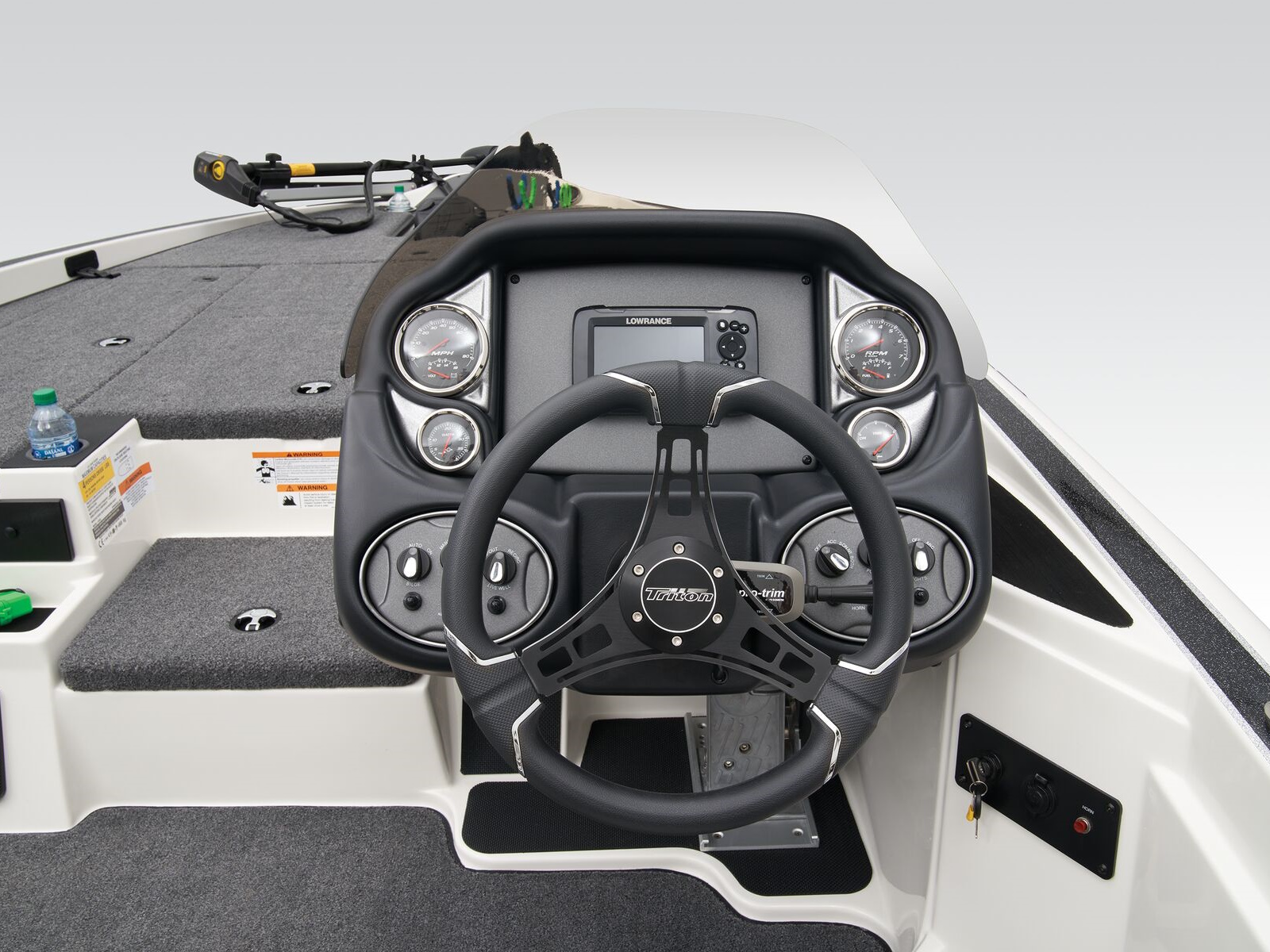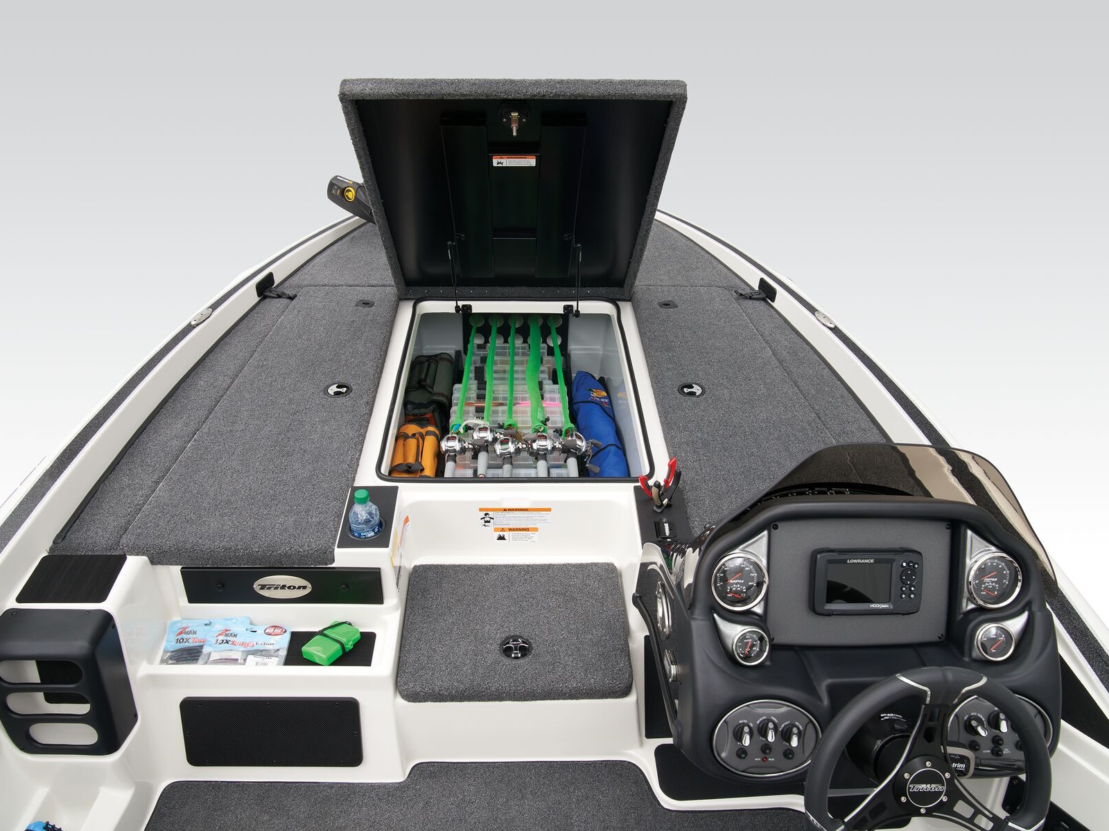 The 19 TrX is brimming with features while delivering legendary Triton performance in a compact package. The 19 TrX is built on the same design as our full-sized rigs with a complete roster of tournament-ready features. A Minn Kota® trolling motor and Lowrance® electronics are factory rigged for a precision-balanced fishing machine, but they're just the start. A roster of options let you create your perfect dream rig from bow to stern all boasting legendary Triton performance. On any waterway, the 19 TrX delivers handcrafted excellence and confidence in a nimble package.