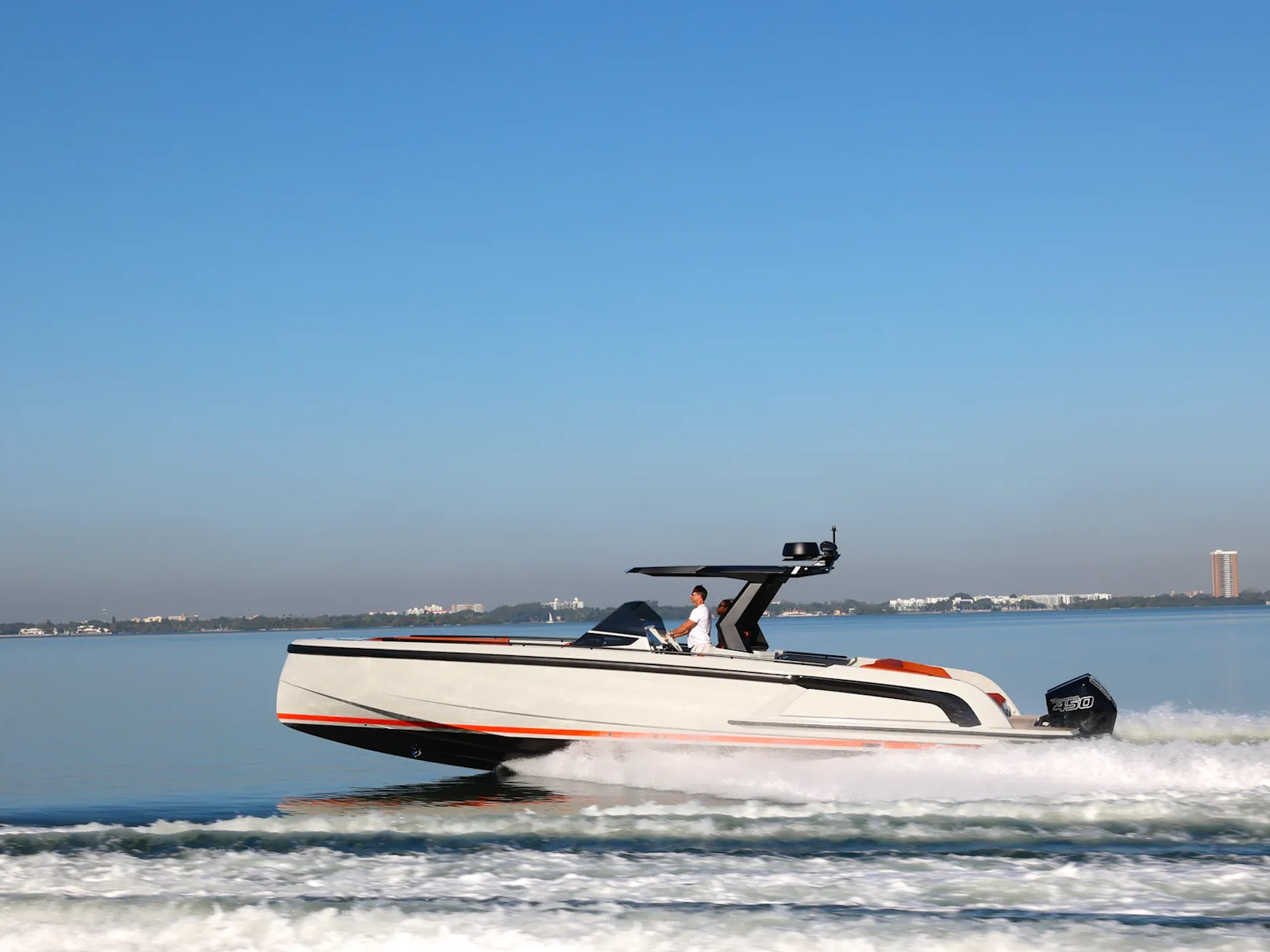 Showcasing premium Vanquish quality in composite, the VQ40 Sport Line offers a compact version of our brand with all the qualities of finish and performance that make it so special. Here’s your ideal choice if you don’t wish to wait for a fully custom aluminium VQ boat.