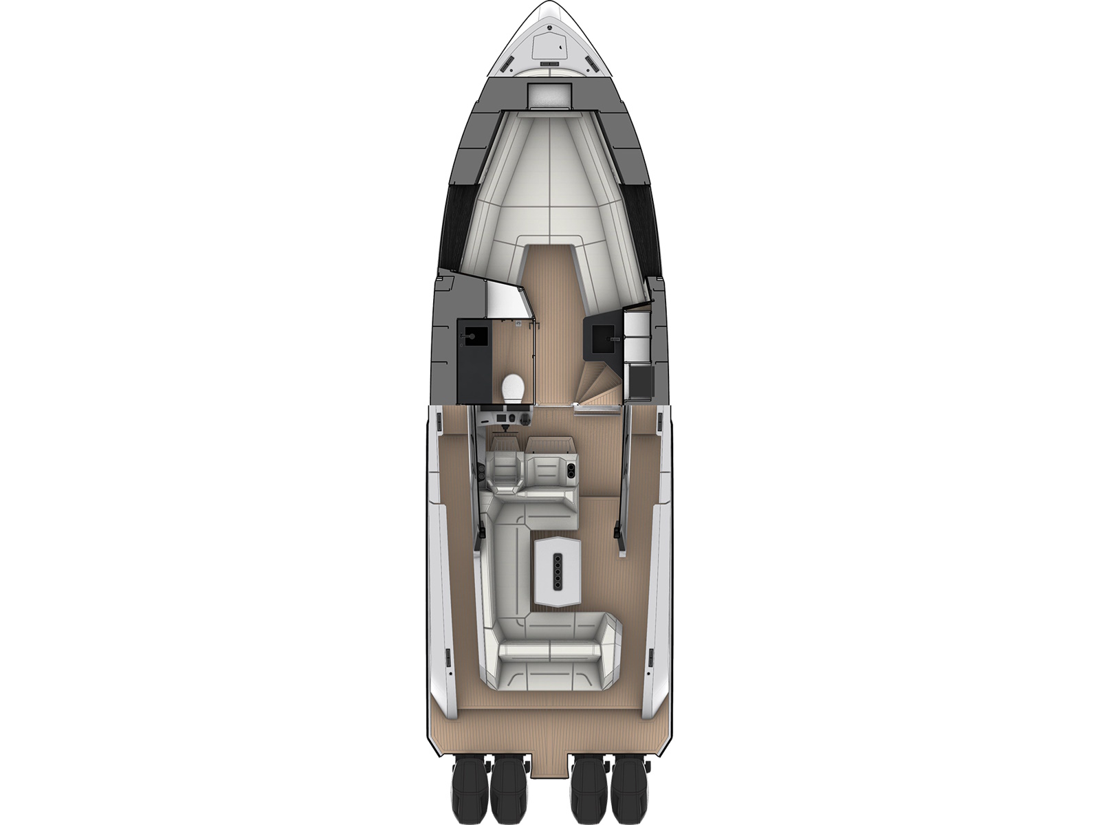 - The multipurpose VQ45 is easy to manoeuvre thanks to her smart joystick steering and Volvo IPS system. A T-Top version is available with an integrated electric sunscreen and both the T-Top, as well as the hard top version, can be fitted with a hydraulic swim ladder and Seakeeper 6 zero speed stabilisers. There are even VQ45s which serve as a superyacht tender, with dedicated side-boarding doors making alighting from the mothership easy.