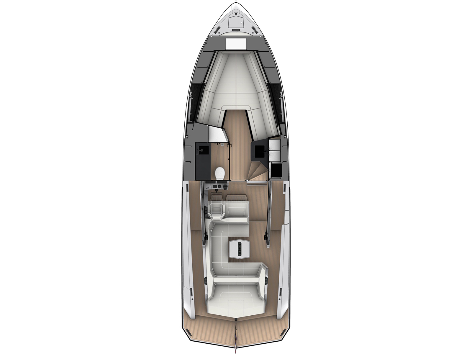 - The multipurpose VQ45 is easy to manoeuvre thanks to her smart joystick steering and Volvo IPS system. A T-Top version is available with an integrated electric sunscreen and both the T-Top, as well as the hard top version, can be fitted with a hydraulic swim ladder and Seakeeper 6 zero speed stabilisers. There are even VQ45s which serve as a superyacht tender, with dedicated side-boarding doors making alighting from the mothership easy.