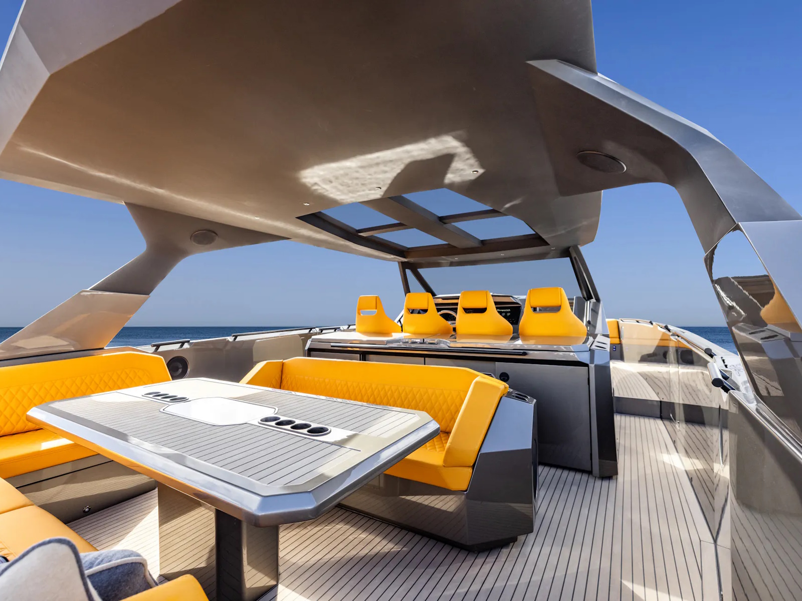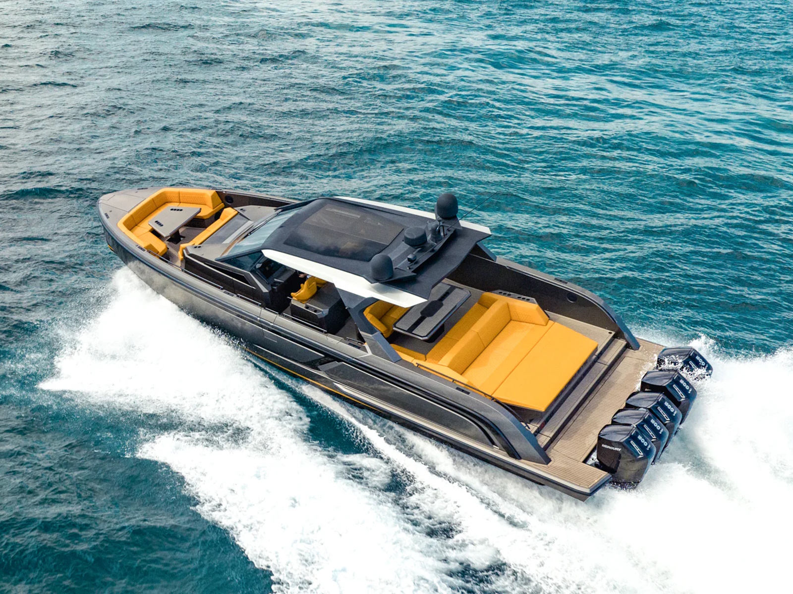- With quint Mercury 600 hp (V12) outboard engines, the speed can reach up to 70 knots. Also available with twin Nanni N16 1200 hp (V8) inboard diesels and waterjets, giving an appropriate top speed of 50 knots. The VQ55 Sports Line is the fastest yacht in its class. To regulate the turbulence in the cockpit at high speed, the sides of the VQ55 are equipped with adjustable air vents.